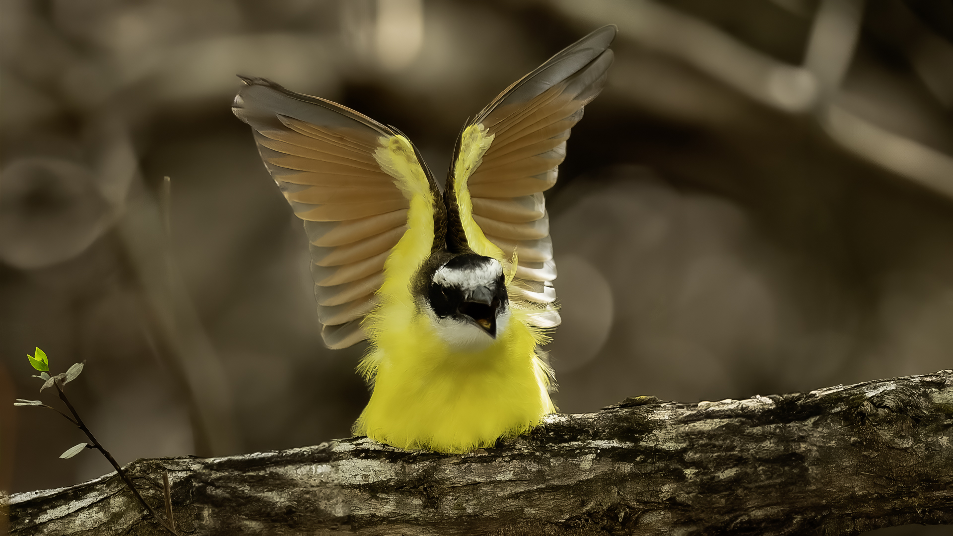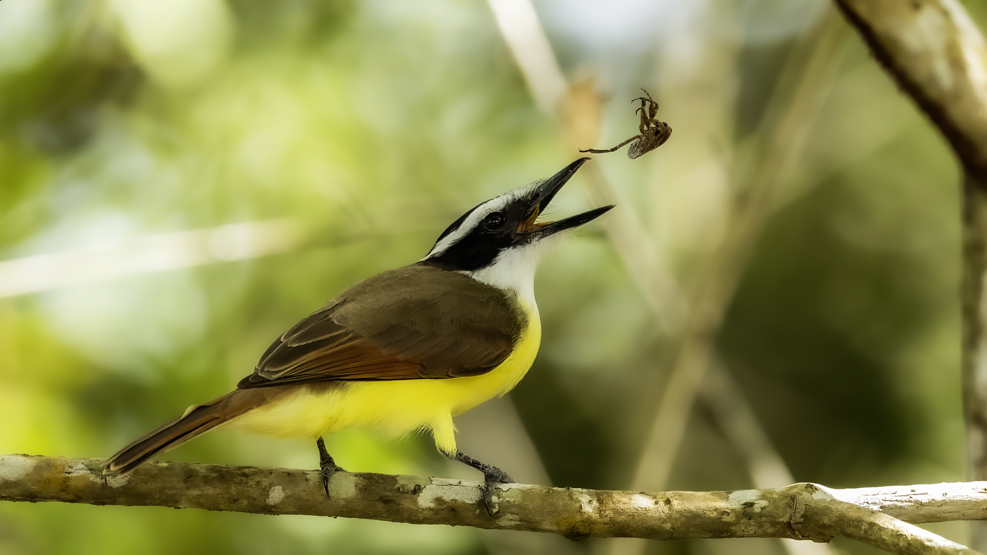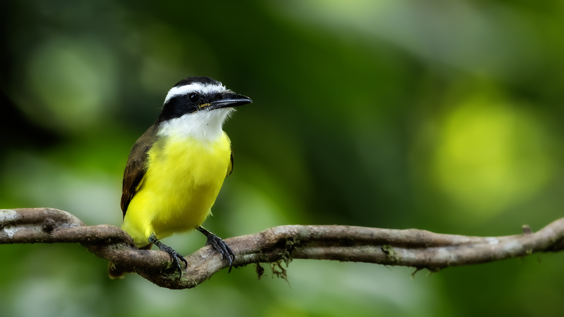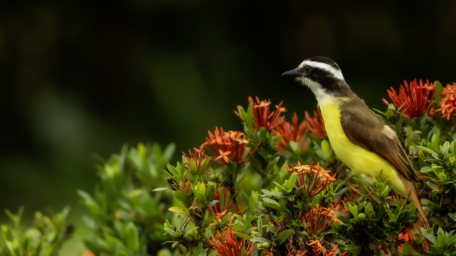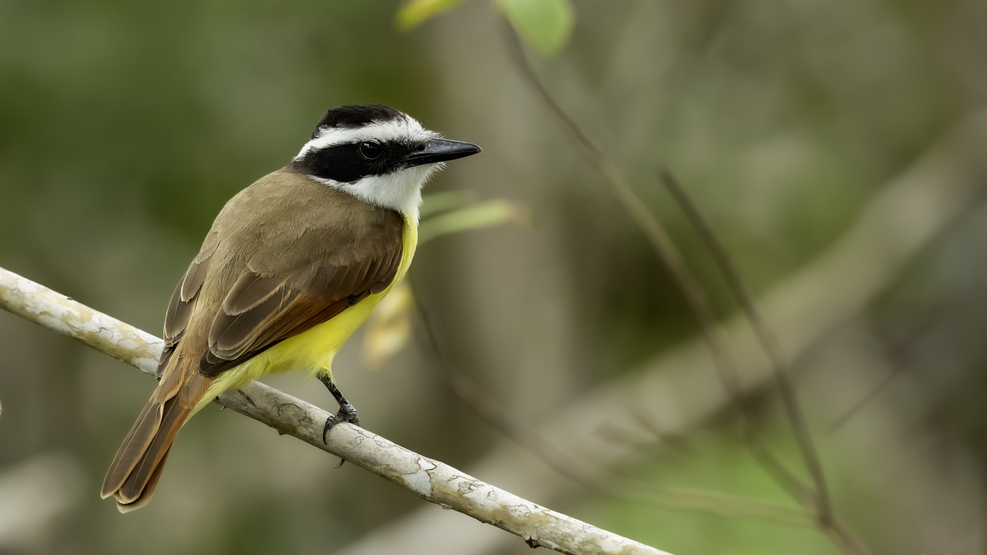 In the vicinity of Iguazu the great kiskadee occured quite commonly, but I always could see them a long way off, keeping a distance. Once, while I was walking on the lawns of the hotel at sunrise, a great kiskadee came really close. I was alone and behaving calmly so the bird was more curious than scared. It was early in the morning so while waiting for the light I hung the camera on my arm and tried to record sounds. I managed to record a few sounds of the great kikkadee’s voice, and this time the only obstacle was the sound of a white-throated sparrow, whose voice was prevailing in this part of the park this morning. The great kiskadee weight is about 60 grams. It occurs in Mexico and South America.