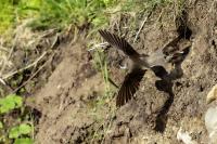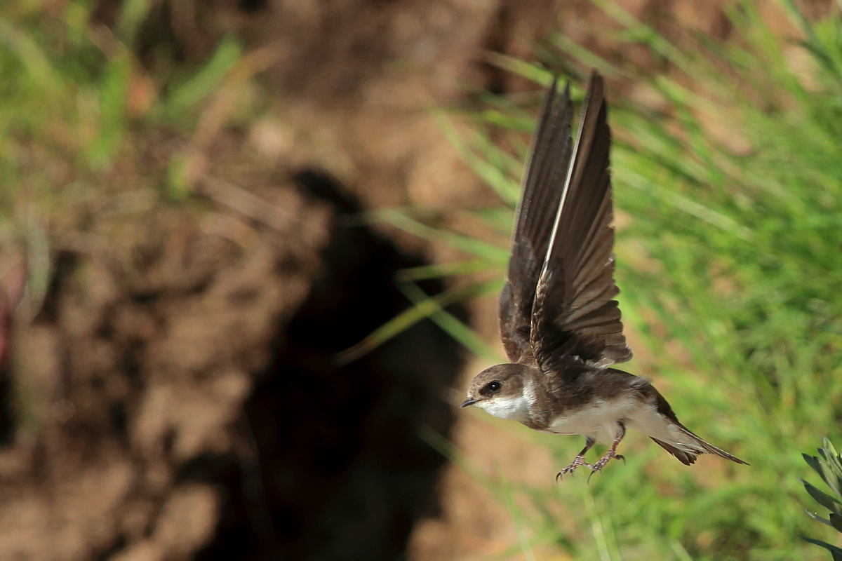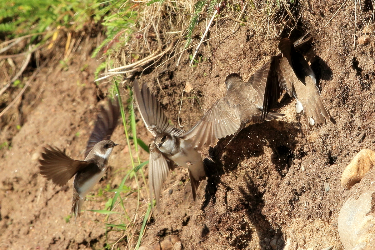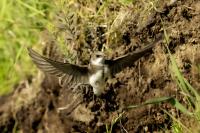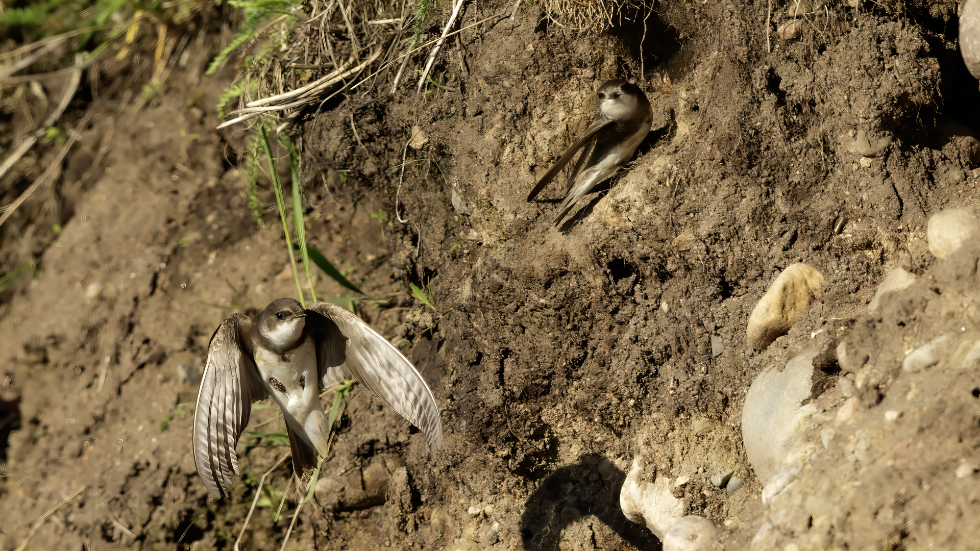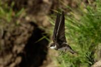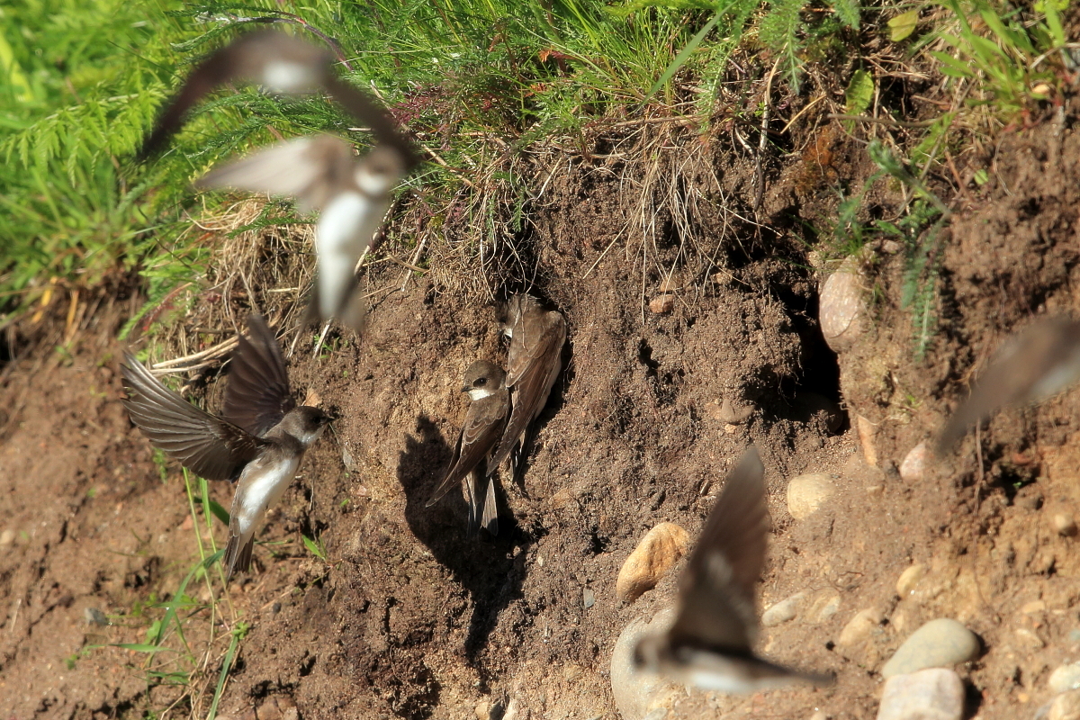 It was quite a big surprise to me when I  found a colony of sand martins literally 3 meters from the fairly busy sidewalk full of pedestrians. 2-3 meters down towards the river, on a slope, just in the vertical sandy walls some holes bored in sand could be seen where at the end of the tunnels sand martins have their nests. Everything is in miniature because these vertical walls were teen, sometimes twenty or so centimeters high and  I could watch it within a few meters. When I sat on the bank of the river, the 600 lens turned out to be too long to capture the nearest hole-nests. There was no way to take dynamic shots but directing the lens at some distant places  such an opportunity arose. I saw the colony in the evening but there were quite many walkers and I decided to try again in the morning. As for  the light conditions it did not really matter because there the day lasted almost round the clock (northern Finland in June). The intensity of the light was decreasing slightly in the evening and in the morning. The session began at 5 am with recording the sound of the birds when they were coming flying. It is a pity that the sound of splashing water could not be removed and it is a bit tedious when listening. But that is how it was. I have so many images  and in term s of quality better enough to  rebuild the gallery, which is also complimented with my own sound recording.