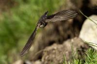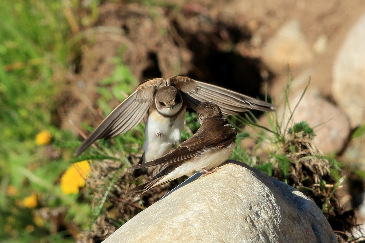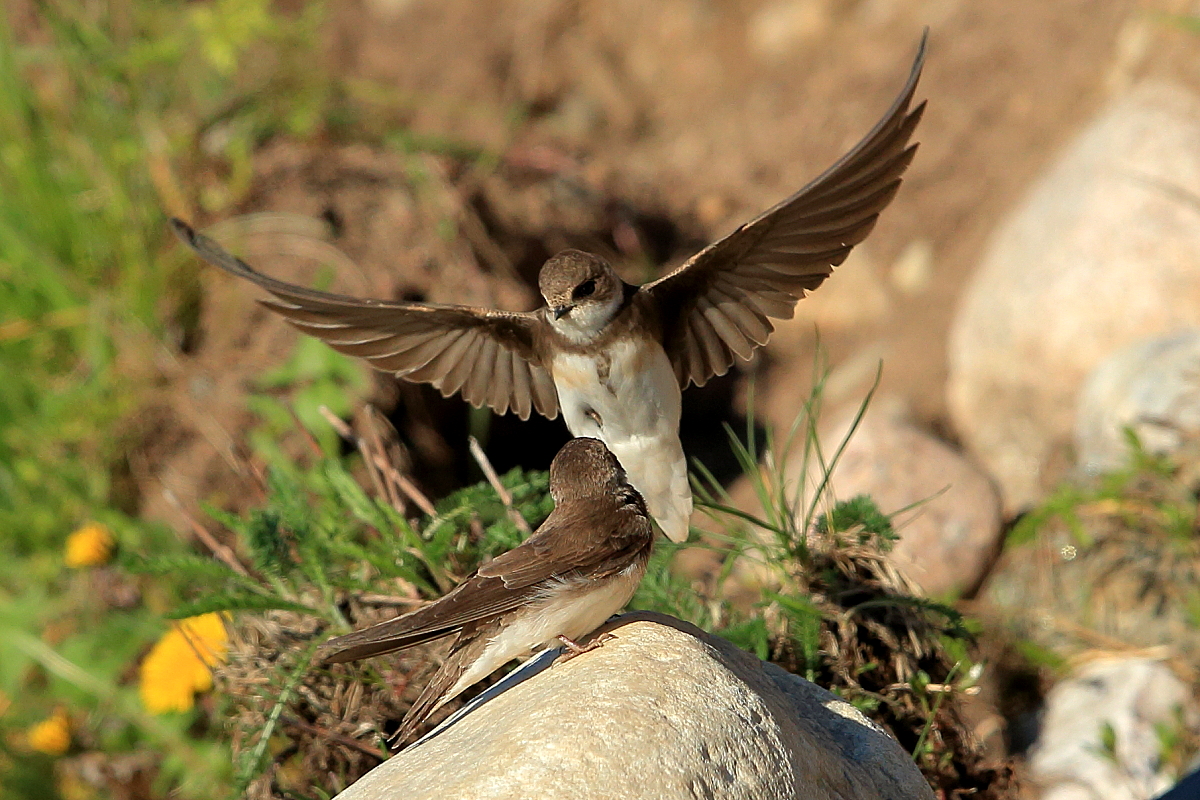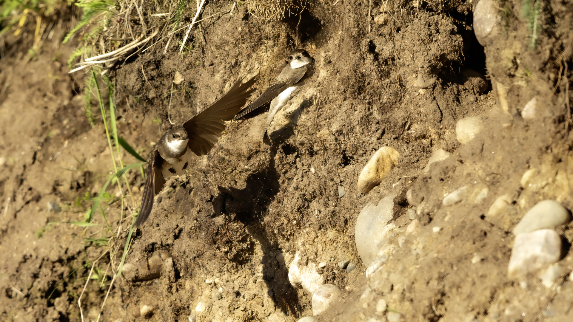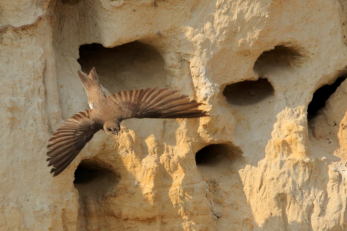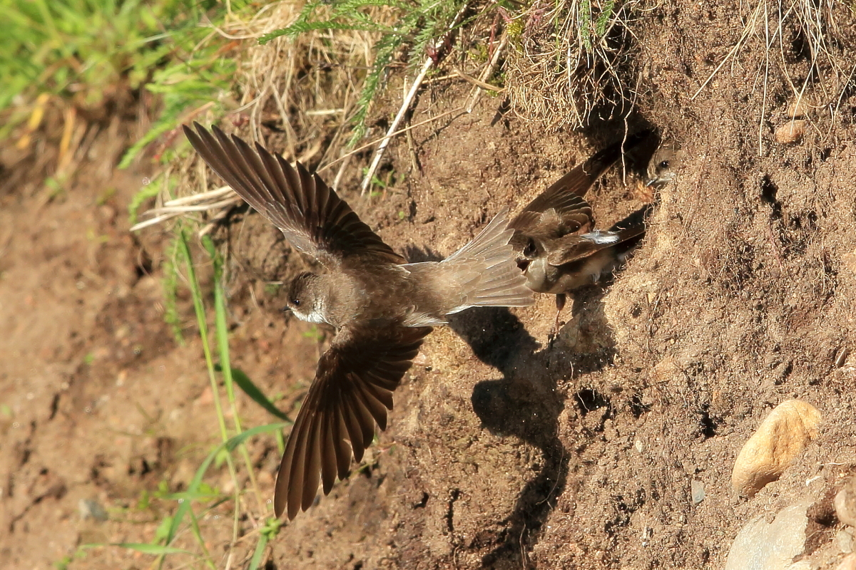 It was quite a big surprise to me when I  found a colony of sand martins literally 3 meters from the fairly busy sidewalk full of pedestrians. 2-3 meters down towards the river, on a slope, just in the vertical sandy walls some holes bored in sand could be seen where at the end of the tunnels sand martins have their nests. Everything is in miniature because these vertical walls were teen, sometimes twenty or so centimeters high and  I could watch it within a few meters. When I sat on the bank of the river, the 600 lens turned out to be too long to capture the nearest hole-nests. There was no way to take dynamic shots but directing the lens at some distant places  such an opportunity arose. I saw the colony in the evening but there were quite many walkers and I decided to try again in the morning. As for  the light conditions it did not really matter because there the day lasted almost round the clock (northern Finland in June). The intensity of the light was decreasing slightly in the evening and in the morning. The session began at 5 am with recording the sound of the birds when they were coming flying. It is a pity that the sound of splashing water could not be removed and it is a bit tedious when listening. But that is how it was. I have so many images  and in term s of quality better enough to  rebuild the gallery, which is also complimented with my own sound recording.