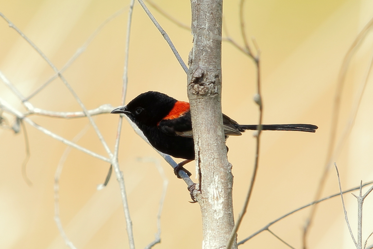 In the Maluridae family it is one of the most beautiful (in my opinion) representatives of this species. Especially males in breeding plumage. The black combined with red against a background of lush greenery is the essence of nature photography. Unfortunately I failed to take "decent" pictures of this beautiful bird, or it is better to say birdie. The birdie, as its weight does not exceed 10 grams, and ranges from 5 to 10 gram. So it is tiny indeed. It occurs in the north and northeast of Australia. It  is an insectivorous bird, it shows the highest activity in this matter at dawn. It builds a nest in shrubs and tall grass. The nest looks like a ball with a diameter of several centimeters,  made ​​of dried grass.