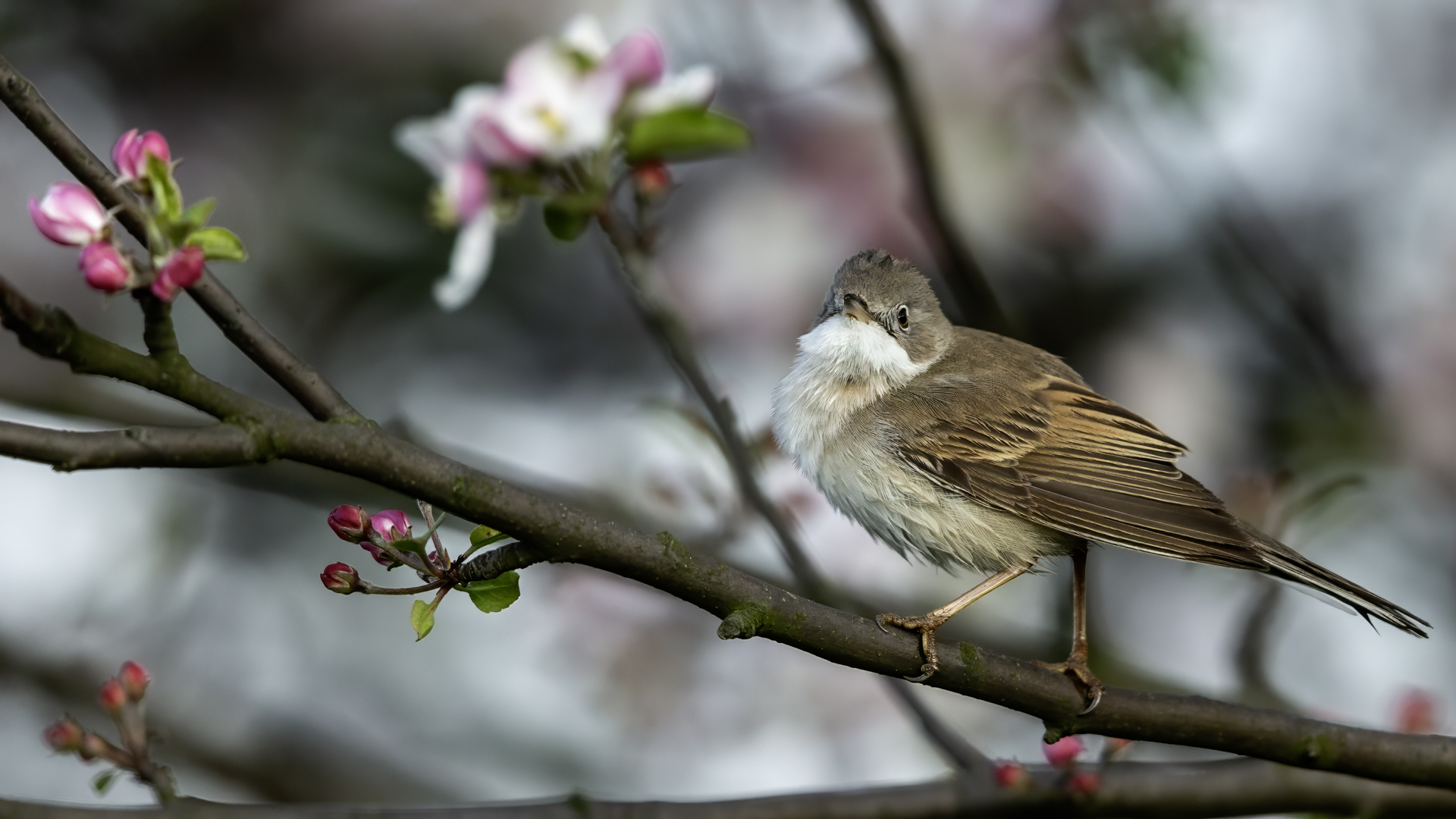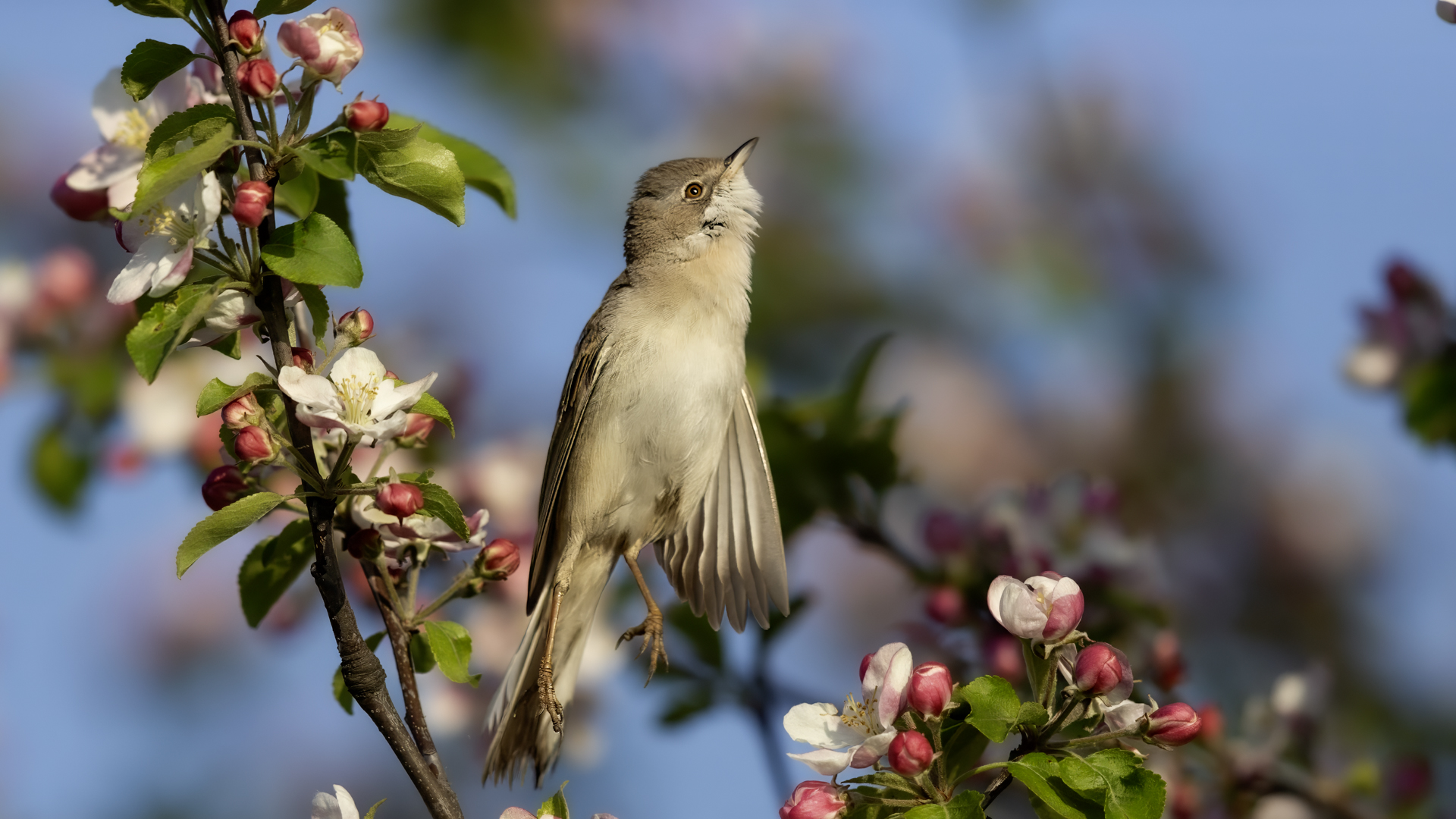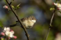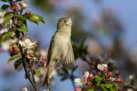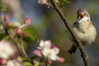 It was worth holding the stare of drivers going down a country road and wondering at the sight of a tent-hides put up just by the road. A whitethroat liked the flowering apple tree and several bushes growing along the road. It was impossible not to notice the bird, or actually not to hear it, because its singing resounded over the surrounding area. I stopped the car, set up the tent and took the first photos. From time to time the session was interrupted by passing cars, which, despite reducing the speed, brought up into the air large amounts of dust near the apple tree. The whitethroat flew away for a moment to another bush, and was back after a while. Unfortunately, it rarely sat on the flowers of rape that grew by the apple tree. Such photos would introduce diversity in the new gallery. Yes, I mean it really new, as the old photos no longer can be found. Previous images might be called documentary but nothing more. Well, such a change in the gallery is highly commendable. It was worth to sit with the whitethroat those few hours to have in result such a change in images, but also for the sound of the bird, whose my own record I was able to make. It was no problem there, the bird was singing all the time during my photo-session...