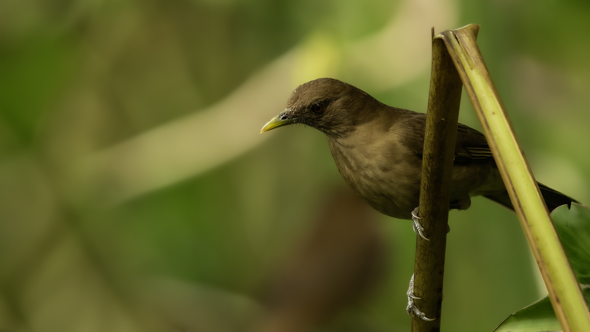A little surprise that this modest medium-sized bird is called the national bird of Costa Rica, a small country where you can find nearly 900 species of birds including those beautiful ones, often rare, fascinating by their colorful plumage (hummingbirds, toucans, trogons and many other). And all this thanks to the convergence of the beginning of the rainy season (April) with the start of the mating season for thrushes and accompanying, apparently, beautiful singing of those birds. It is this song that announces to residents of Costa Rica the beginning of season of abundance, which is the rainy season. I failed to record their voice, because the expedition took place in December, but taking photos was not a problem. Thrushes were common and numerous while we were on the trip. This is why I managed to shoot multiple images and build an interesting gallery without trouble. The bird is slightly smaller than our (Polish) song thrush.