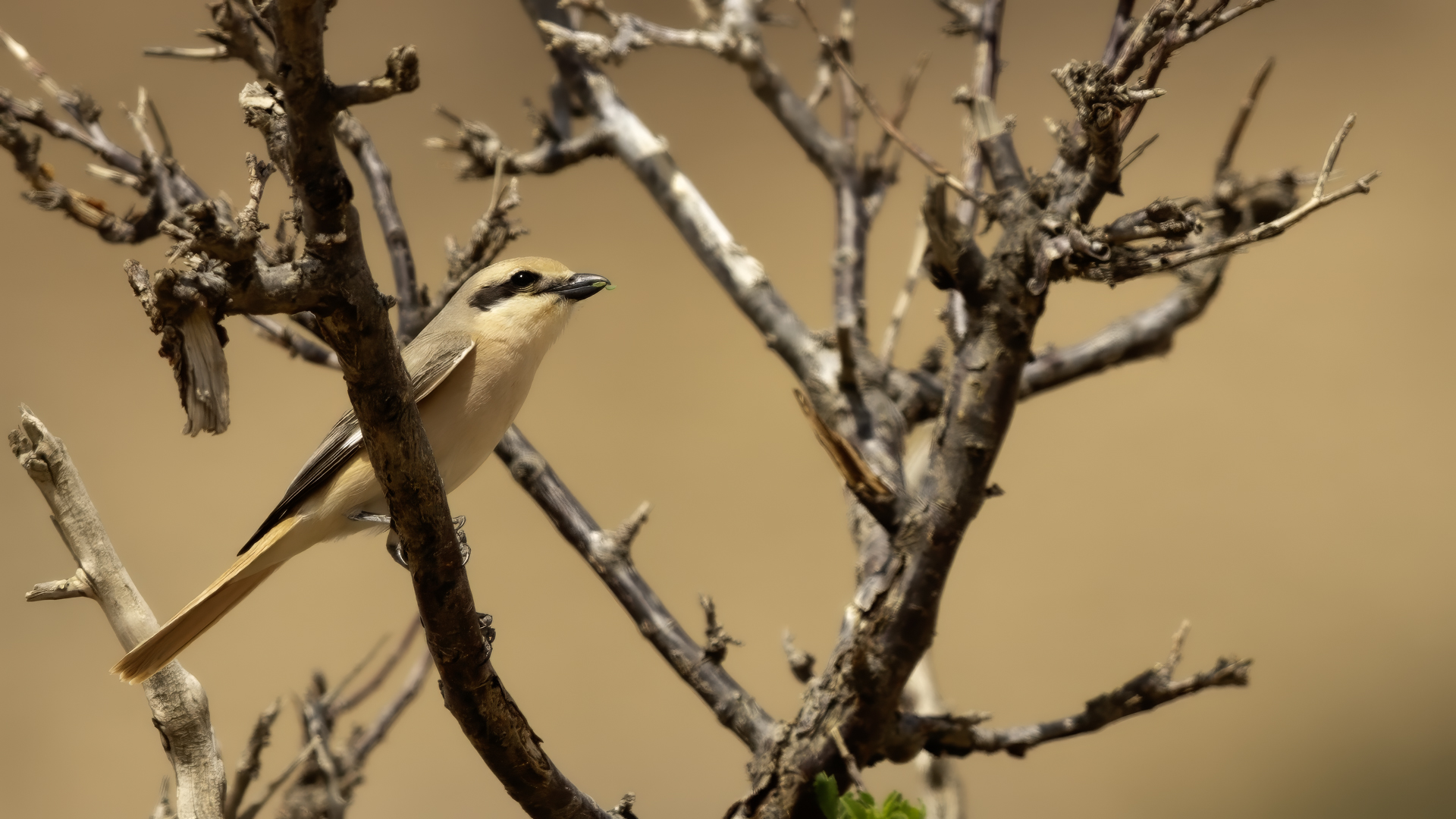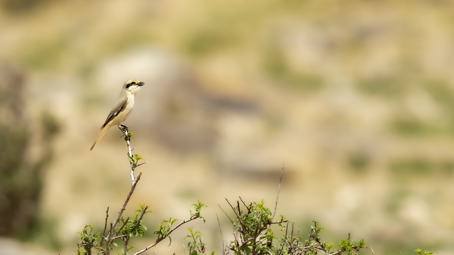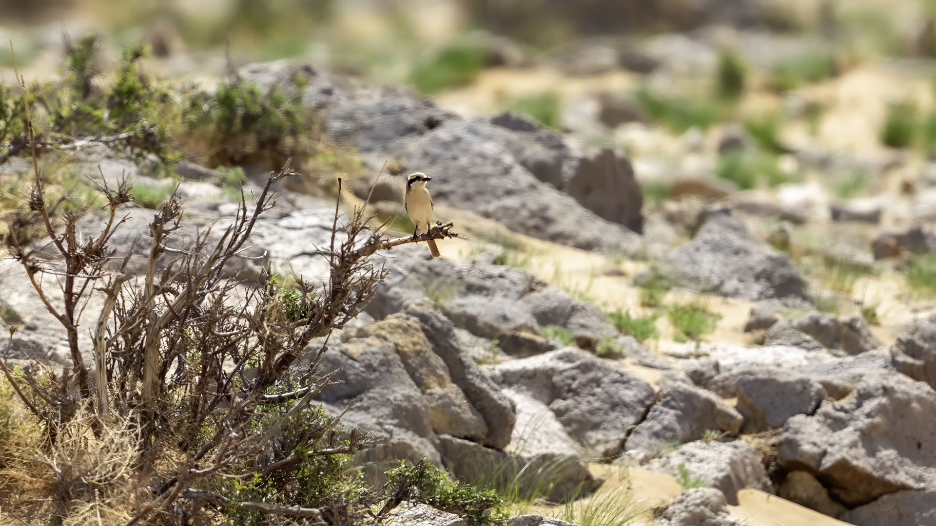 As we were driving through the Gobi Desert, suddenly, on the right side afar we spotted a few trees. We decided to check such a find. In this desert landscape the few trees were inhabited by several warblers and an isabelline shrike. Unfortunately the bird was very skittish and despite of our waiting and camouflage, the bird did not come towards us for a closer distance so that we could achieve better quality of our photos.