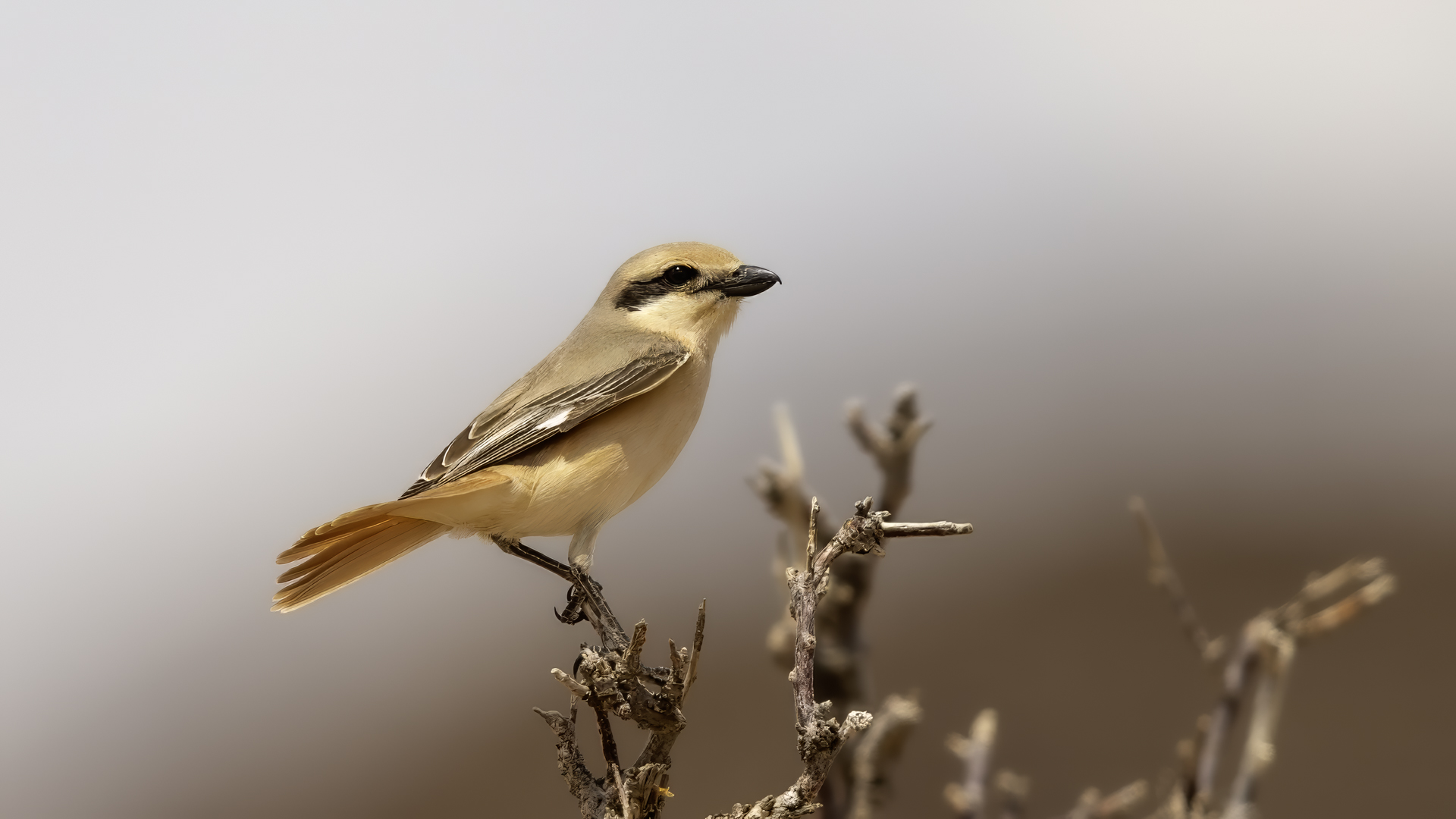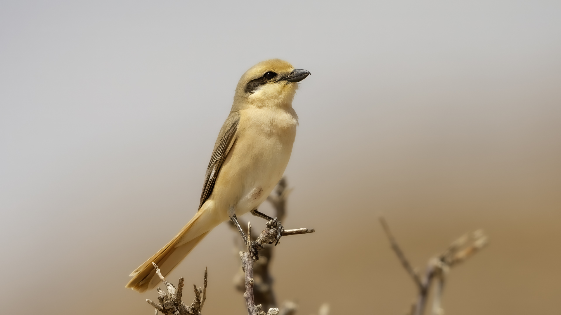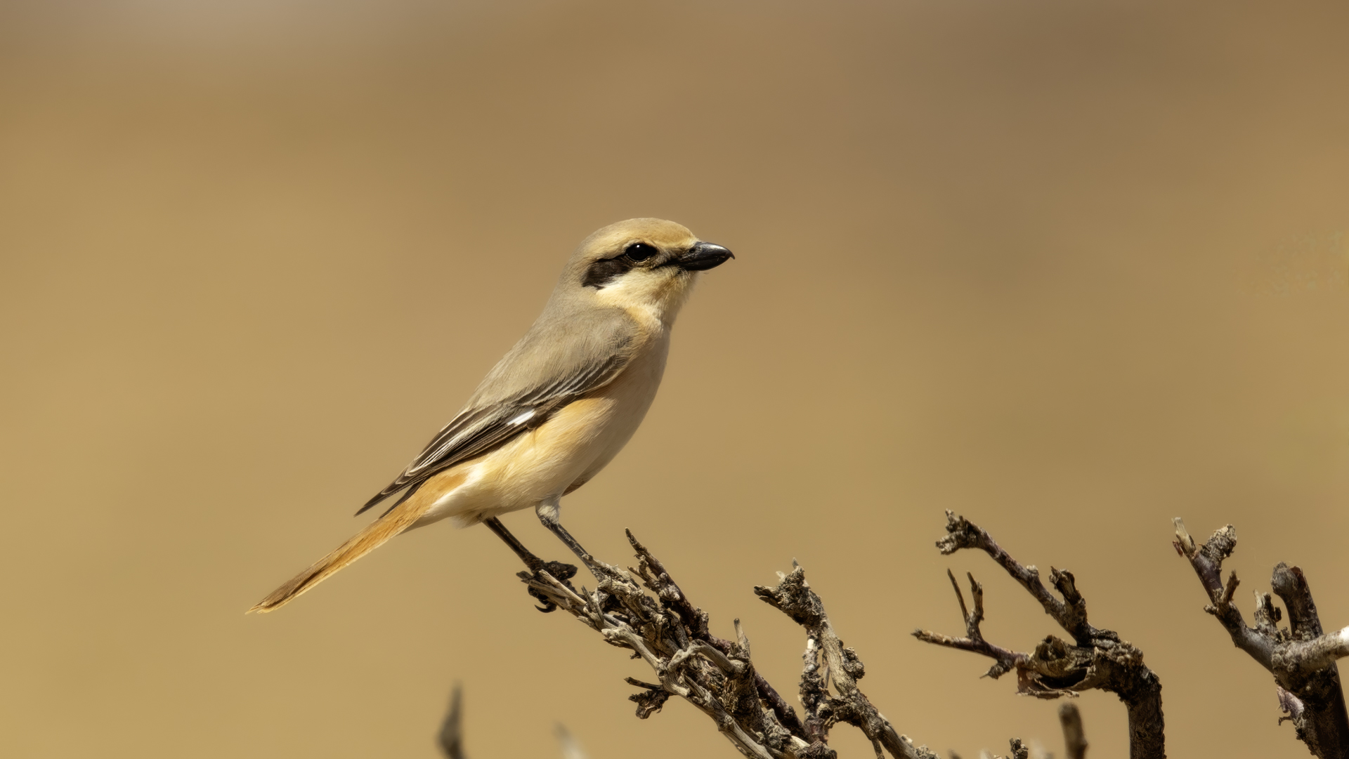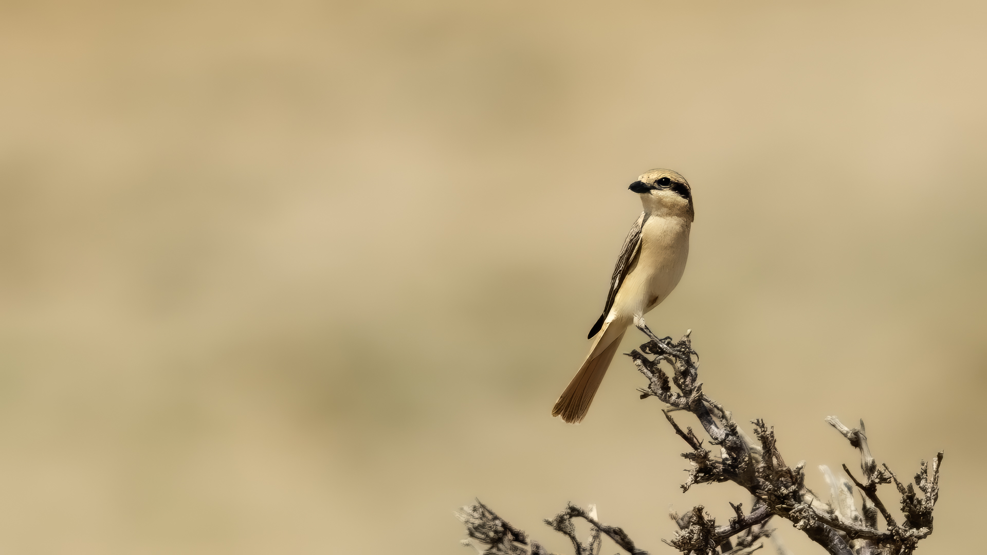 As we were driving through the Gobi Desert, suddenly, on the right side afar we spotted a few trees. We decided to check such a find. In this desert landscape the few trees were inhabited by several warblers and an isabelline shrike. Unfortunately the bird was very skittish and despite of our waiting and camouflage, the bird did not come towards us for a closer distance so that we could achieve better quality of our photos.