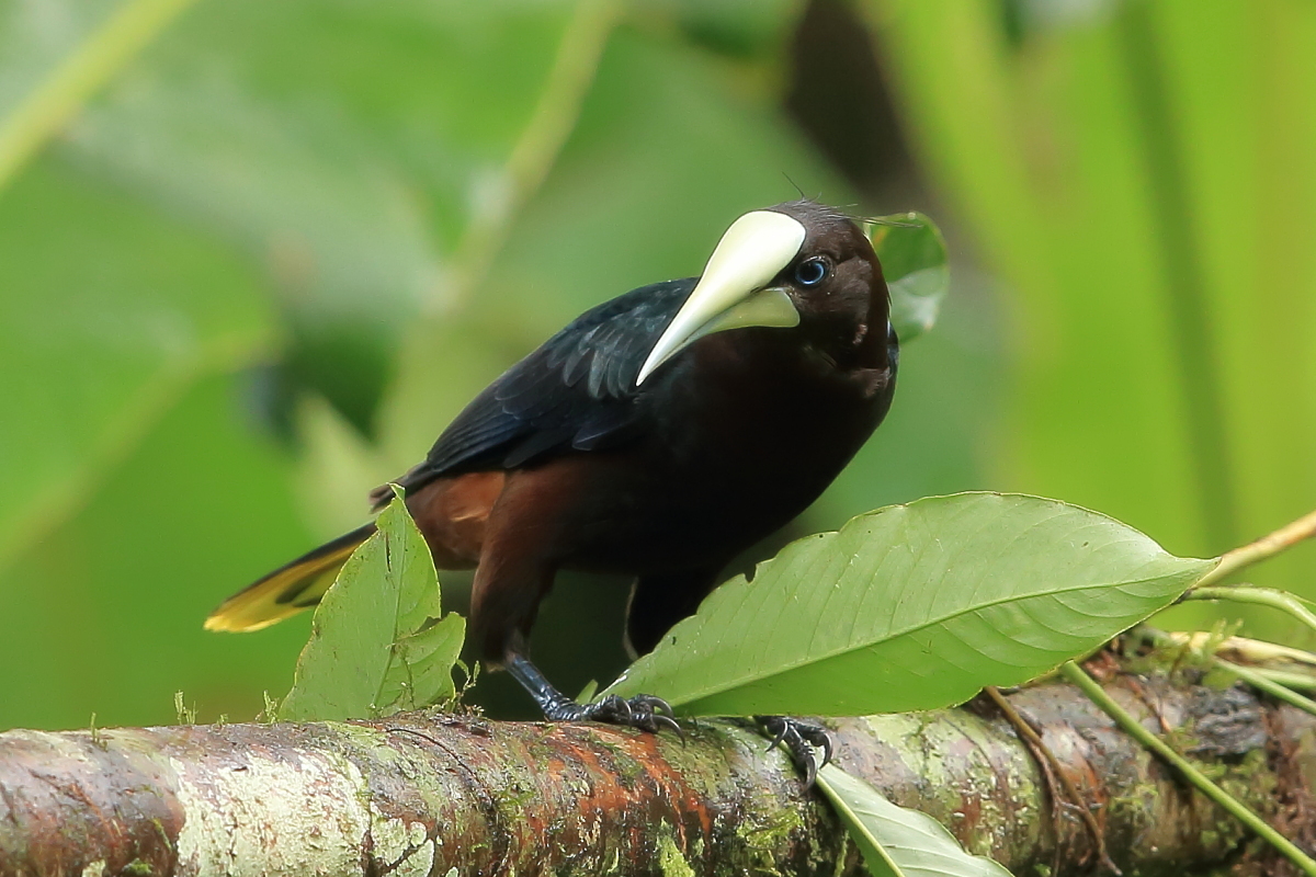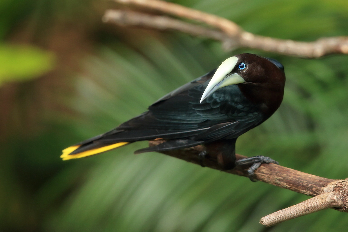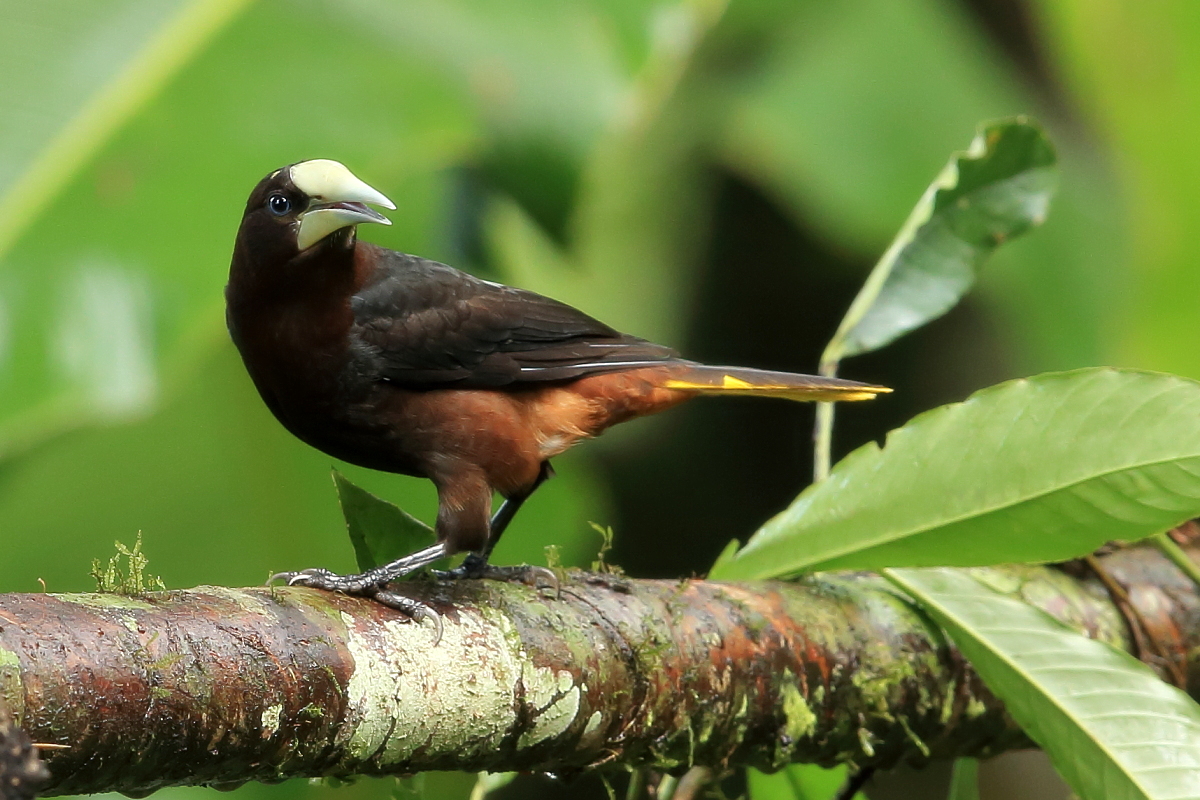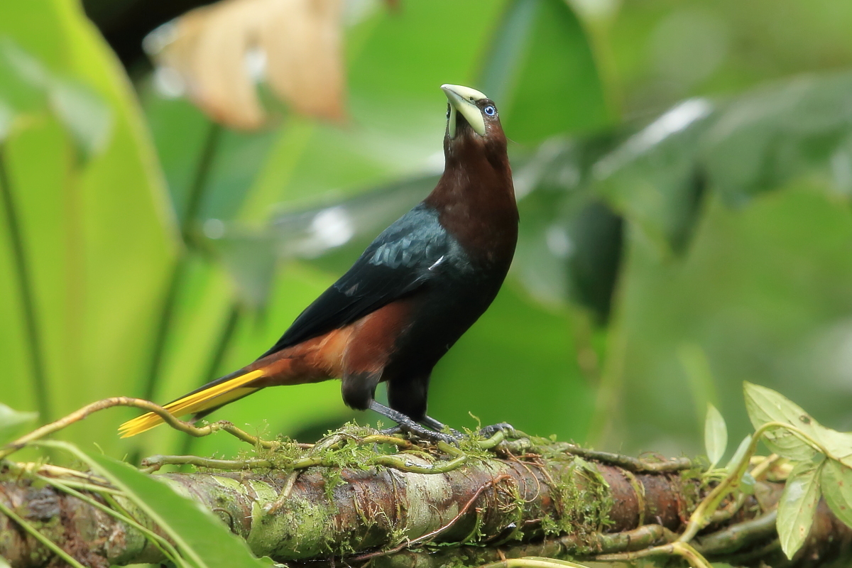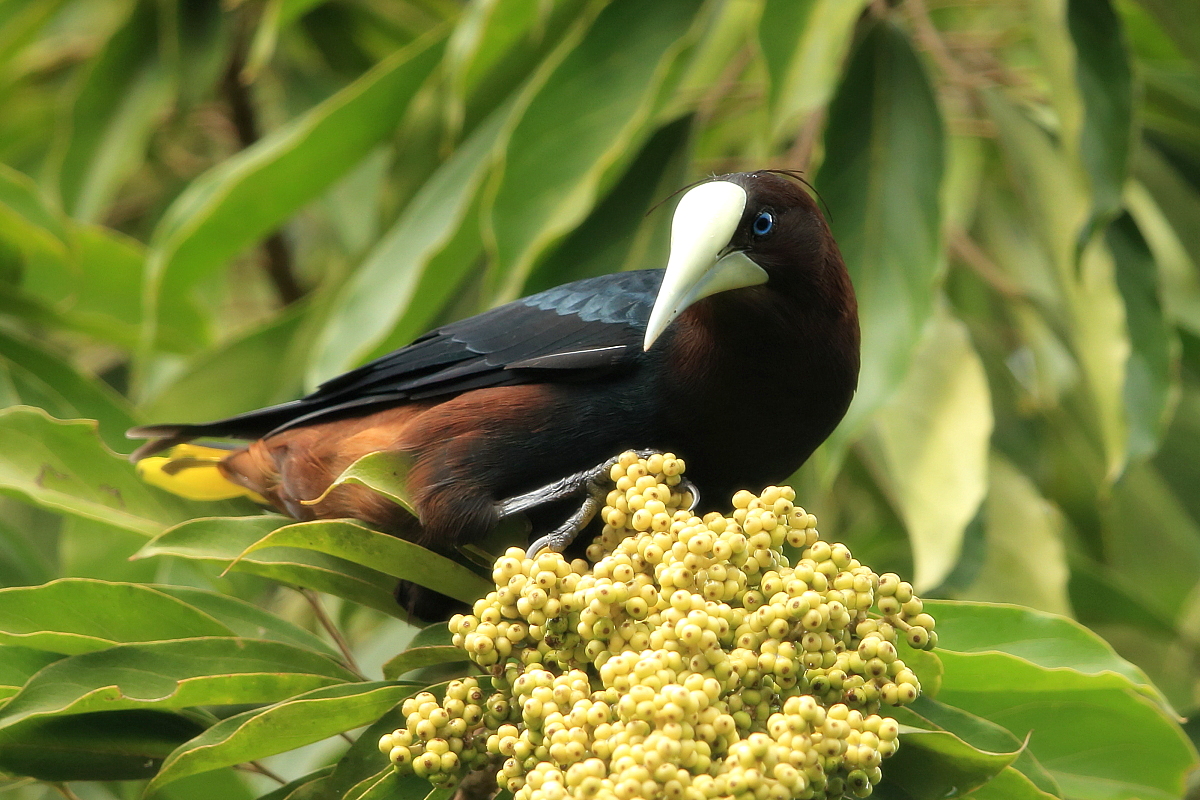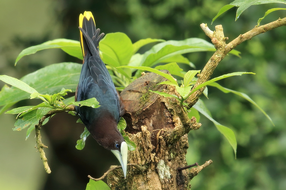 It appears south of Mexico, through Panama and Venezuela at the height of 1000 m above sea level in the zone of rain forests. Like a Montezuma oropendola, it builds nests similar to nests of a weaver, which are icicle-shaped and reach up to one meter in height.  A colony of oropendolas might consist of a few dozen females and several males. Well, there were not many encounters with that oropendola, but they were successful. An interesting gallery has been made.