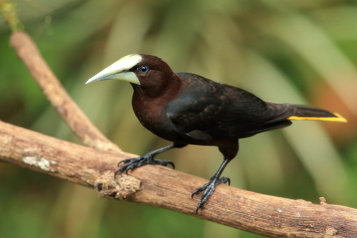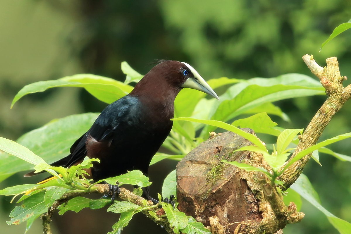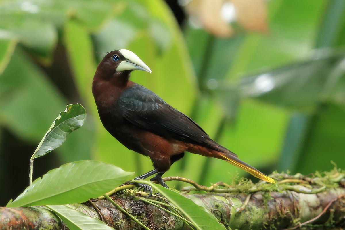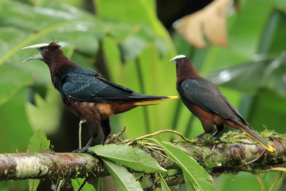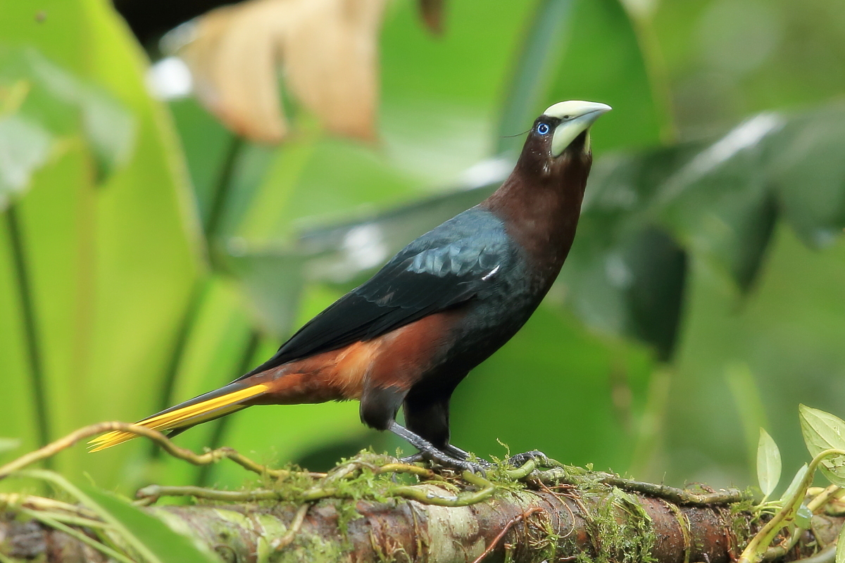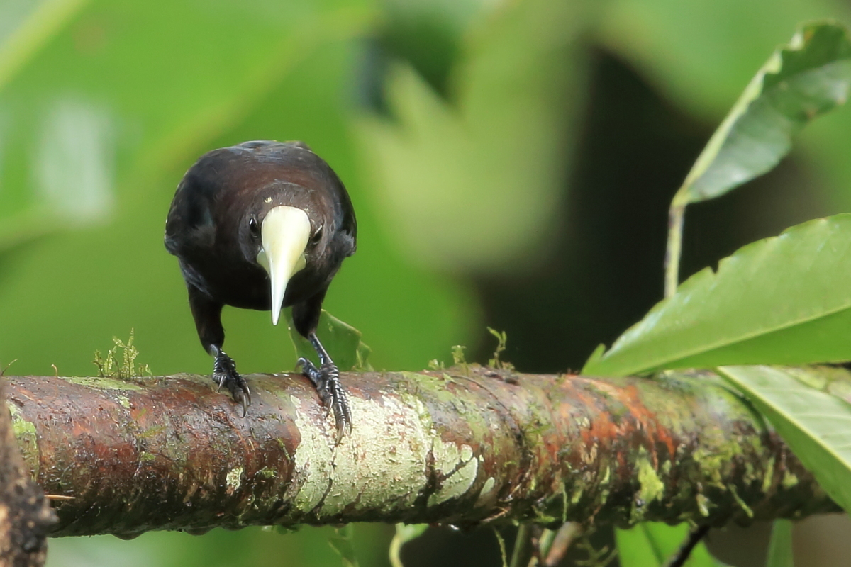 It appears south of Mexico, through Panama and Venezuela at the height of 1000 m above sea level in the zone of rain forests. Like a Montezuma oropendola, it builds nests similar to nests of a weaver, which are icicle-shaped and reach up to one meter in height.  A colony of oropendolas might consist of a few dozen females and several males. Well, there were not many encounters with that oropendola, but they were successful. An interesting gallery has been made.