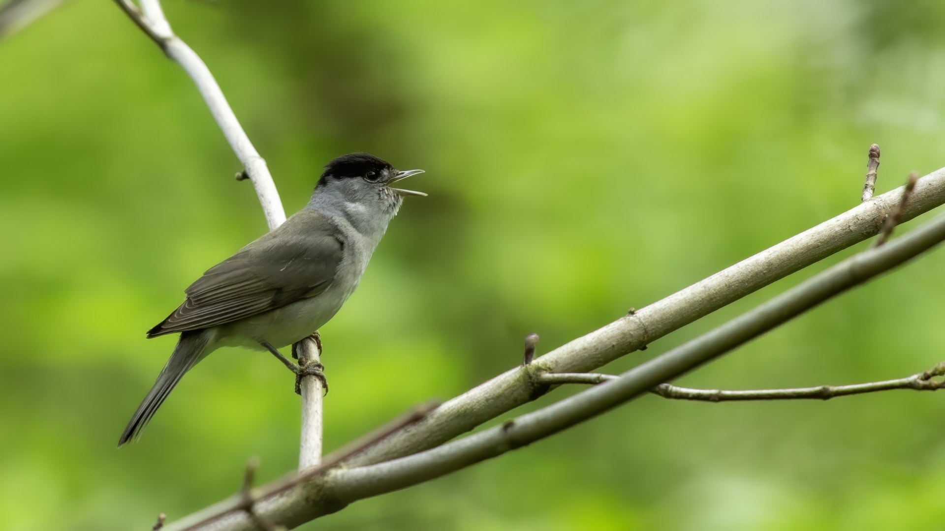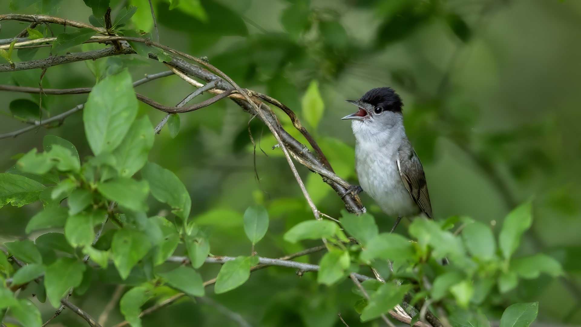 An inconspicuous little bird, beautifully vocalizing. The Eurasian blackcap weighs about 20 g, and has a wingspan of around 20 cm. If you stand still, and it sits down somewhere nearby to perform its song, keep your ears open. Maybe it will feel safer and let you then take even more photographs.