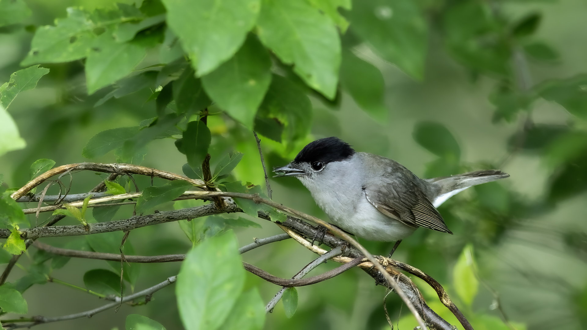 Eurasian Blackcap The visit to the ropes course changed Common Redstart’s and Eurasian Blackcap’s galleries. Blackcap wasn’t such an easy object to photograph as the redstart, but she did hunt in the nearby bushes and let me photograph it. It’s a shame that the distance was bigger and the light worse.
