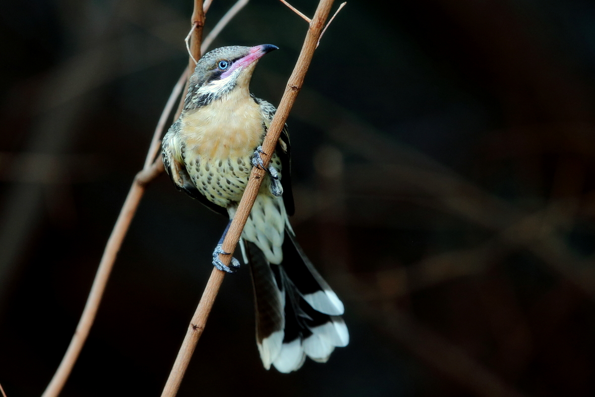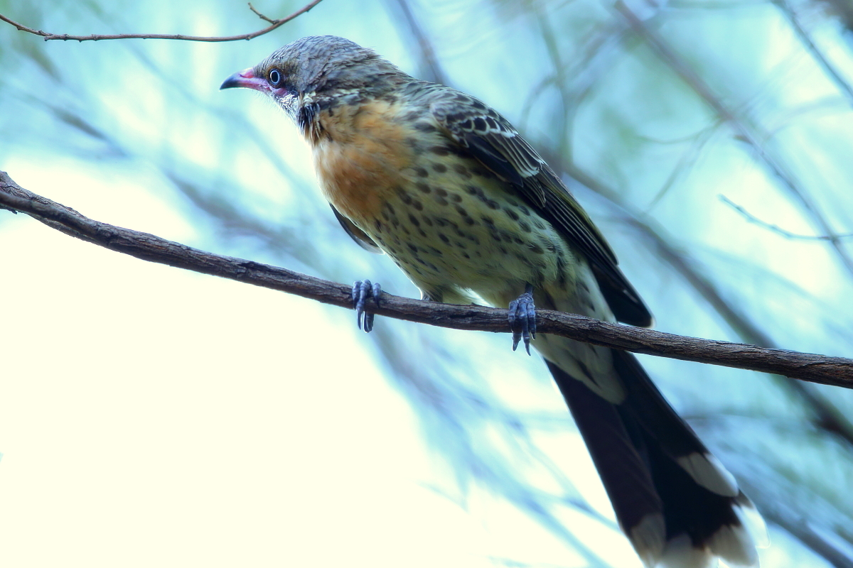 I’m glad that I managed to take a few satisfactory photos of this bird. Its amazing, aggressive look and interesting coloring make an interesting composition. They are practically omnivorous. They eat other tiny birds as well as fruit and insects. The weigh of this bird is about 50 gram. When I was photographing it in  Uluru, it was so absorbed in observing finches that I could approach it at a few meter distance and take photos which are presented in this gallery without framing. Of course everything was not so easy everywhere.