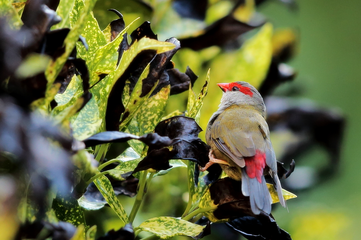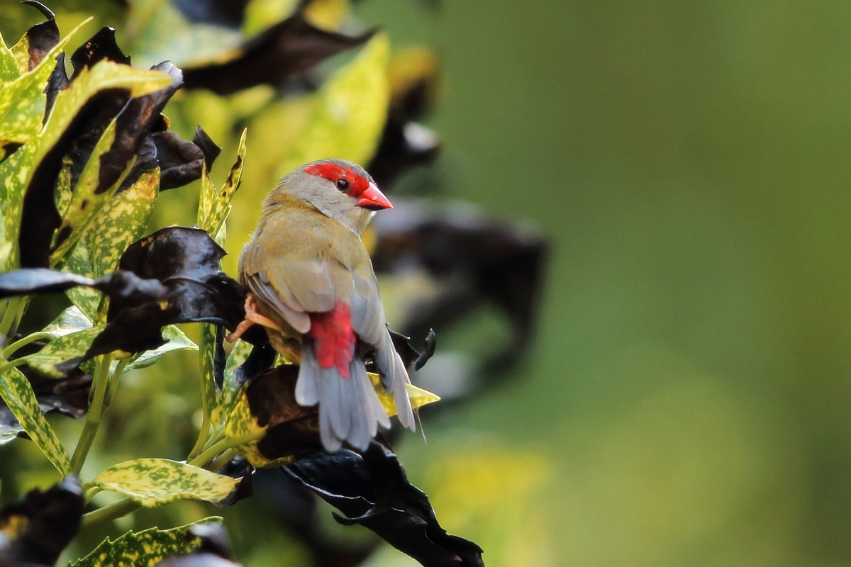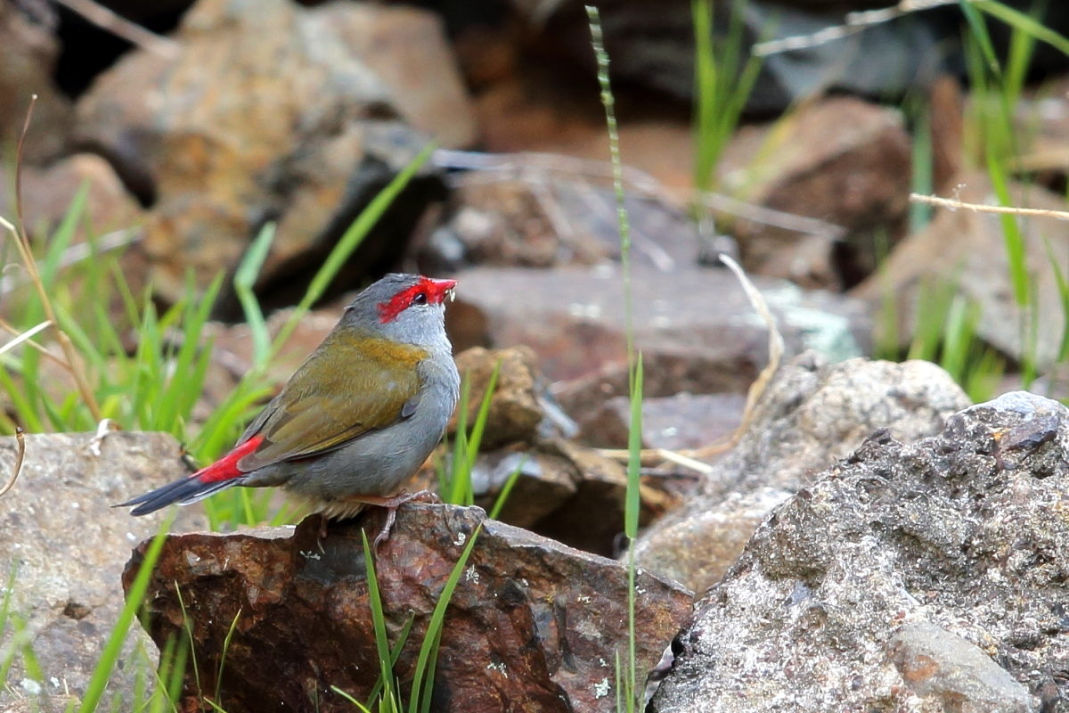 What a great pleasure it would be for many bird-breeders, as the Red-browed Finch  is a breeding bird. Its natural environment it is the east coast of Australia. It is said to fly in small flocks, but I never had the pleasure to observe such situation. My two meetings with one individual resulted in several photographs. Once in the Blue Mountains, once in the vicinity of Townsville. Red-browed finches build a nest of dried grass 2-3 meters above the ground. The nest  looks like a ball with tunnel side entrance.