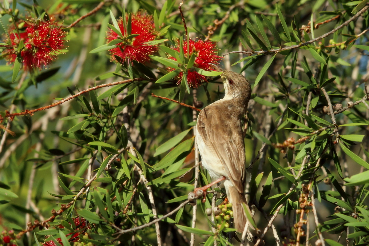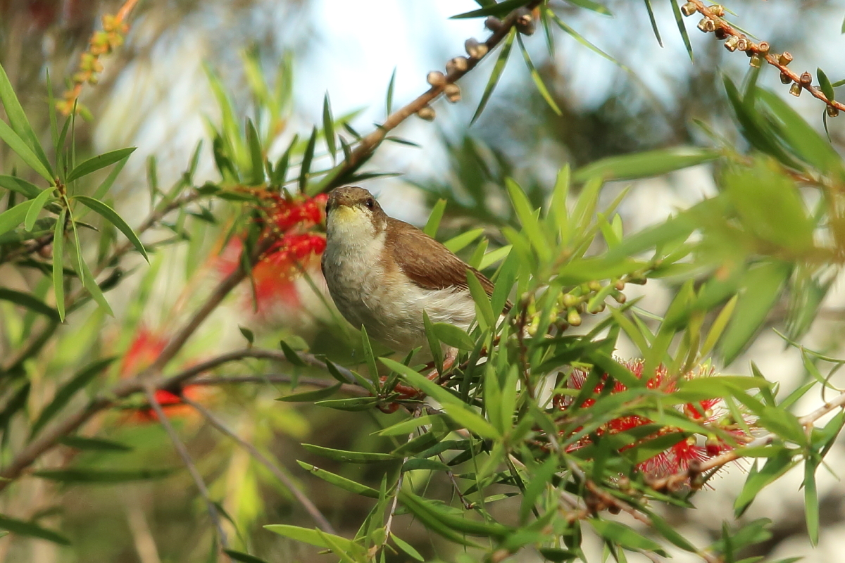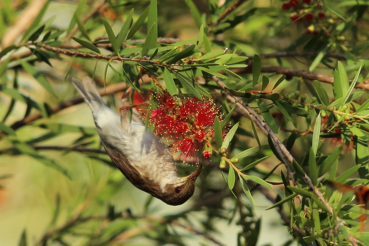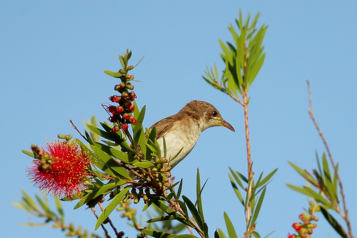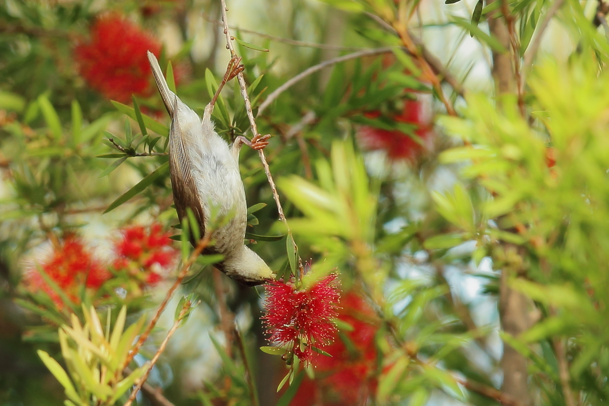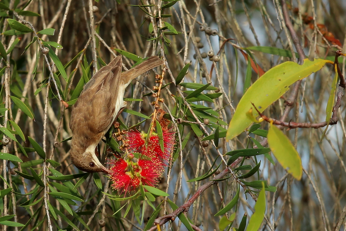 Another representative of  honeyeaters photographed in and around Townsville. On abundantly flowered bush there were a few birds, they were of two different species - as it later turned out. Personally I have not seen it but they are said to build their nests just like our penduline tits - as far as I could find out.