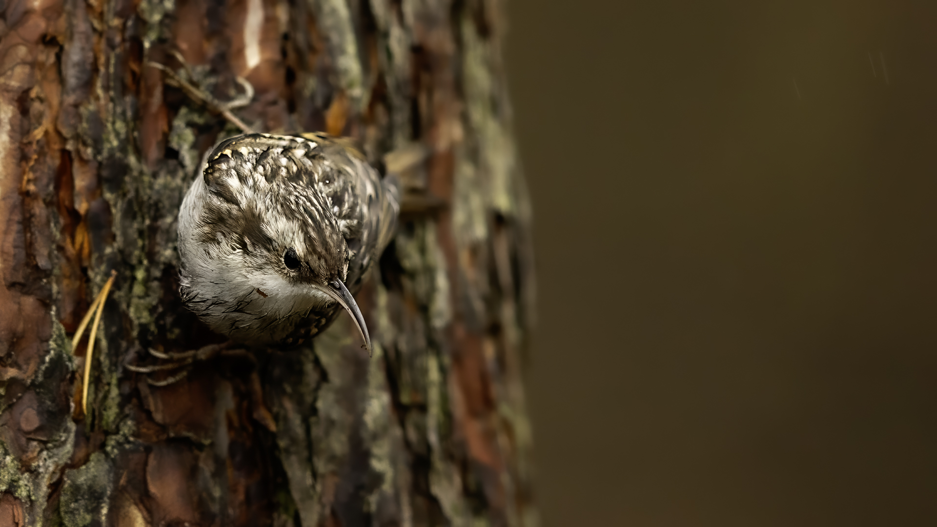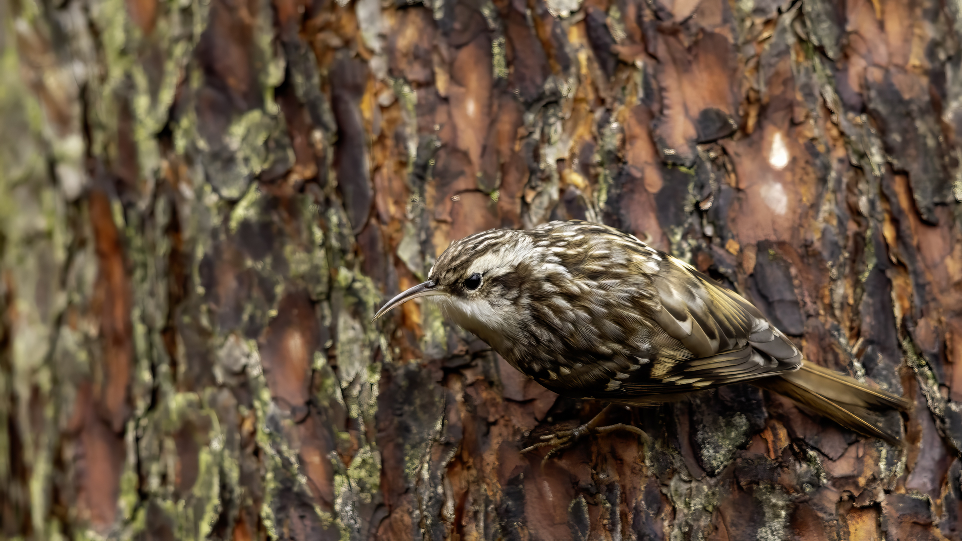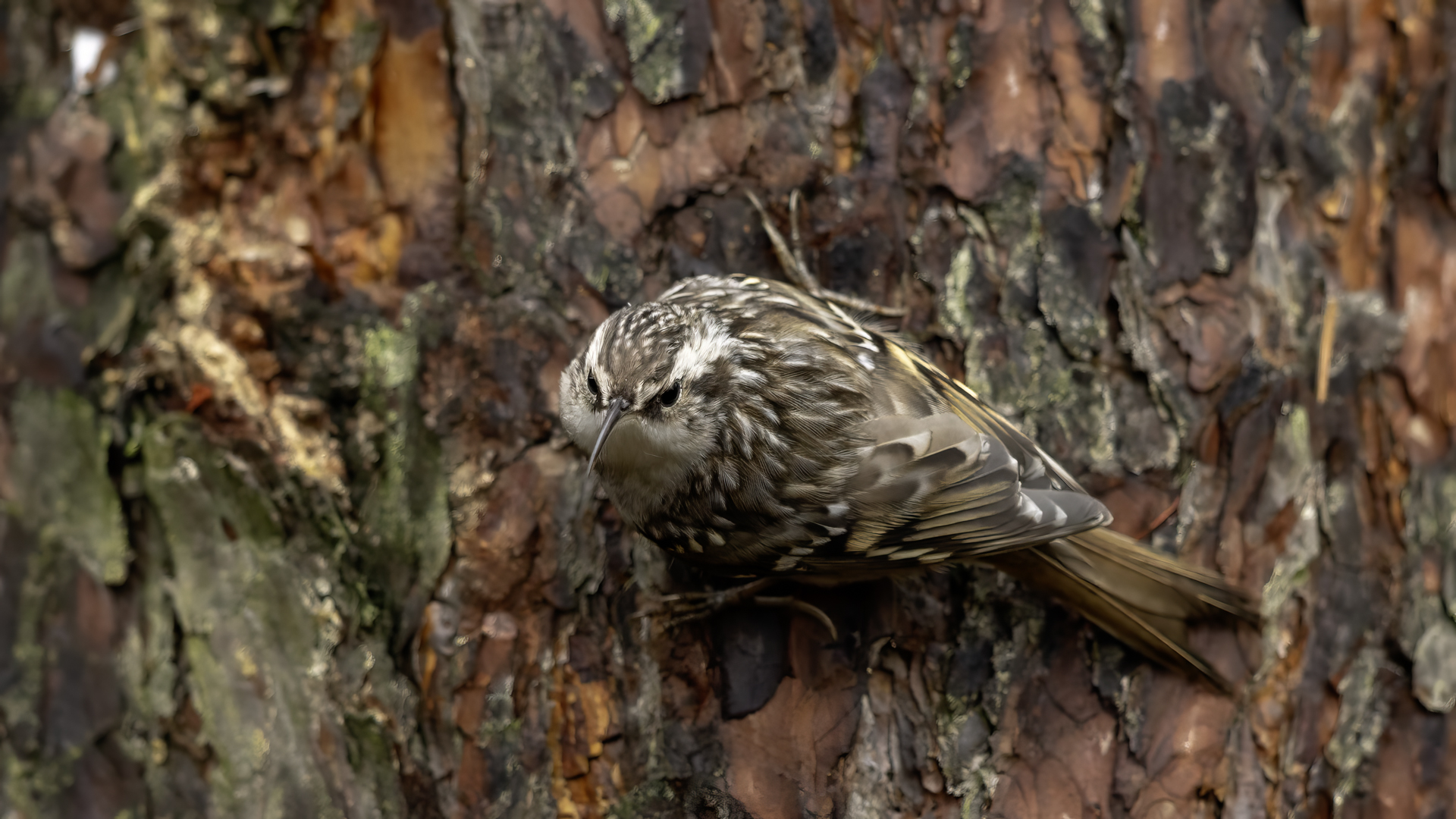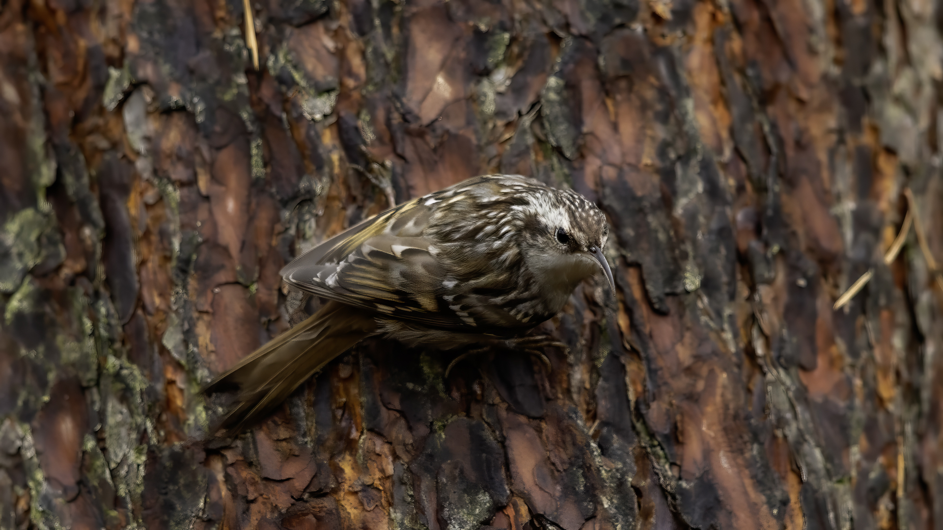 Personally, distincting an Eurasian Treecreeper from a Short-toed Treecreeper is a challenge for me. That is why the description of both of them is of the same contents. According to literature an Eurasian Treecreeper most commonly appears in Europe and Asia, while a Short-toed Treecreeper, more thermophilic, inhabits Europe, specifically its Mid and Southern part. Fundamentally, they differ by the length of the rear claw and it would be best if they simply sat beside each other to make the task that much easier. I assume that the Short-toed is more common in Europe, that's the reason for my qualification of this species. Because Treecreeper does not migrate during the winter, time of impoverishment of the species in the forests, we can focus our attention on it. It is interesting to photograph the Treecreeper in a frost of a dozen degrees. Silence, it almost squeals through your ears, no sounds and in such surrounding you can hear almost piercing scratching on a bark. And as the crackling frost strenghtens voices it also strenghtens our notion of what is out there sitting in the woods. Pupils expand, not sure if it's from concentration and looking out or from dread. And here sits a little, 10 grams cleaner, cleaning the bark from insects. In such conditions, with subtle moves it is not even worth masking. After a while in the frost a Treecreeper ought to reward our sanguineous nose. Let's hope the battery and the camera's body will hold...