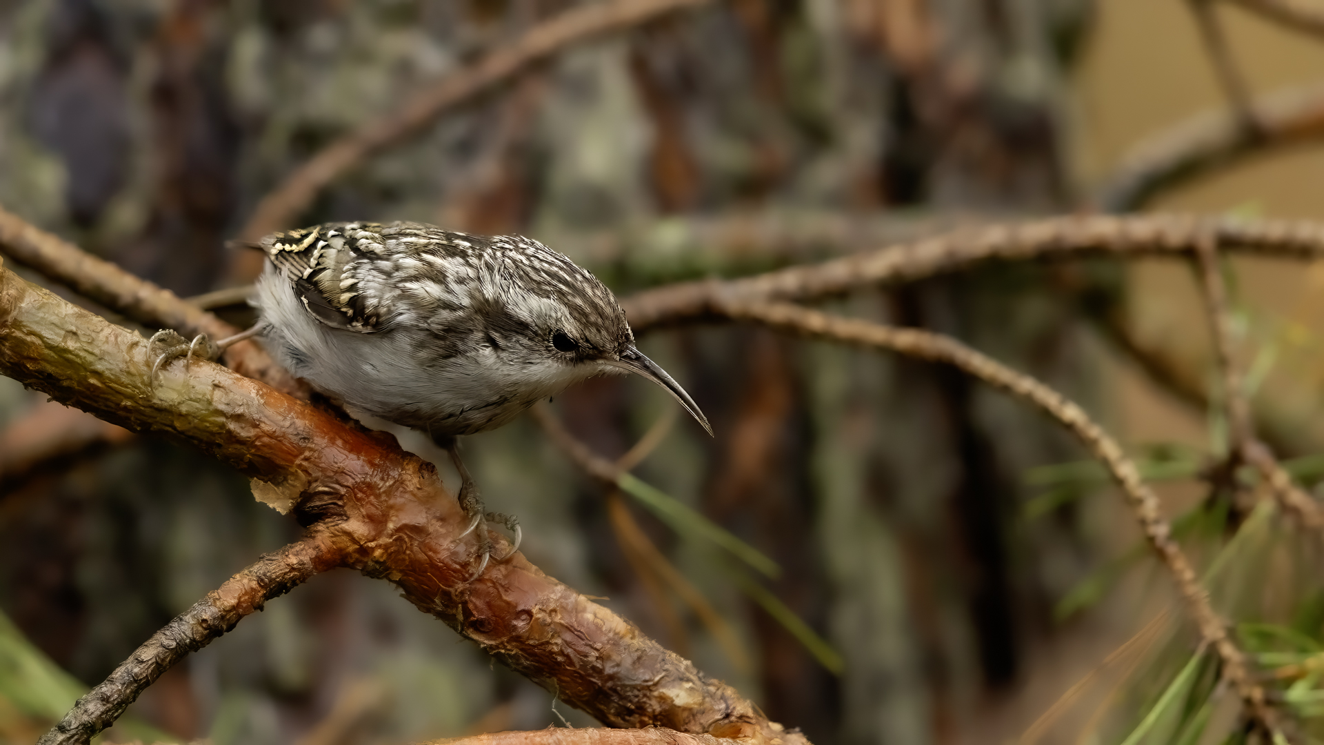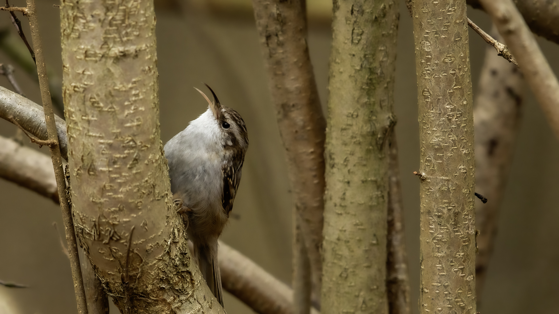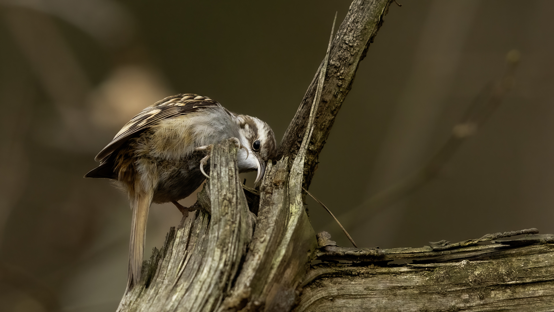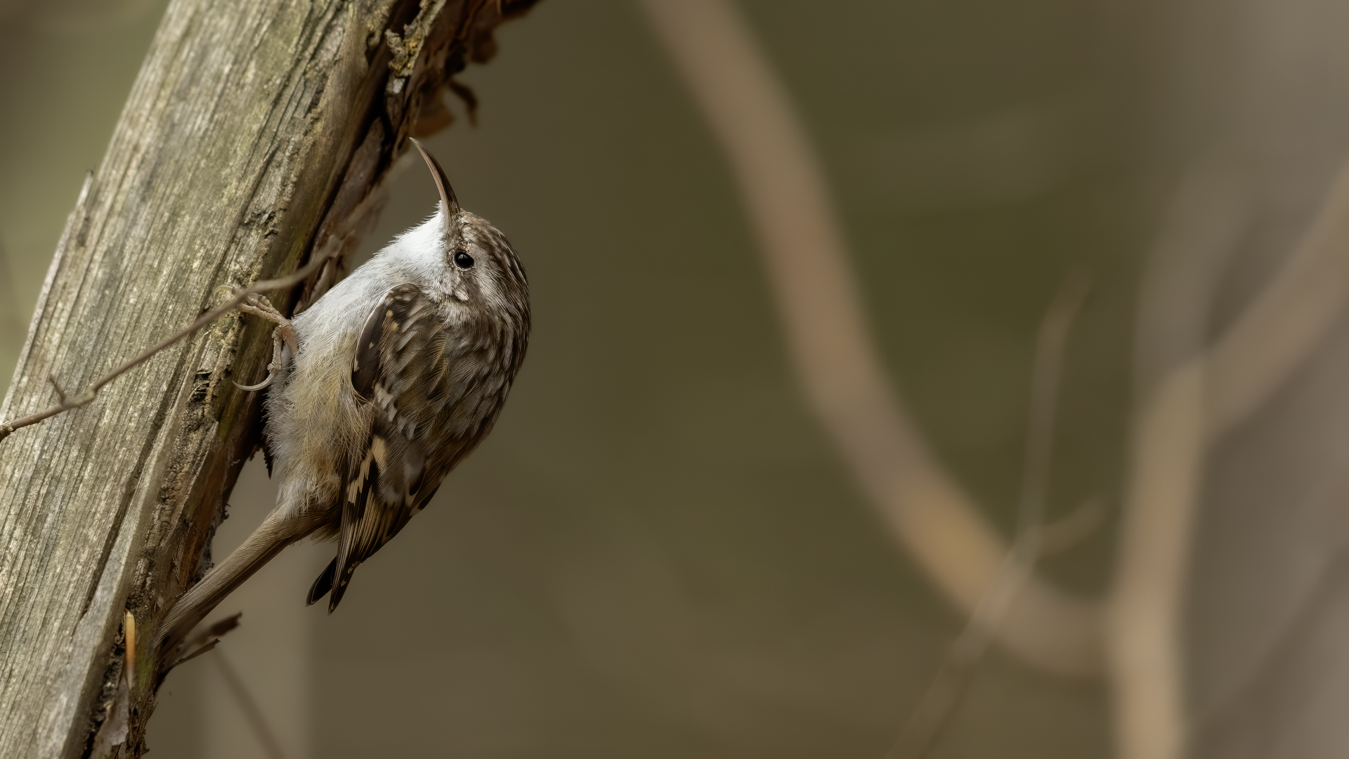 Personally, distincting an Eurasian Treecreeper from a Short-toed Treecreeper is a challenge for me. That is why the description of both of them is of the same contents. According to literature an Eurasian Treecreeper most commonly appears in Europe and Asia, while a Short-toed Treecreeper, more thermophilic, inhabits Europe, specifically its Mid and Southern part. Fundamentally, they differ by the length of the rear claw and it would be best if they simply sat beside each other to make the task that much easier. I assume that the Short-toed is more common in Europe, that's the reason for my qualification of this species. Because Treecreeper does not migrate during the winter, time of impoverishment of the species in the forests, we can focus our attention on it. It is interesting to photograph the Treecreeper in a frost of a dozen degrees. Silence, it almost squeals through your ears, no sounds and in such surrounding you can hear almost piercing scratching on a bark. And as the crackling frost strenghtens voices it also strenghtens our notion of what is out there sitting in the woods. Pupils expand, not sure if it's from concentration and looking out or from dread. And here sits a little, 10 grams cleaner, cleaning the bark from insects. In such conditions, with subtle moves it is not even worth masking. After a while in the frost a Treecreeper ought to reward our sanguineous nose. Let's hope the battery and the camera's body will hold...