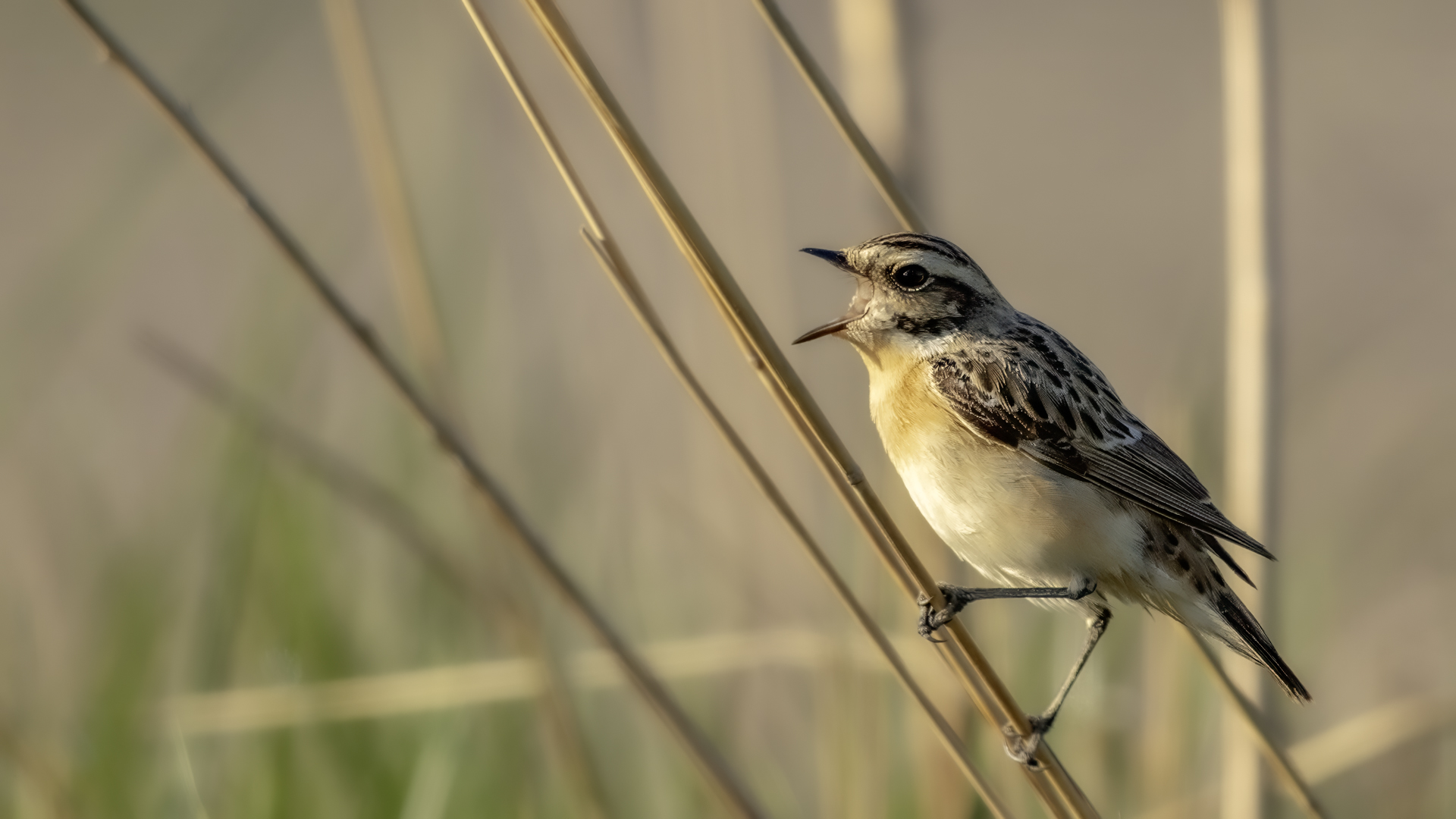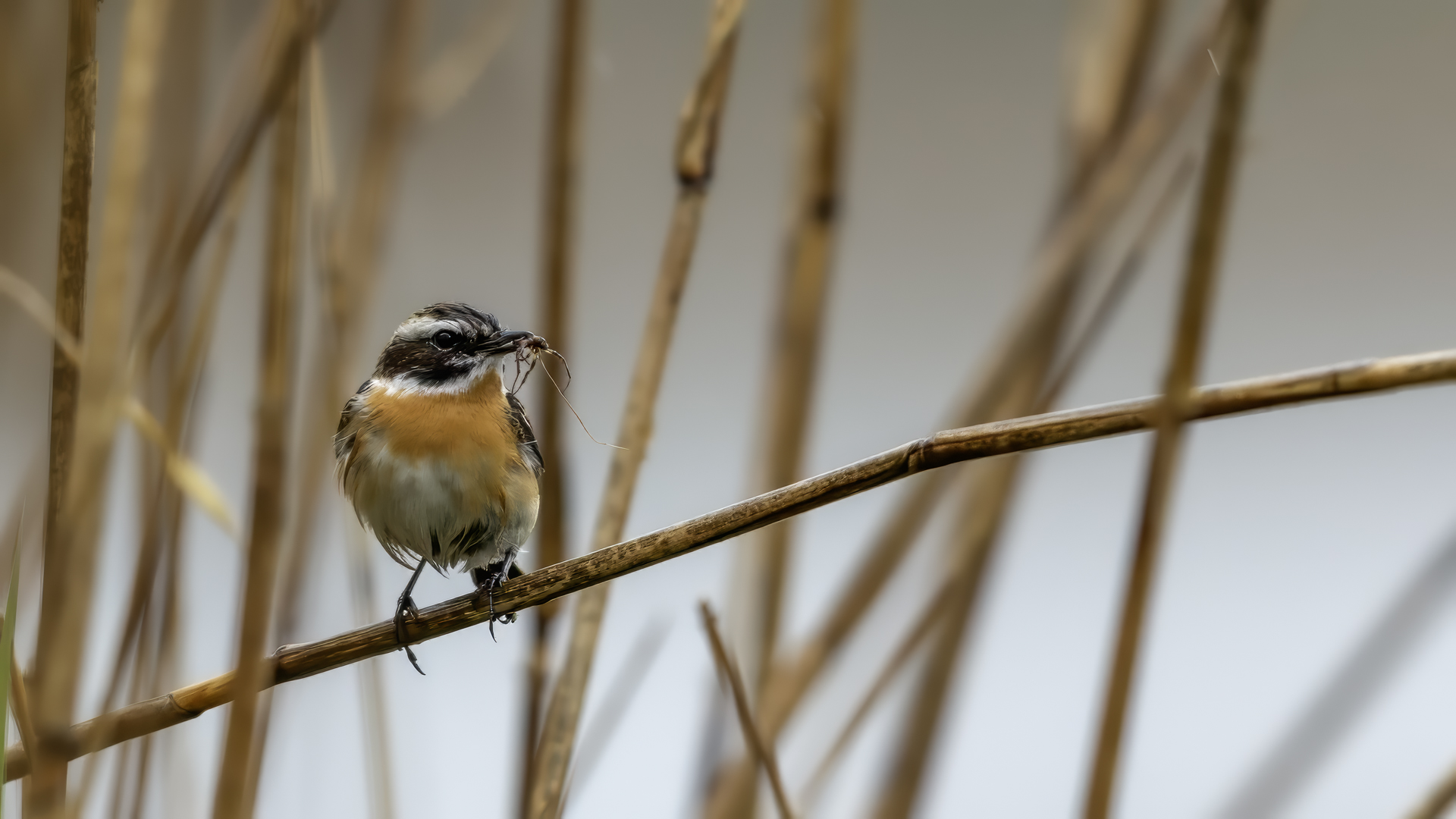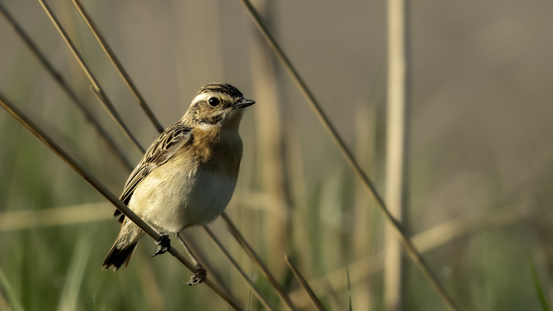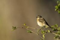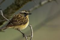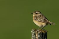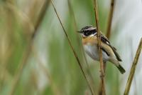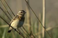 It is a shame that a Whinchat is getting harder to spot in our country, as it likes wet terrains of meadows and pastures with curvatures which are disappearing from our land. Unfortunately, I have to confirm it, I have managed to find it at the shore of the lake. It is a migrating bird, so in the Autumn/Winter time it can not be spotted in our country. It winters in Africa. Whinchat is a bit smaller than a Sparrow. Its weight comes up to 20 grams with a wingspan exceeding 20 centimeters.