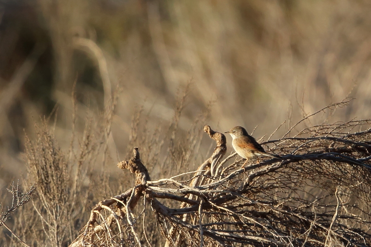I do not know why, but somehow in Poland I had no opportunity to shoot our warbler - Garden warbler, which is quite popular species. On Fuerteventura I was wandering a lot looking for the spectacled warbler. It was always very skittish and kept a considerable distance, so the presented images are quite distinctively framed. I could always watch it in open areas overgrown with bushes. Just like the grey shrike it had got its favorite observation point that was slightly up.