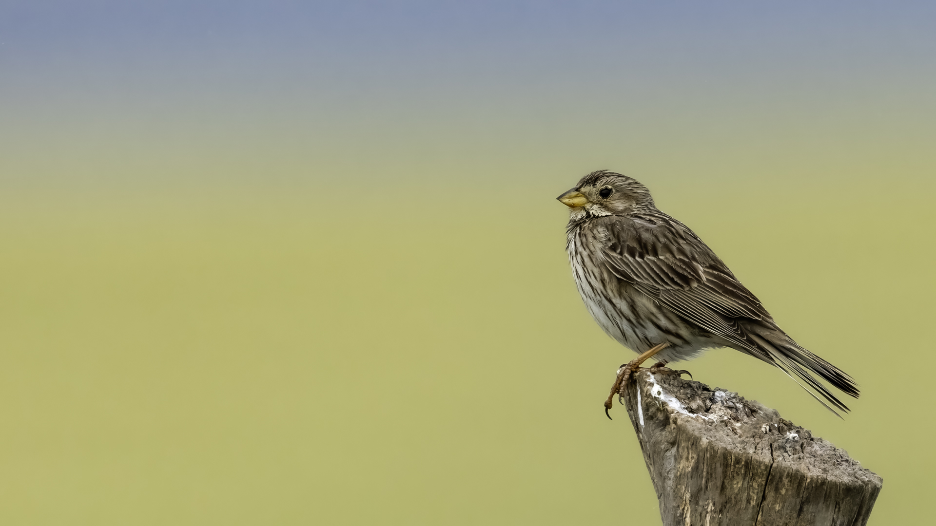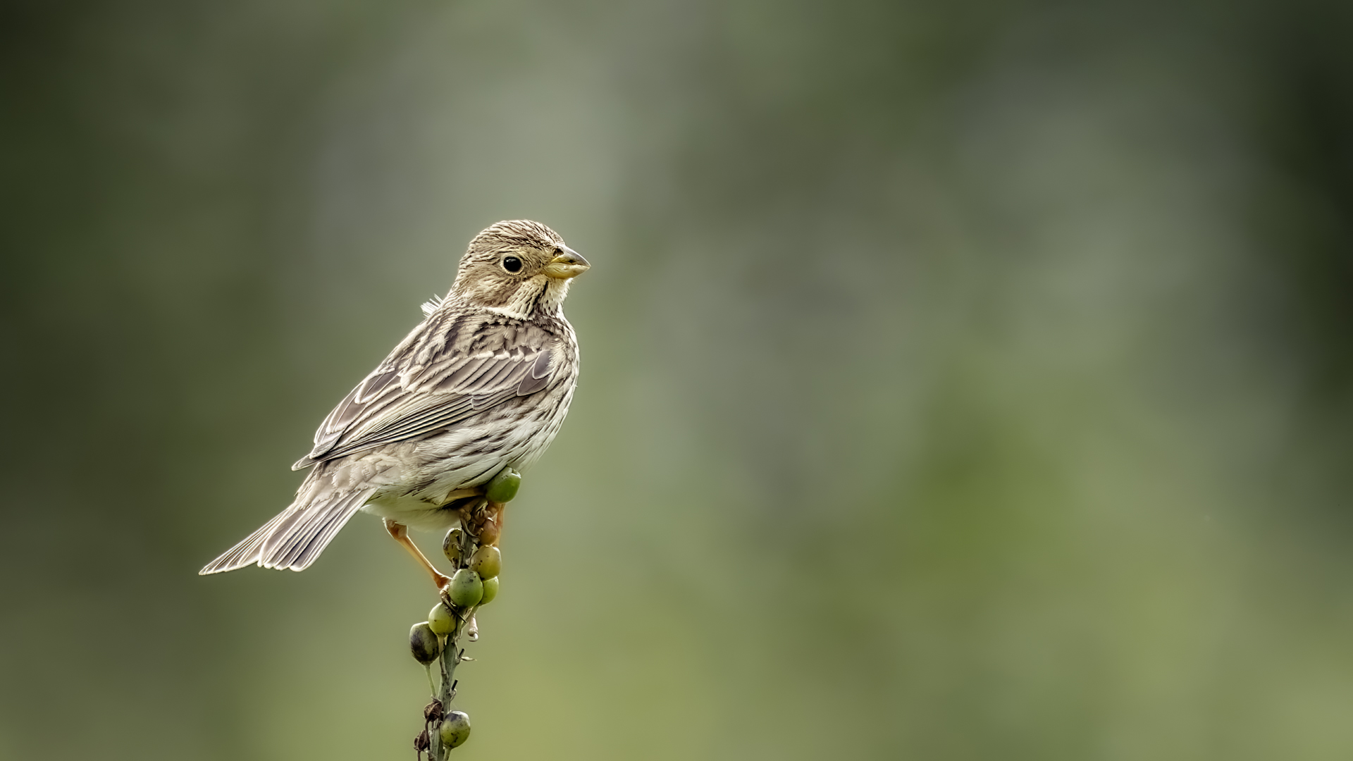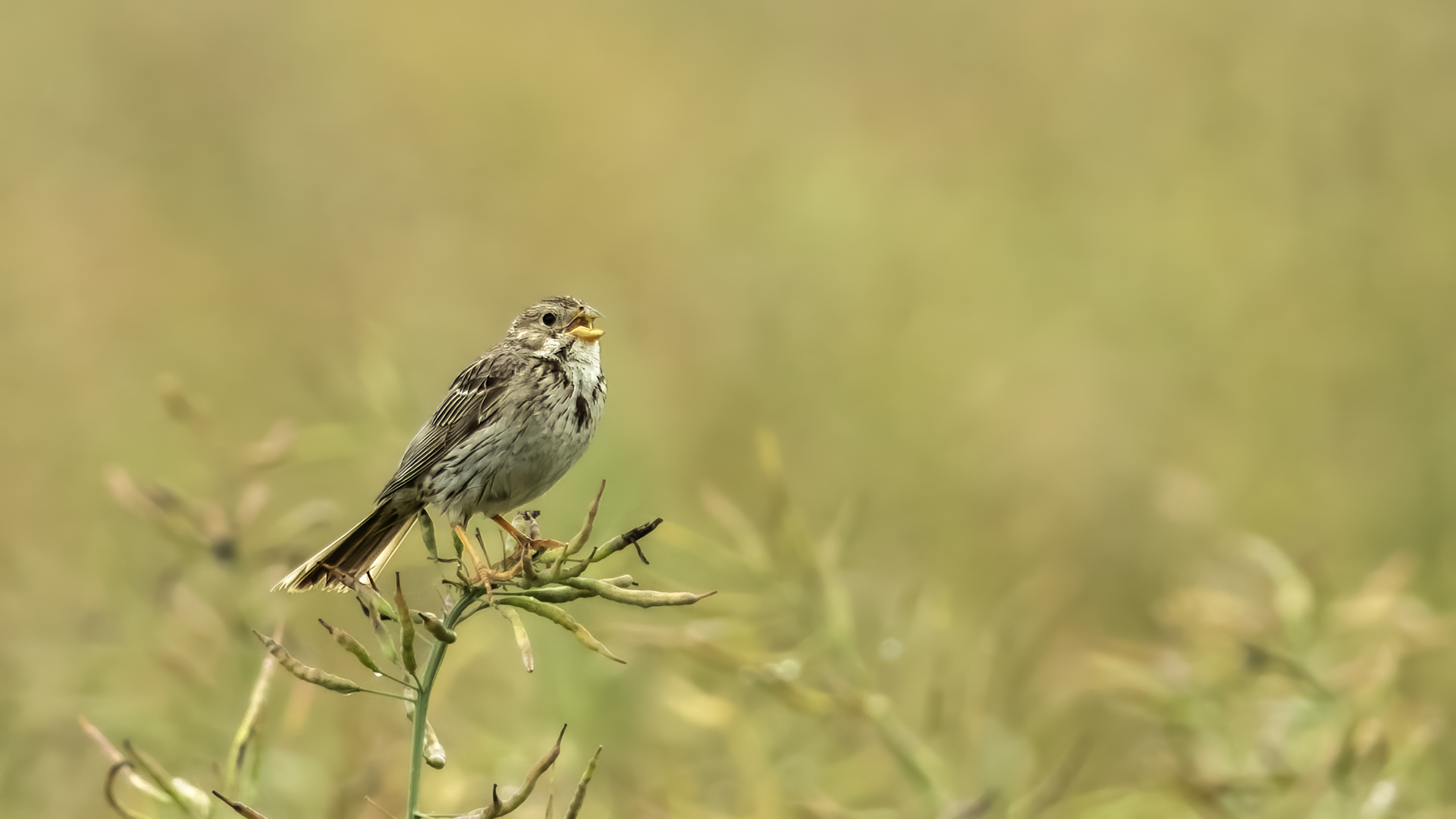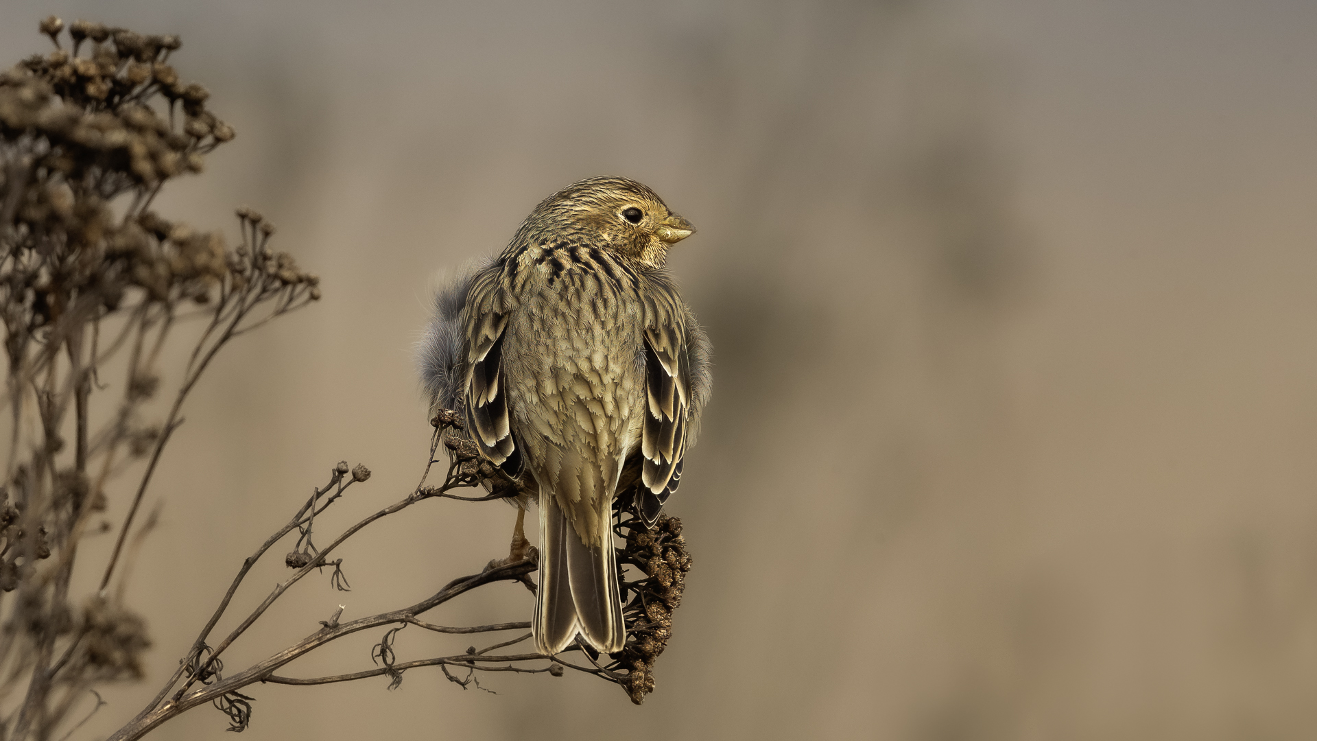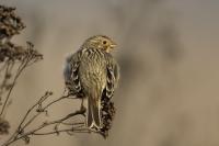 I had an occasion to watch a Corn Bunting on an open terrains and meadows. It sits on a branch of a bush or dried pigweed from which it observes the area. It is definitely larger than a Sparrow. Its body mass is around 50 grams with a wingspan of around 0.3 meter. I did not manage to spot it many times so the enlargement of the gallery will not be an easy matter. Or maybe, as it sometimes happen with nature photography, I will strike a point in space and time searching for some other species, which will allow me to make a session with a Corn Bunting instead of the bird I searched for. Time will tell, you need to keep on trying.