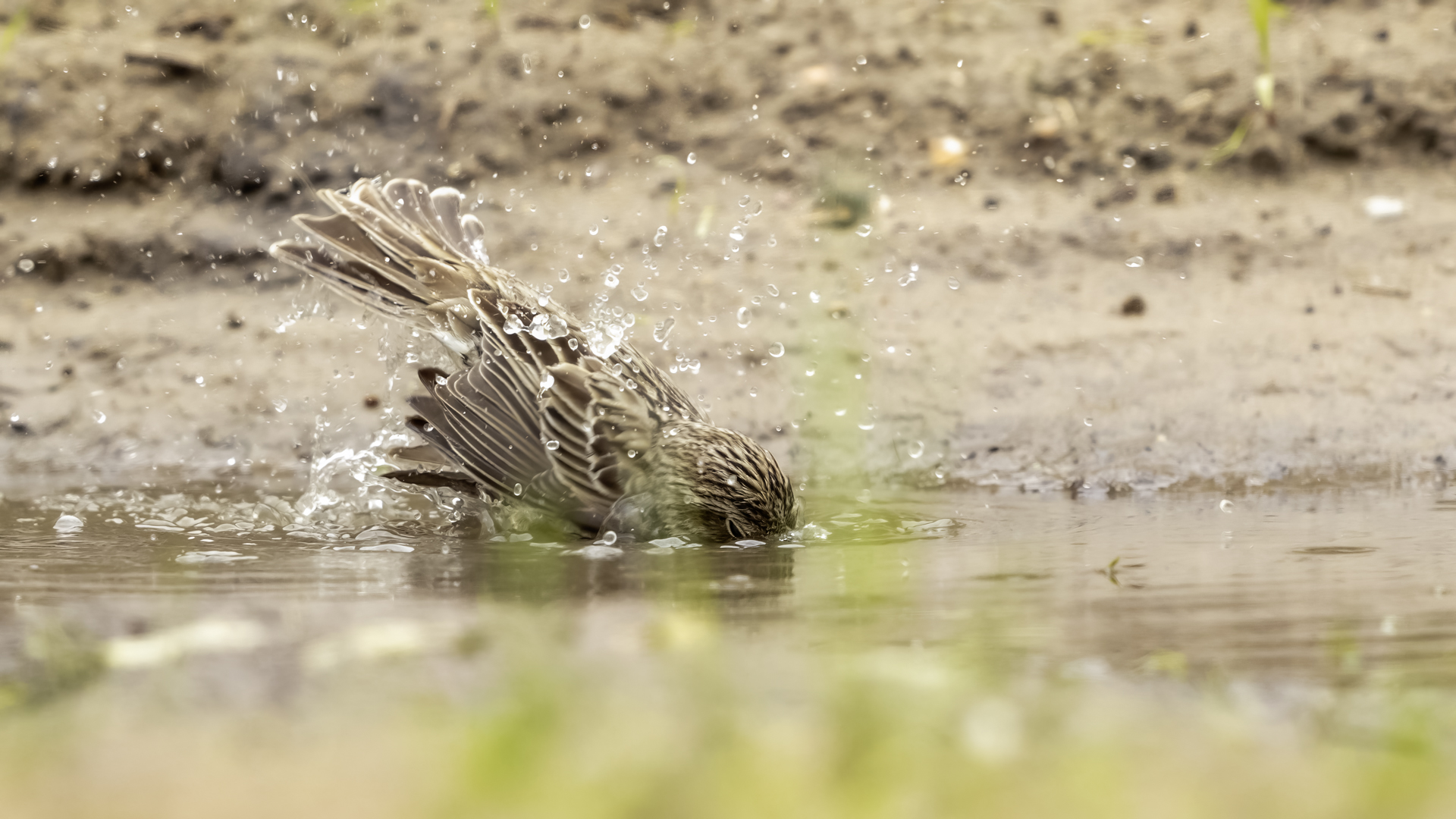 Lying down persistently and waiting for the Little Crake, the Spotted Crake, the Water Rail and Plovers, in the late afternoon, after several hours of waiting, I suddenly spotted Corn Buntings, White Wagtails and Western Yellow Wagtails. The majority of them were young. Although I had some other plans, I decided that a better thing to do would be observation and doing close-ups of these species rather than capturing an empty landscape or very distant, even more awaited species. White Wagtails and Western Yellow Wagtails, or, more specifically, their young accepted my camouflage to such an extent that one of them, feeding near the hide, moved to a place right in front of my lenses searching for food. It was literally within arm’s reach. Thus the galleries of Wagtails and Corn Buntings have changed, while I’m still waiting for the Spotted Crake and the Little Crake, which I finally didn’t manage to photograph. Well, at least this time...