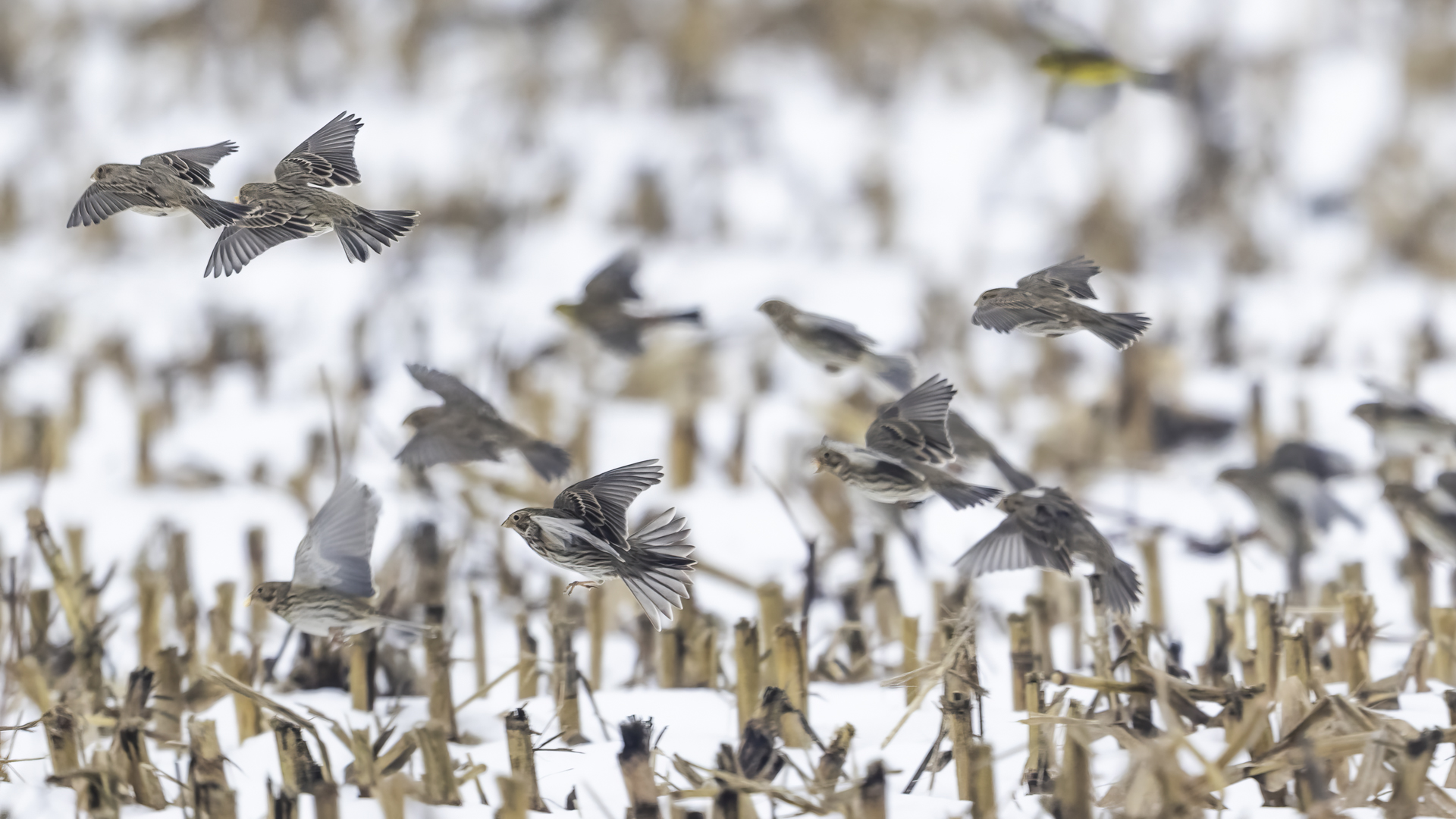 Oh, if it weren't for the sparrowhawk, there would be many better photos. The birds were very shy, taking flight every now and then. But my first pictures of Corn Bunting the winter scenery, and the sparrowhawk in flight, unfortunately against the sky.