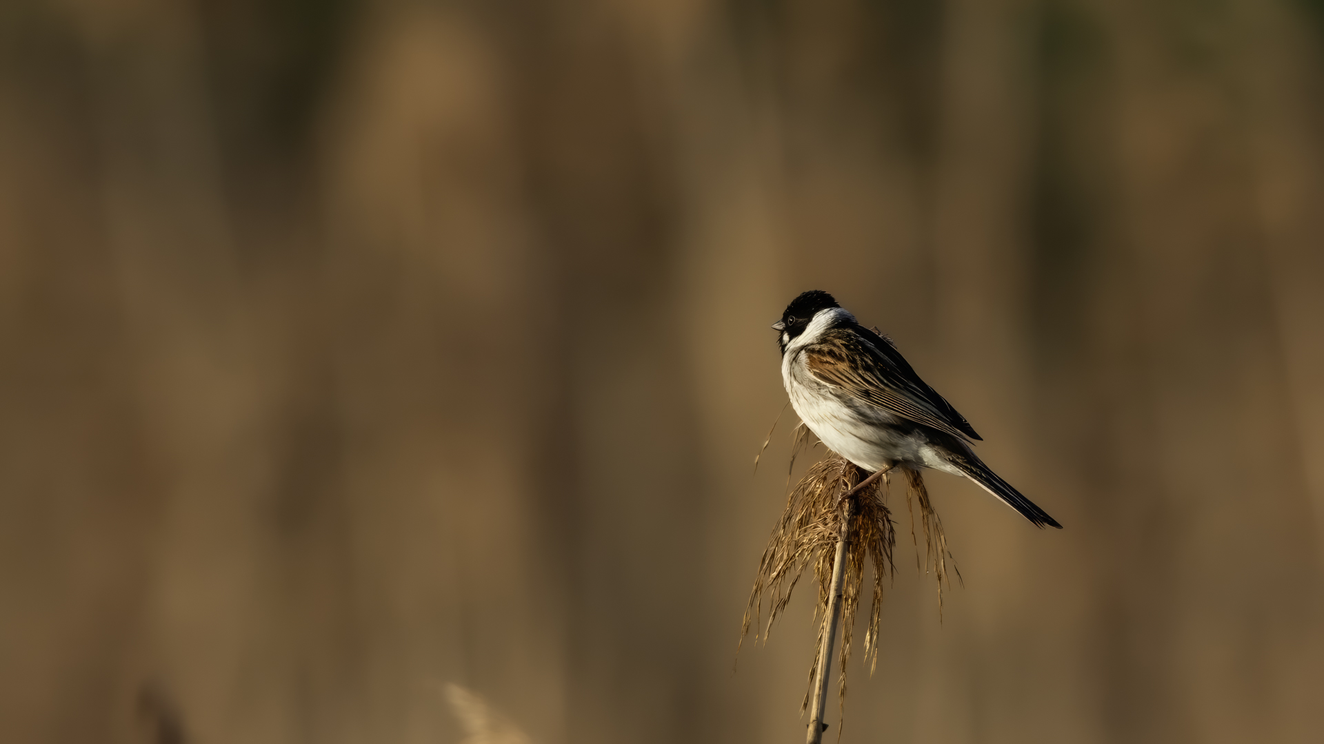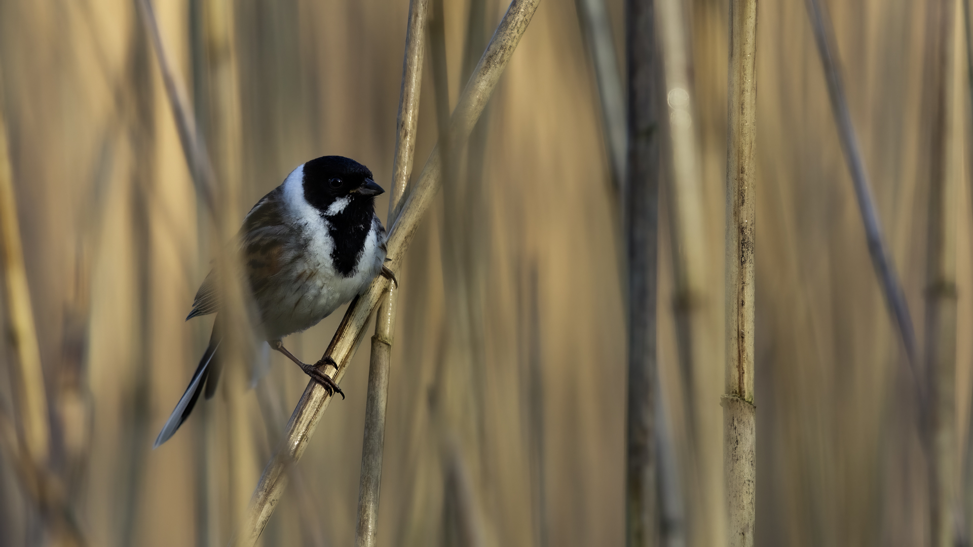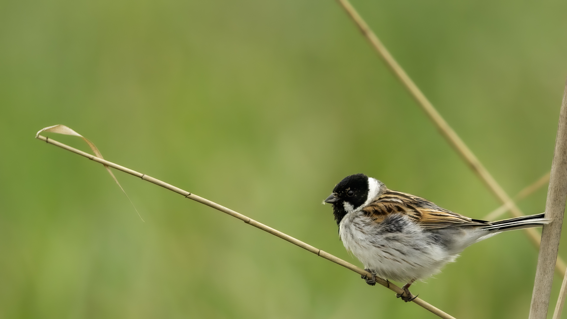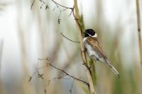I have managed to photograph a Reed Bunting twice in almost the same place, but in the following years. Once it was a male, once a female. They are very timid. On the occasion of the second session I was honestly masked and “hunting” for a Water Rail. Despite the fact that I was photographing it from a 6-7 meters distance, almost still, it looked at me for a while allowing to take couple of pictures before it flew away. Water Rail did not appear. It was a consolation and a reward for the effort put in for timing and prepraing the session. It is smaller that a Sparrow. Body mass is around 20 grams with a wingspan of around 25 centimeters.
