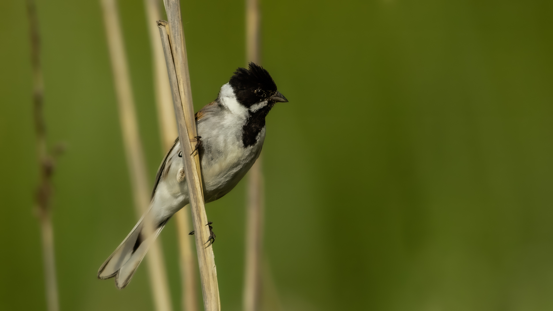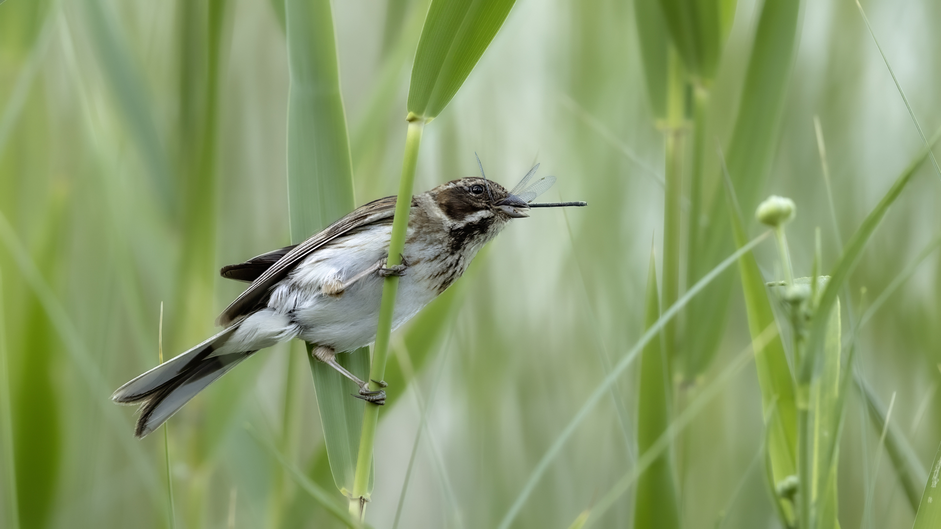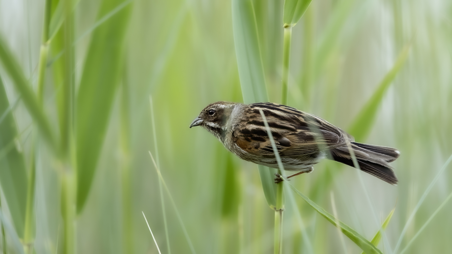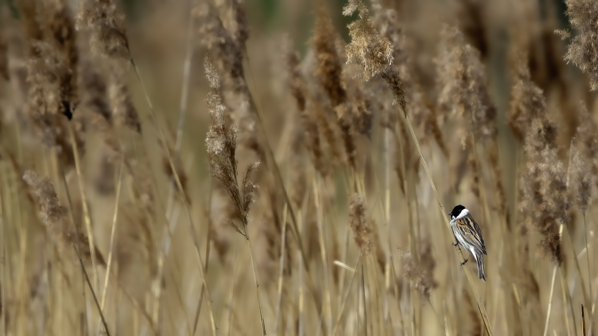 I have managed to photograph a Reed Bunting twice in almost the same place, but in the following years. Once it was a male, once a female. They are very timid. On the occasion of the second session I was honestly masked and “hunting” for a Water Rail. Despite the fact that I was photographing it from a 6-7 meters distance, almost still, it looked at me for a while allowing to take couple of pictures before it flew away. Water Rail did not appear. It was a consolation and a reward for the effort put in for timing and prepraing the session. It is smaller that a Sparrow. Body mass is around 20 grams with a wingspan of around 25 centimeters.