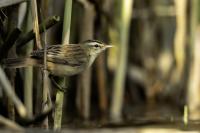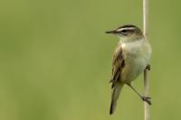 You have to keep trying on different locations, if you want to take photos of all the birds that occur in Poland. This time my choice was the common osier plantation (Sallix Viminalis) at the back of a large sewage plant in …, never mind. It is important that this time I managed to take a picture of two species. One is a sedge presented in this gallery, and the other is a warbler, which gallery is completed. It is a pity that from the beginning a small body of water with many shoal patches caught my attention, as my hope that several interesting species could appear there while passing was wrong. Whereas, the basin was used as a night shelter and just after sunrise all the birds left it. Looking around I noticed a "big waves" in the osier thickets. I decided to rotate the lens 180 degrees and managed to take the pictures easily. Sedge is very similar to the aquatic warbler famous for costly program for the protection. Sedge is a small migratory bird. Its wingspan is not more than 20 centimeters, and weighs about ten, a dozen grams. I wish I was able to record a singing sedge warbler, but cold September was not the right time for it. We will see if it is possible to complement this gallery with the sound recorded by myself, which is said to be very beautiful.