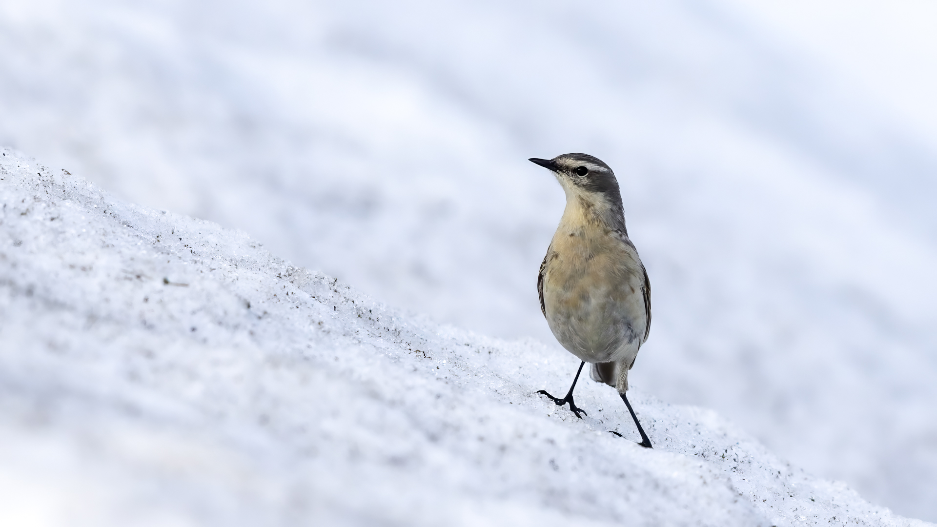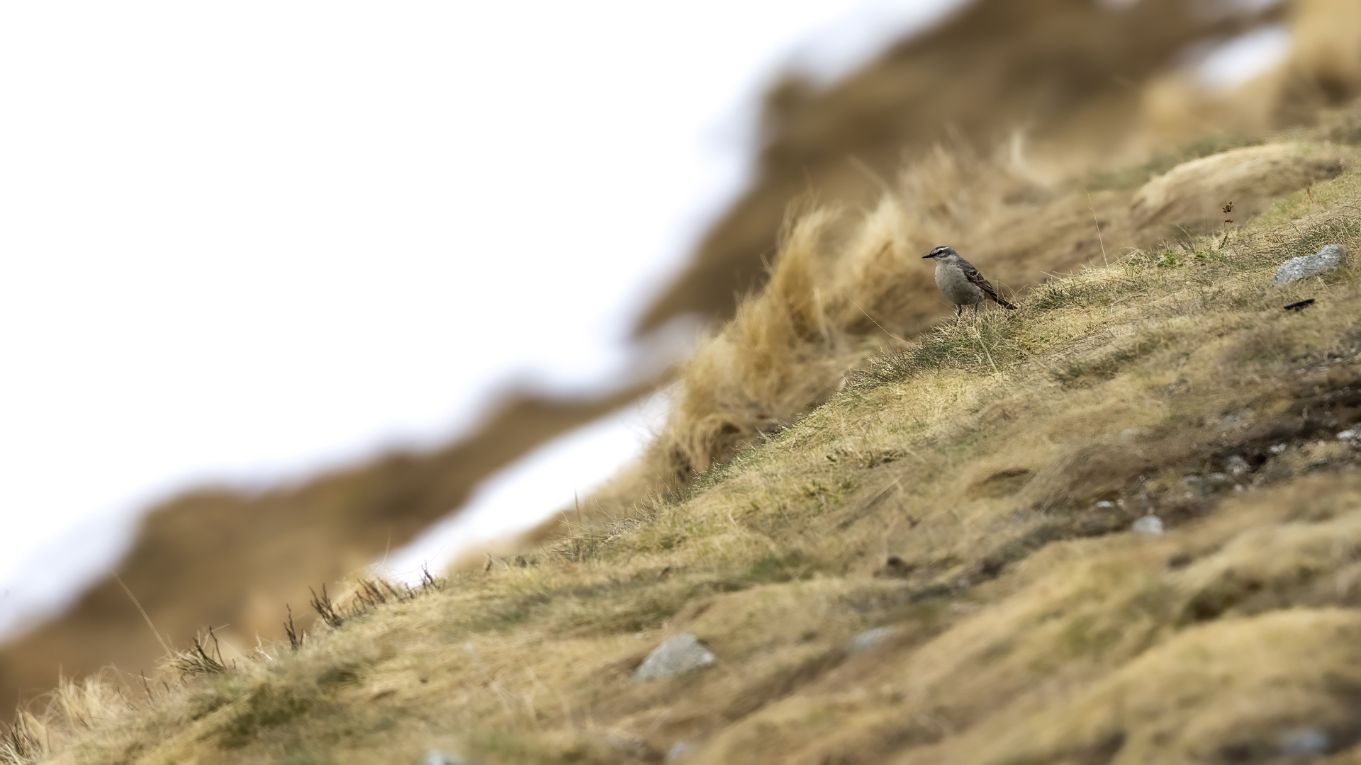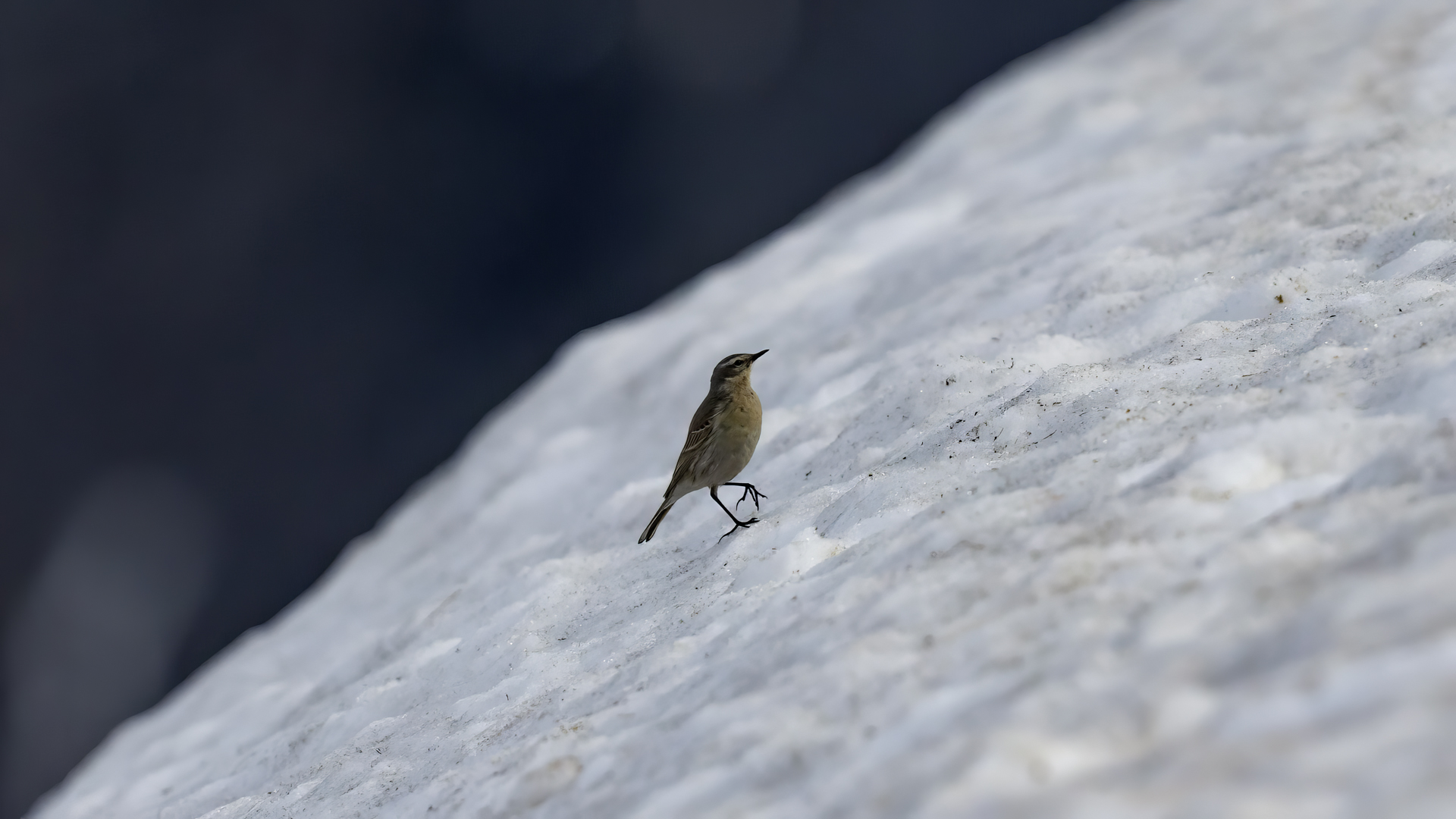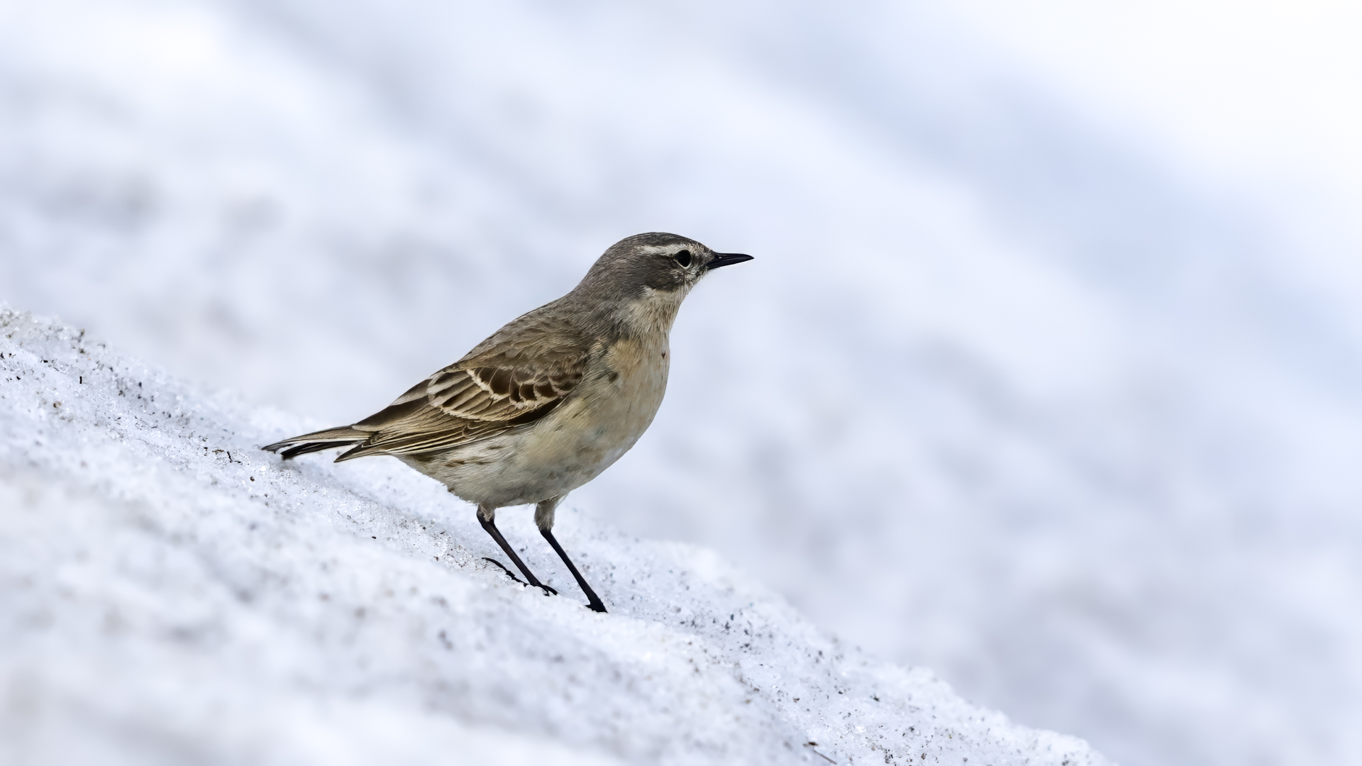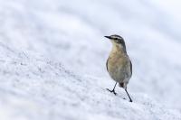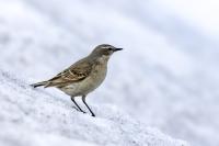 How to get to the place where the water pipit occurs it is written in the description of the alpine accentor gallery. Water pipits can be found only in the mountains above the 1200- 1500 meters, above tree line. In winter they migrate towards the lower parts of the mountains and to highlands. Water pipits were much more skittish than an alpine accentor. Fortunately there were a few individuals and when I went away from the cableway station, where dozens of people were always standing, I could take the presented photos. The birds were feeding in last-year grass and in the snow. They look like pipits to which they are related. Water pipit weight is about 25 grams and the wingspan is less than 30 centimeters.