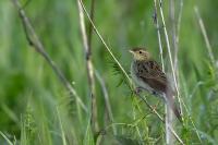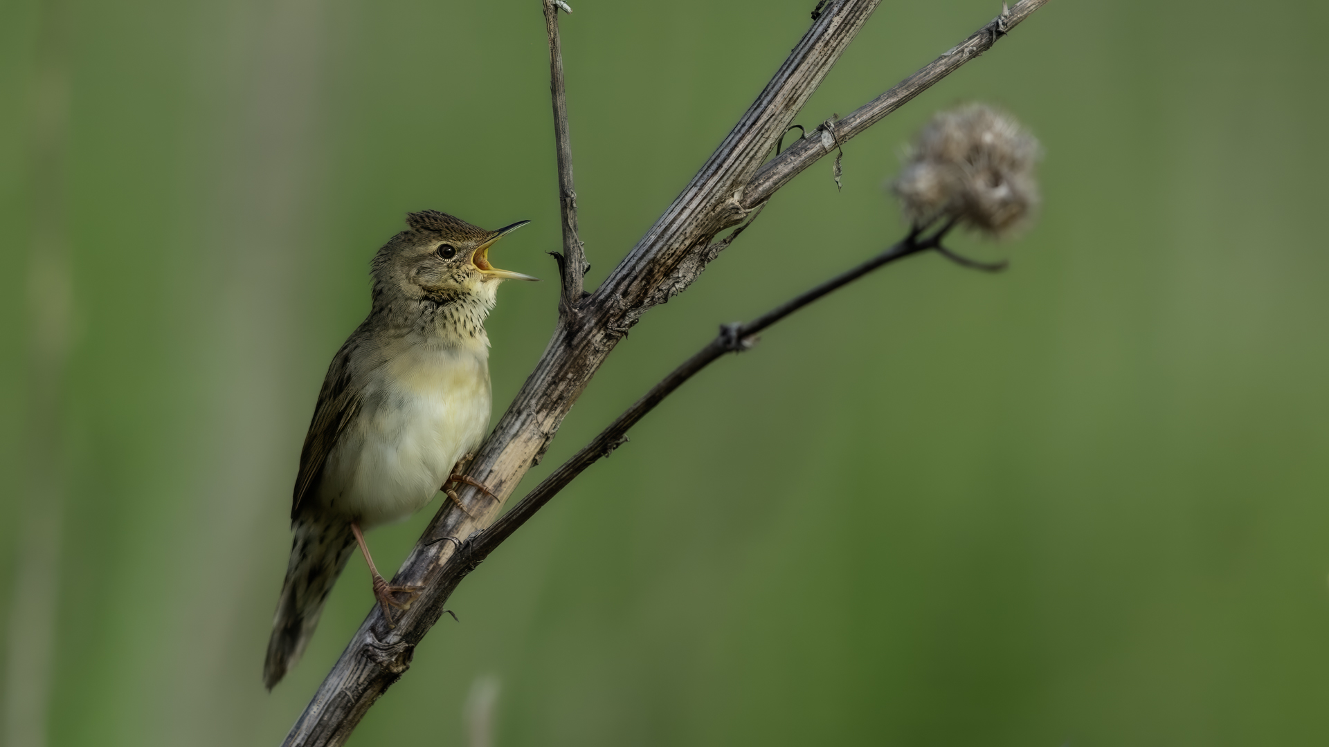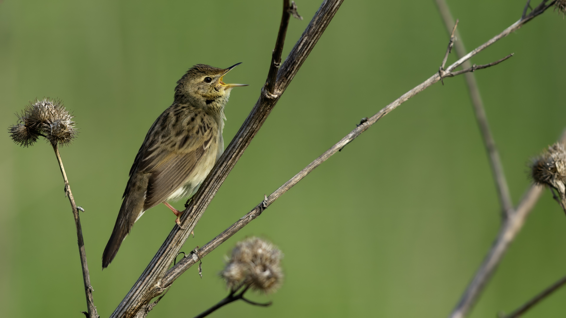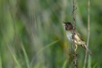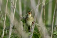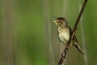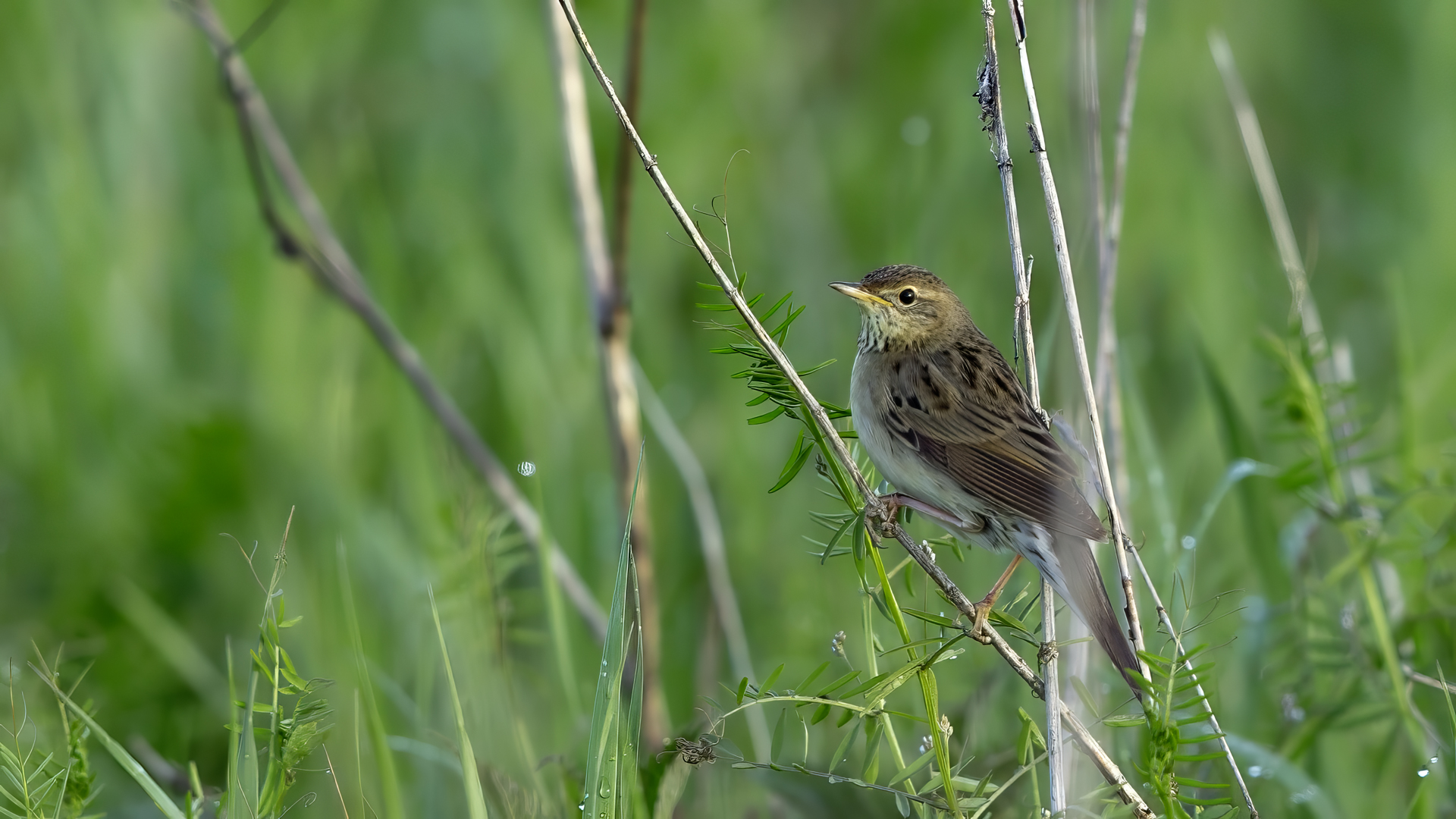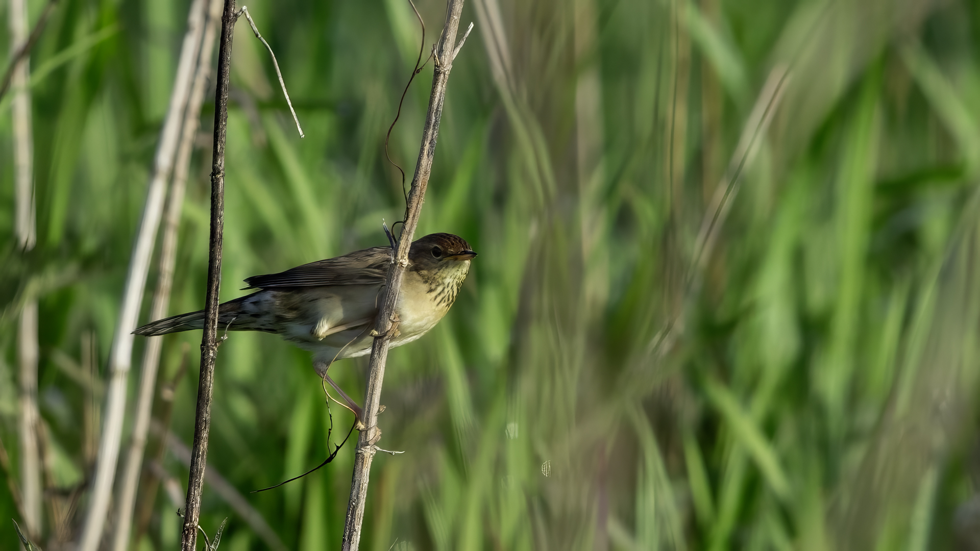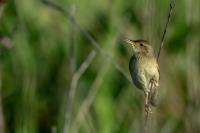 It was not easy to take the pictures shown here. The one things is that the Common Grasshopper Warbler is a rarity in Poland. The second thing is that it is inclined to wander around grass and I could barely spot it. However, I could it hear it from the distance. Fortunately, it left the tufts of grass from time to time and it was possible to take the photos. It was thanks to the European Stonechat that was eating nearby. Patience was needed, but in the anticipation of the Common Grasshopper Warbler leaving its hiding, I found time passing quickly and conversations about experiences in taking photos more interesting (greetings to Robert). The name of the Grasshopper Warbler comes from the sound it makes. Its song resembles the sound made by the Grasshoppers and is so loud that on that occasion I first recorded the voice and only later were the photos taken. It was not easy to record its sound on a wide meadow in the morning and not all background noises were removed from it. This, however, provides the sound background to the photographs shown here. There is no need to hide the sheer joy that follows from the successful photo session of such a rare bird. Not only do the pictures remain, but also there is a great number of them to choose from and there is a voice recording. The weight of the Common Grasshopper Warbler is about a dozen grams and its wingspan is about 20 centimeters. It builds the nests only on the ground. Feel invited to view the gallery and listen to this bird’s voice recording. This is a new species on my webpage.