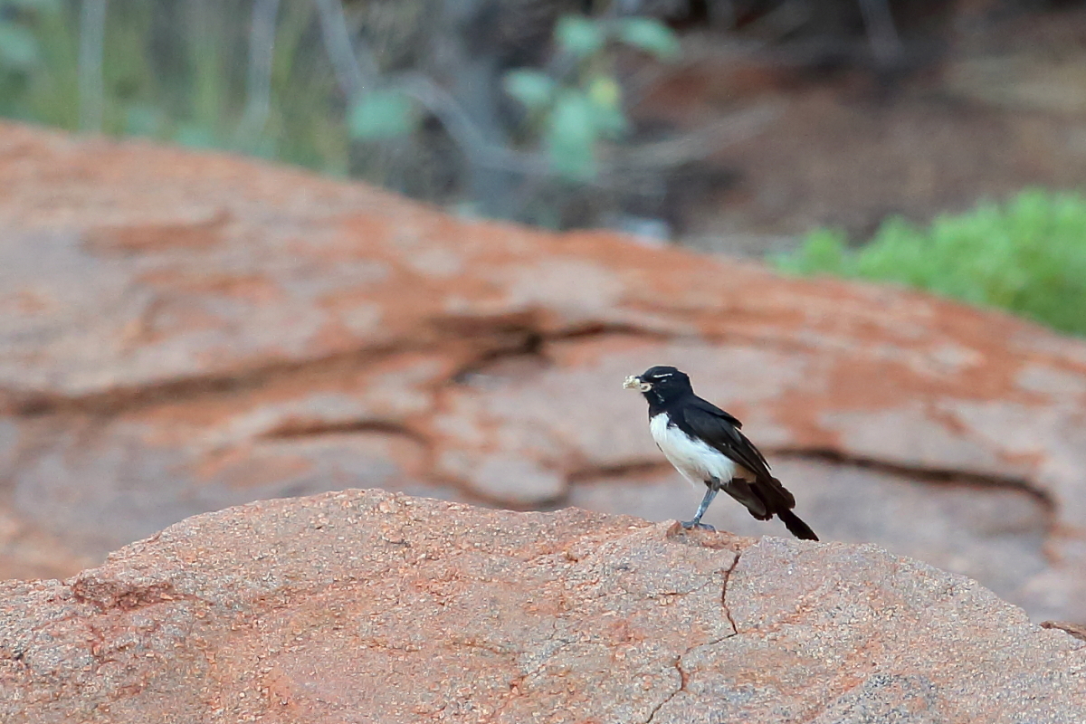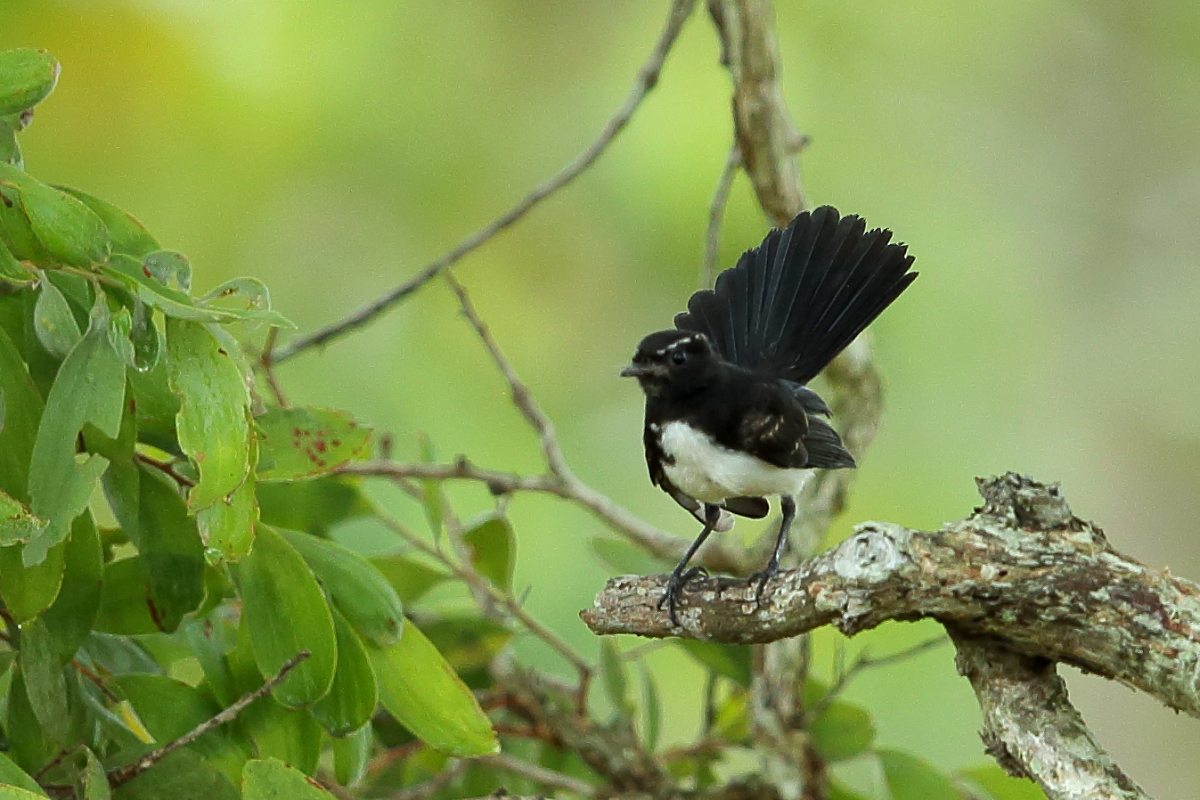 Initially I thought that it was a swallow. In a close-up however you can spot differences between these two birds. Despite the fact that willie wagtails are quite common in Australia, I didn’t see them too many times. The most interesting photos were taken on the periphery of wetlands, maybe due to the fact that they eat mainly insects. The willie wagtail measures about 20 centimeters and it’s a pity that I managed to capture its beautiful fan-shaped tail only in one picture.