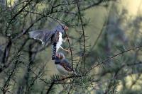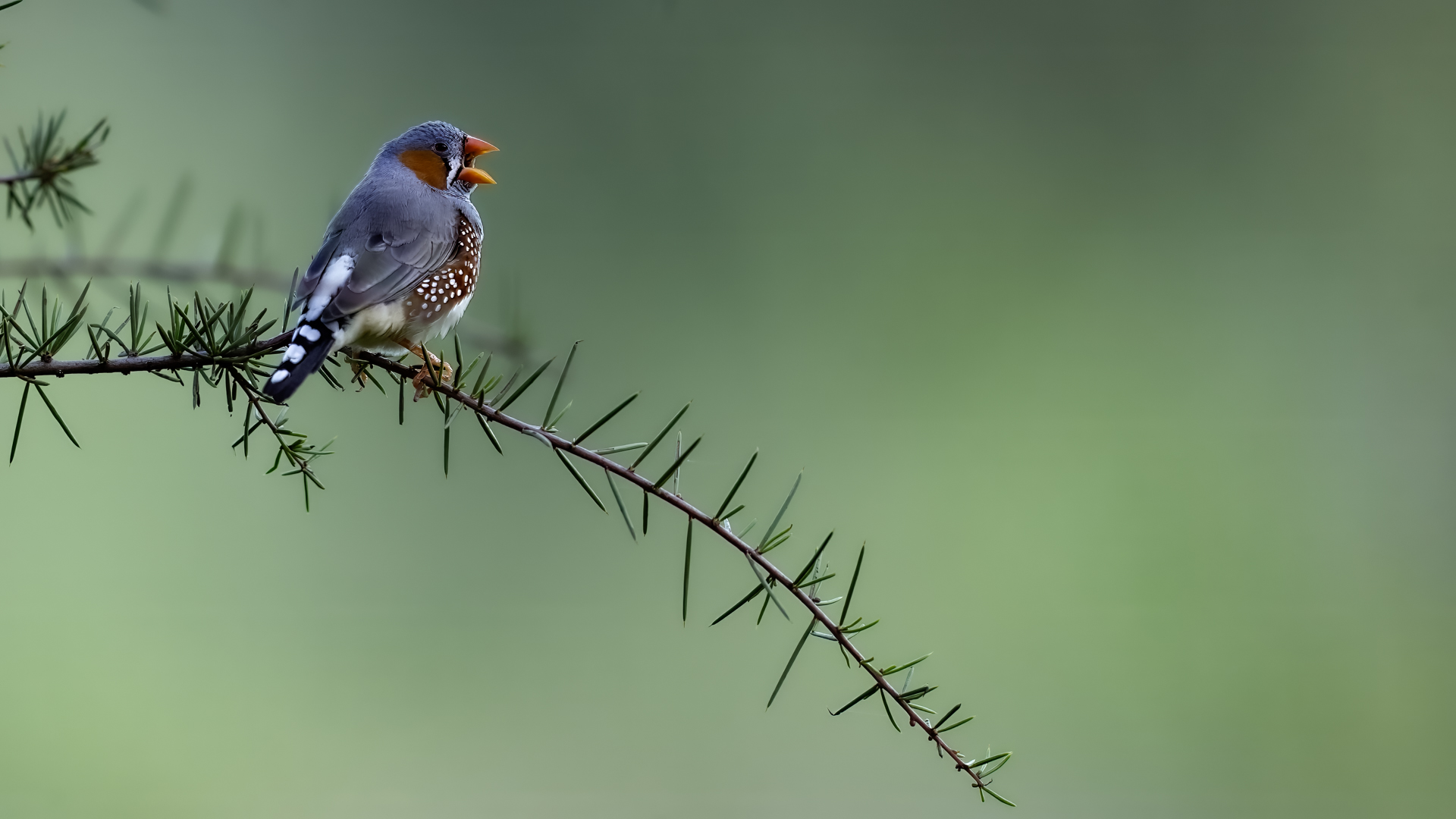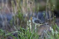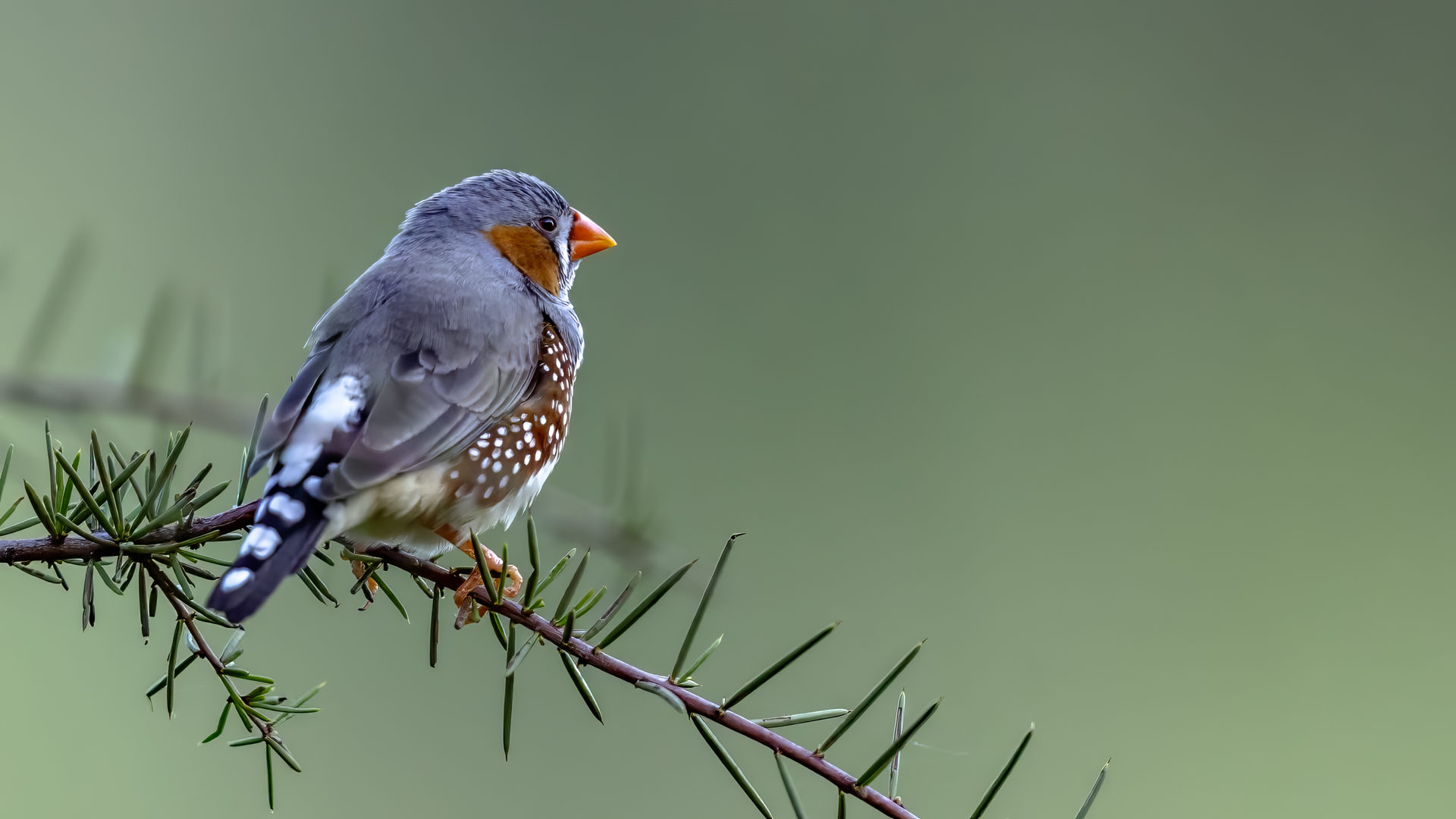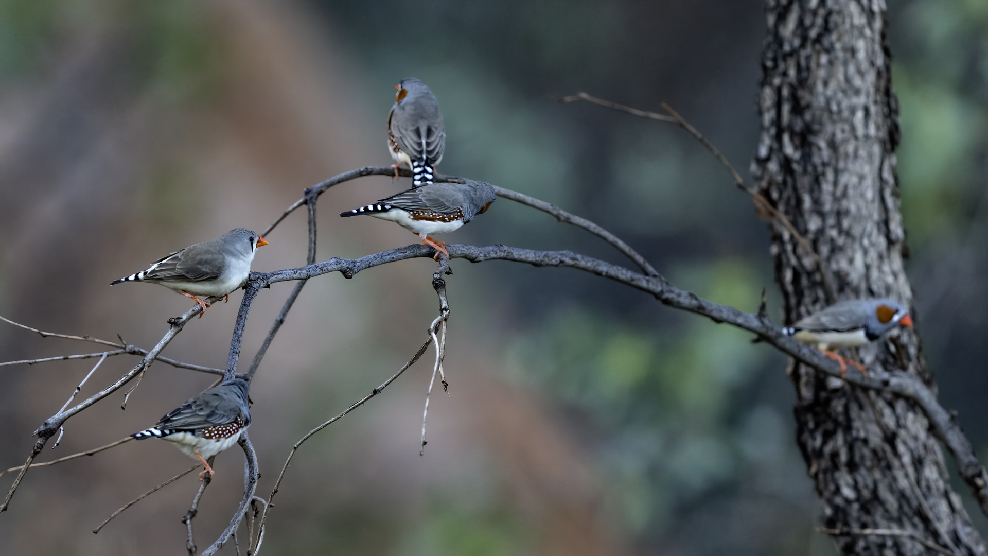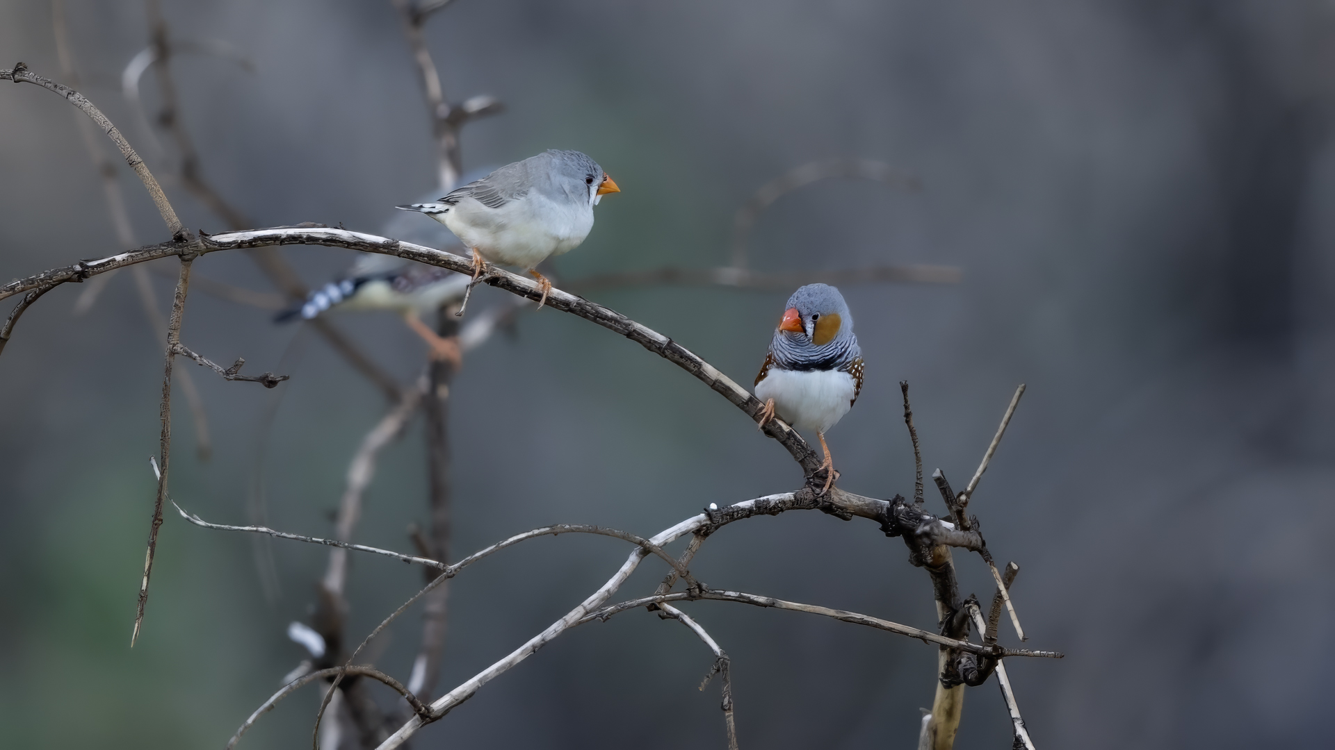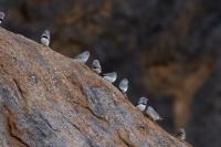 Presentation of this species brought back some associations and memories of budgerigars. Zebra finches, that I photographed in the heart of Australia in Uluru, are gregarious birds. Hundreds of kilometers of "rust" ground, scantily covered with grass and even more rarely with small trees is a natural environment not only of Zebra finch, but also of budgies. This bird is probably most commonly found among parrots bred in Poland. Once years ago, admiring the birds I built quite a large aviary near my house. I dug in the ground halved trunks of birch, hollowed out the trunks making holes on the top and hung nest boxes at the rear part of the holes. Aviary was a year-round and the birds accepted it so that during a few years there took place about 200 births. Those were mainly budgies but also cockatiels. Crimson Rosellas attempted to breed three times unsuccessfully. Of course leaving for Australia I wanted to watch them in their natural environment, but I had to be content with the environment itself. Much more time and a guide would be needed to find them in that immeasurable space in the heart of Australia. Budgerigars are found, except the coast, virtually throughout the whole of ​​Australia. Local people in Uluru asked about this species claimed that yes, they were there - everywhere, on endless territory. Well budgerigars were not those that was to be admired by me in their natural environment. But even though it was not planned I several times had the chance to take photos of flock of zebra finches, which landed on the characteristic red rocks of Uluru. Zebra finches were flying in a flock of 20-30 birds and presented images are the results of those moments when nobody disturbed us for a few minutes (no other tourists within 15-20 meters, what did not happen very often). Zebra finches at first sat on a bush or rock watching the area for a while, then flew down to low-lying grass or to the ground and started feeding. And again I encountered the specificity of shooting in Australia. Of course without any camouflage, coming up calmly I could take their pictures from a distance of 7-9. But there were two difficulties we had to take into account. One thing was that this was quite a lively flock of birds. If they sat on the bush, especially when foraging for food in the morning, it did not take much time. So coming closer cannot be too rapid, but being too slow would cause they fly away or down to the ground where shooting would be much more difficult. The second nuisance in the area were medium-size flies. They were actually numerous and made me concentrate on shooting hardly possible. They almost covered me and there was no way to get rid of them. To sum up, I managed to take pictures for the gallery of this colorful bird in the heart of Australia, just like several other species but not in such an impressive quantity. Recording the voice would not be a problem but unfortunately I had no more time left. Taking possibly large number of images was more important to me, as Zebra finch’s voice can be heard in many places in Poland.