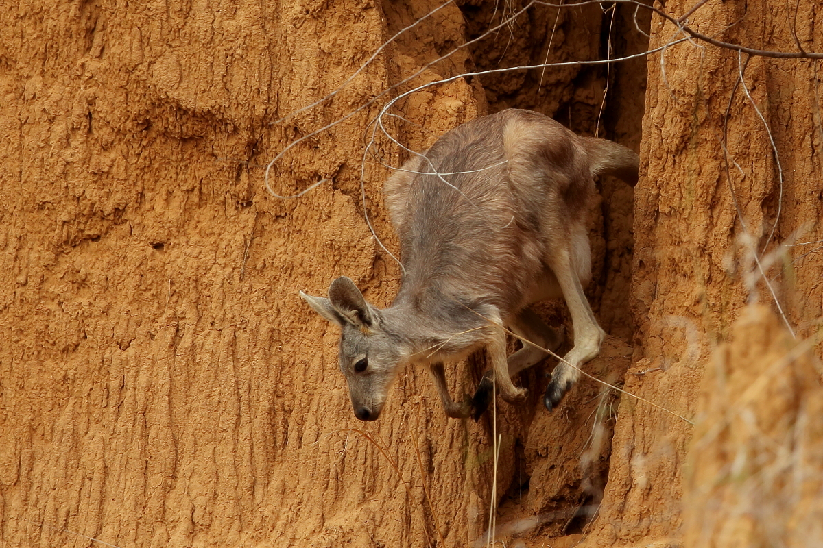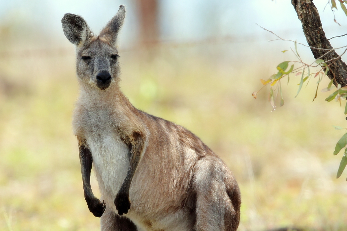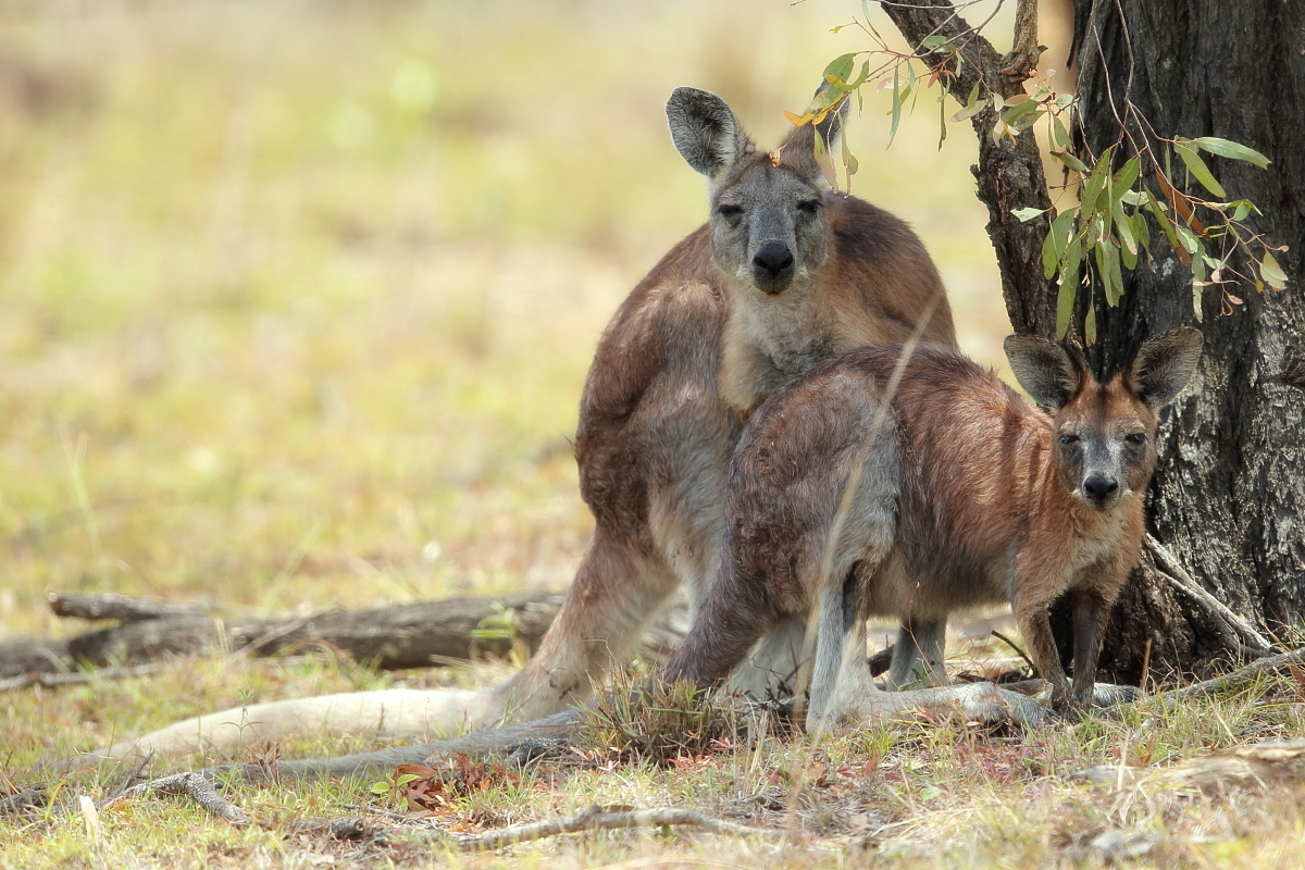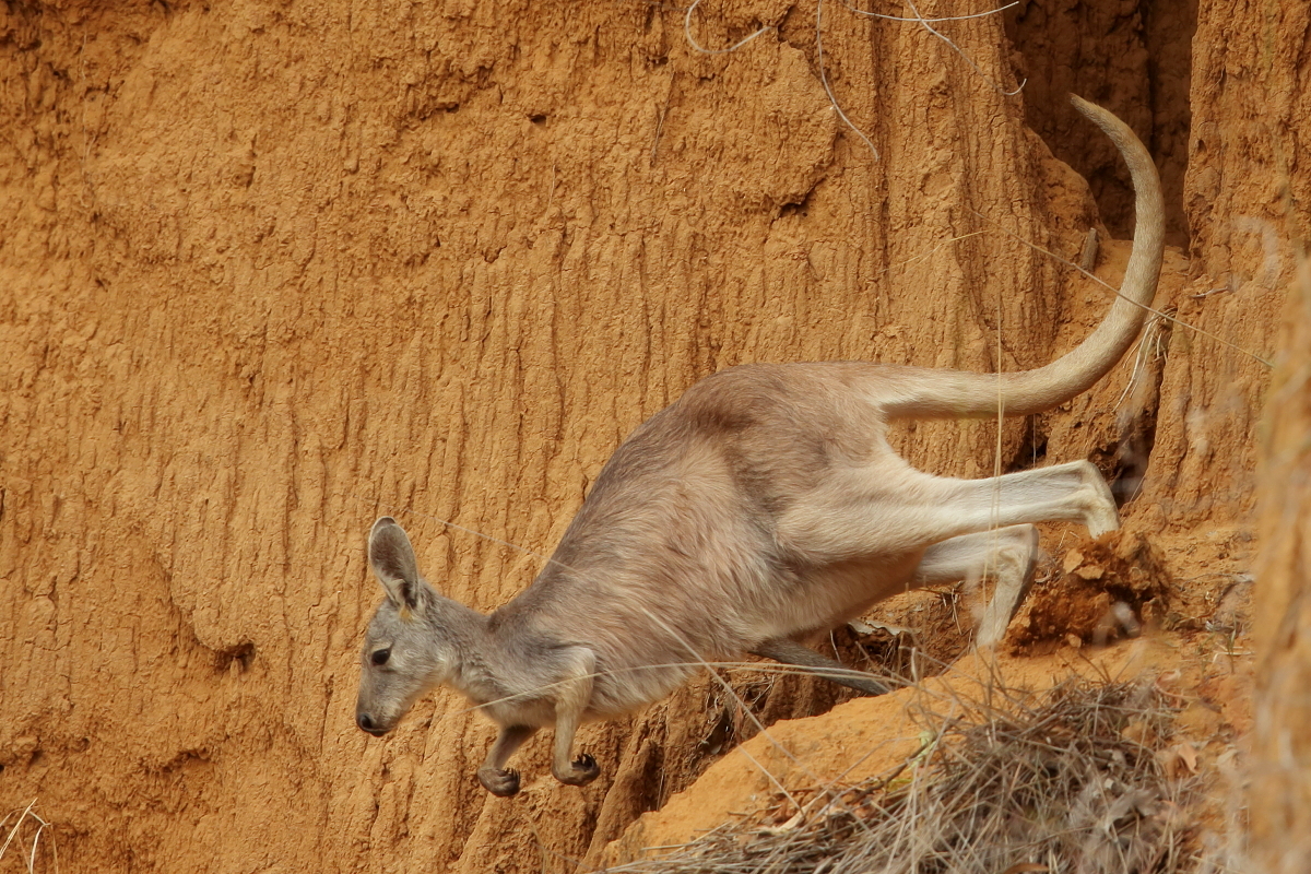 Do not return from Australia without seeing a kangaroo. Meeting them was not a problem for me when I was in the bush. Quite a few times, they happened to sit under the shadow of a tree, hiding there until the evening when it was usually cooler. It was then easy to take a few pictures. The other day, encouraged by the sound of the engine, they stood erect, looking at a car passing by. Once, having been driving for almost one hour and having not seen any animal at all, we found the sight we suddenly caught of a group of about six kangaroos blocking our way absolutely exhilarating. We had no other option but to stop the car. We did not take any photographs on that occasion. Fortunately, that was not our last encounter with these animals. On hot days, the kangaroos usually started withdrawing slowly, after we had taken a few photos. They negotiated all kinds of obstacles that blocked their way, jumping over them (up to 9 meters!). Indeed, their jumping ability was amazing. Whenever they wanted to retreat quickly, it took them just a few seconds to disappear in the bush. Now, my gallery features a photo of kangaroo that I took during my bird photo workshop. While I was working on the photos,  it turned out I actually photographed two different species of kangaroo and two species of  wallaby. The second picture presents the common wallaroo. Coming to the eastern grey kangaroo, its name reflects its actual size, as it is up to 2 meters long and weighs up to 90 kilograms. It inhabits the entire area of the eastern Australia. Kangaroo mothers look after their young for a long period of time. Pregnancy lasts about thirty three days. After the young kangaroo is born, it spends ten months in the pouch. When it emerges from the pouch, it is fed with milk for the next nine months. The full reproduction cycle takes almost two years. There is over a dozen of species. I am glad that I had an opportunity to photograph several of them. After all, the kangaroo (alongside koala) is one of the symbols of Australia. Unfortunately, the gallery does not present any photo of the koala, because I had too little time for these animals. However, I am looking forward to returning to Australia and getting another opportunity to photograph not only koalas, but also budgerigars.