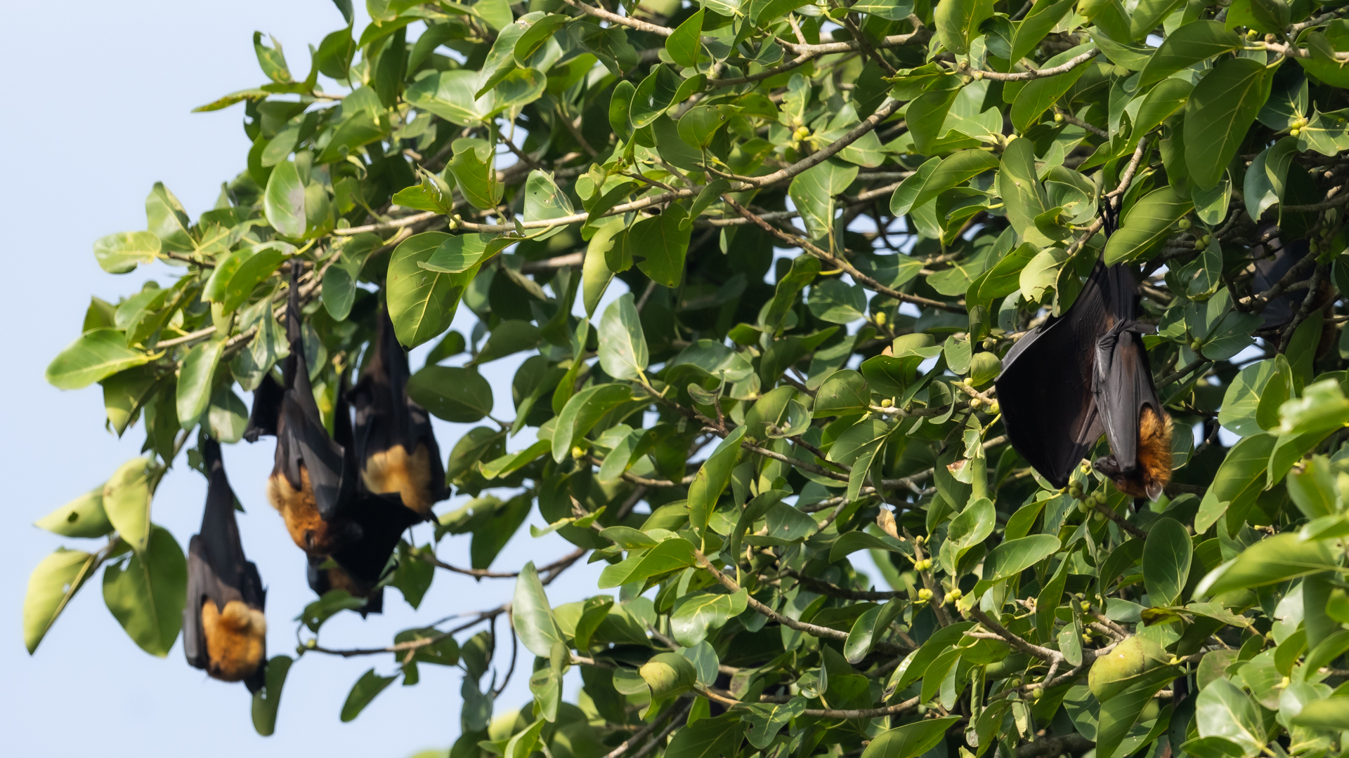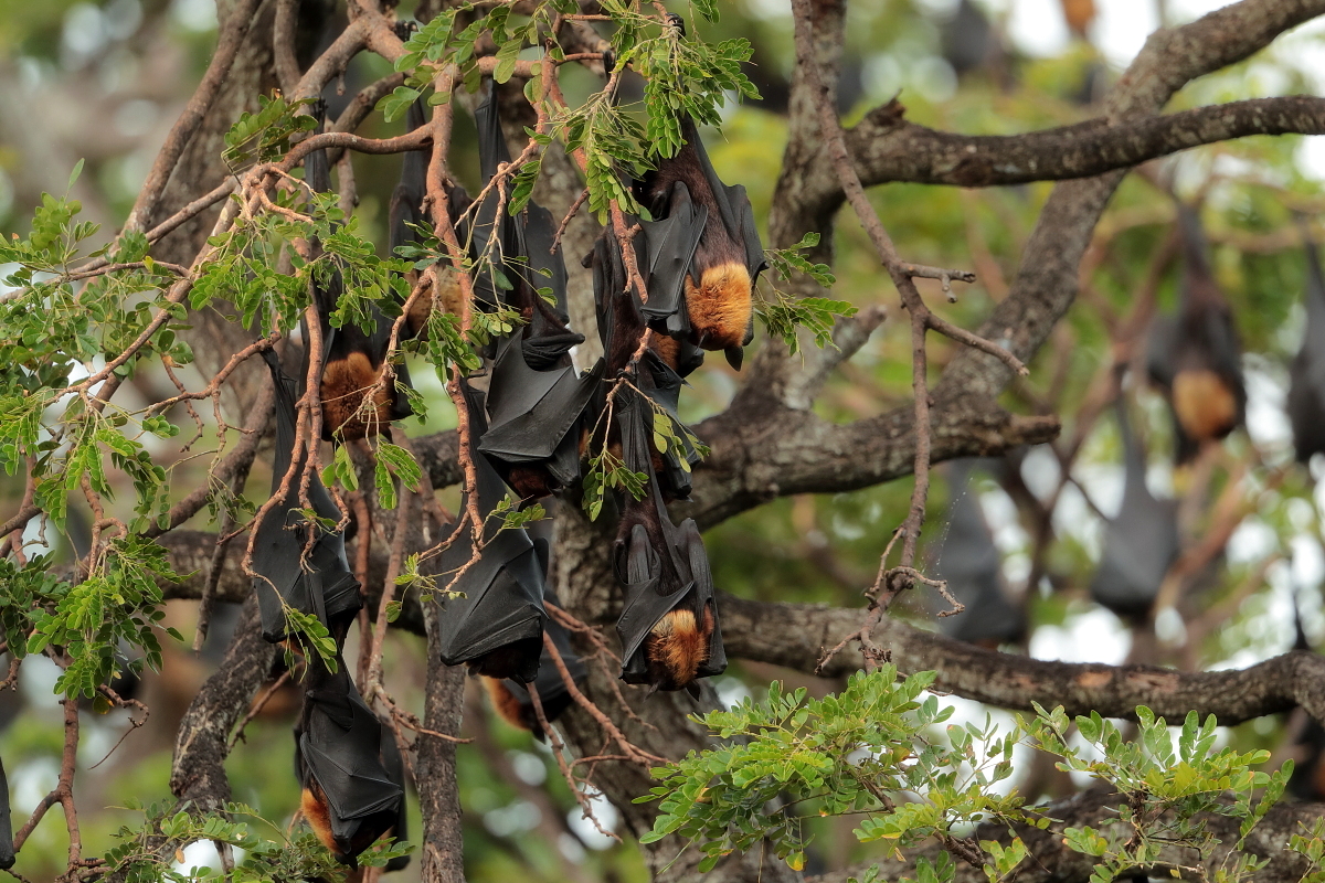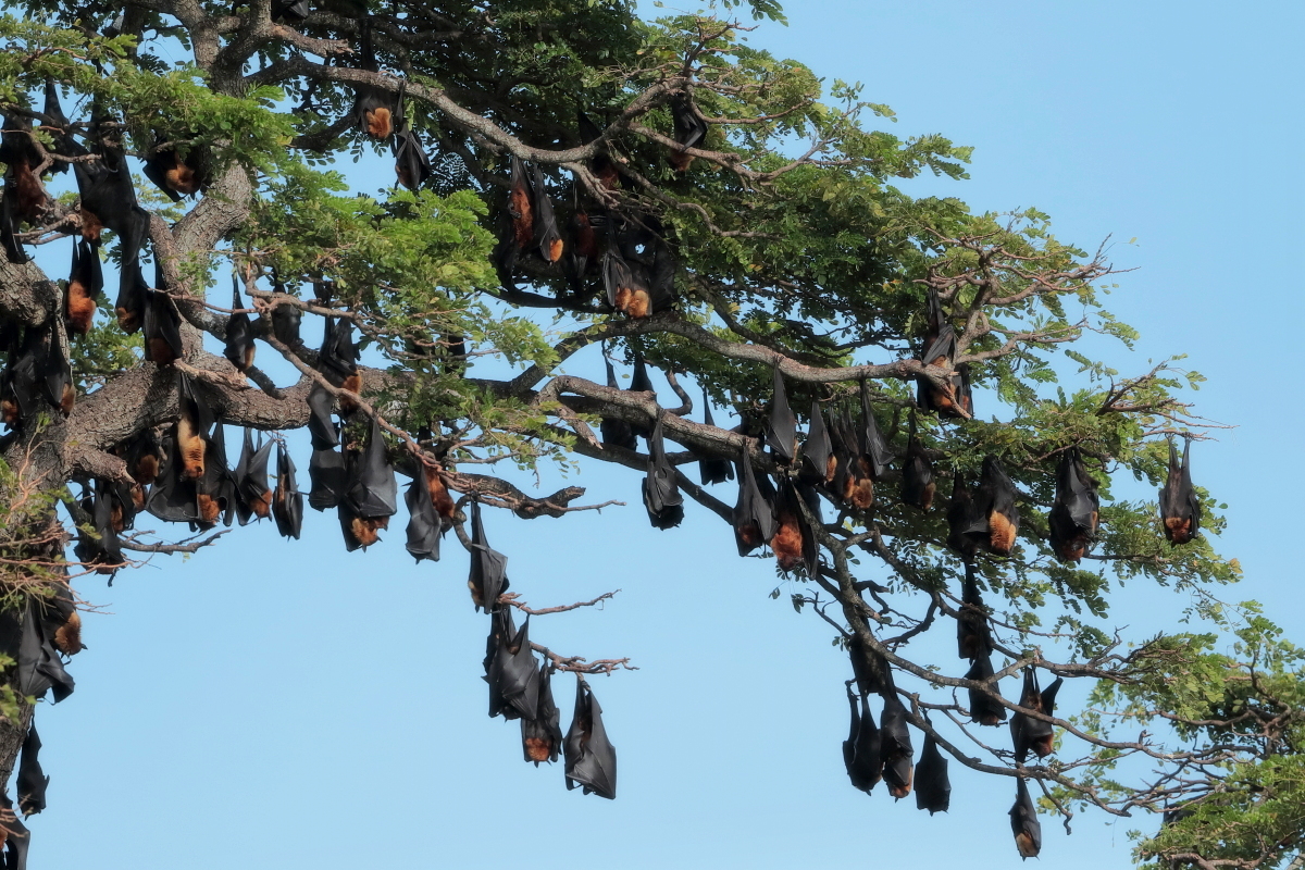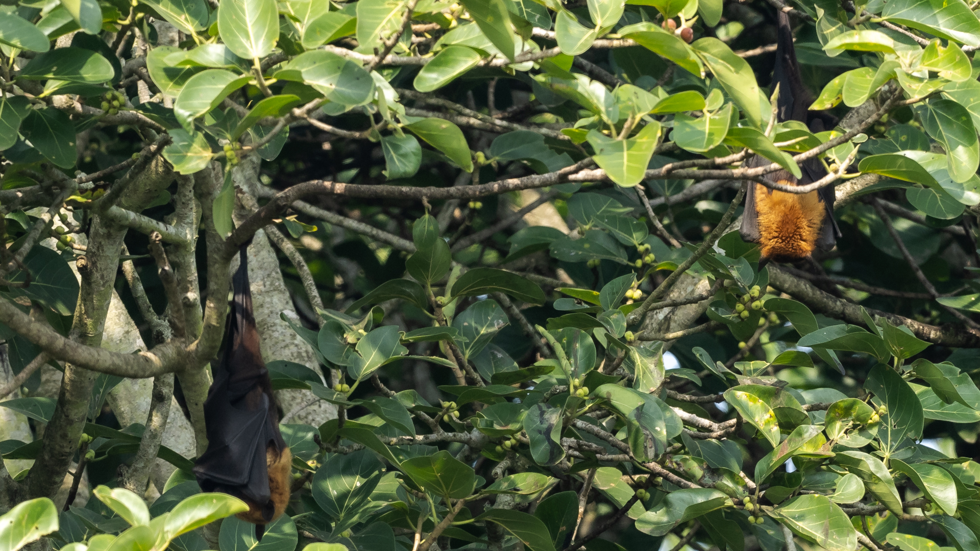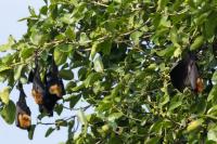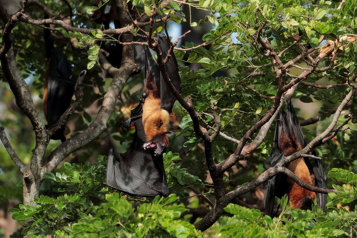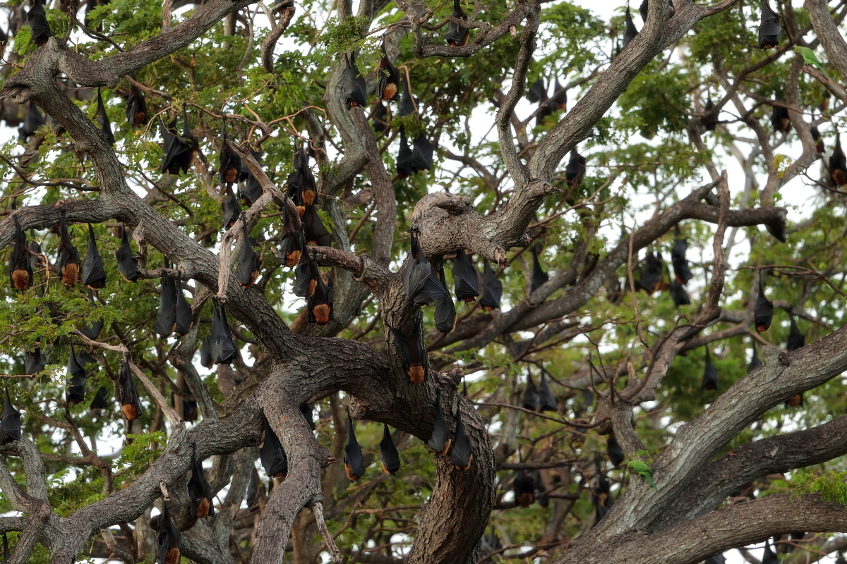 Now, I have the first gallery that presents the world upside down. I took photos of the Indian flying fox in the Townsville park. They appeared in a small group and were behaving quietly and calmly. It is the first flying mammal that has been included in my gallery. At first sight it seems to be a gentle creature; it only appears menacing when it shows off its teeth. The teeth make the bat resemble a fox. It mainly feeds on fruit and is active during the day.