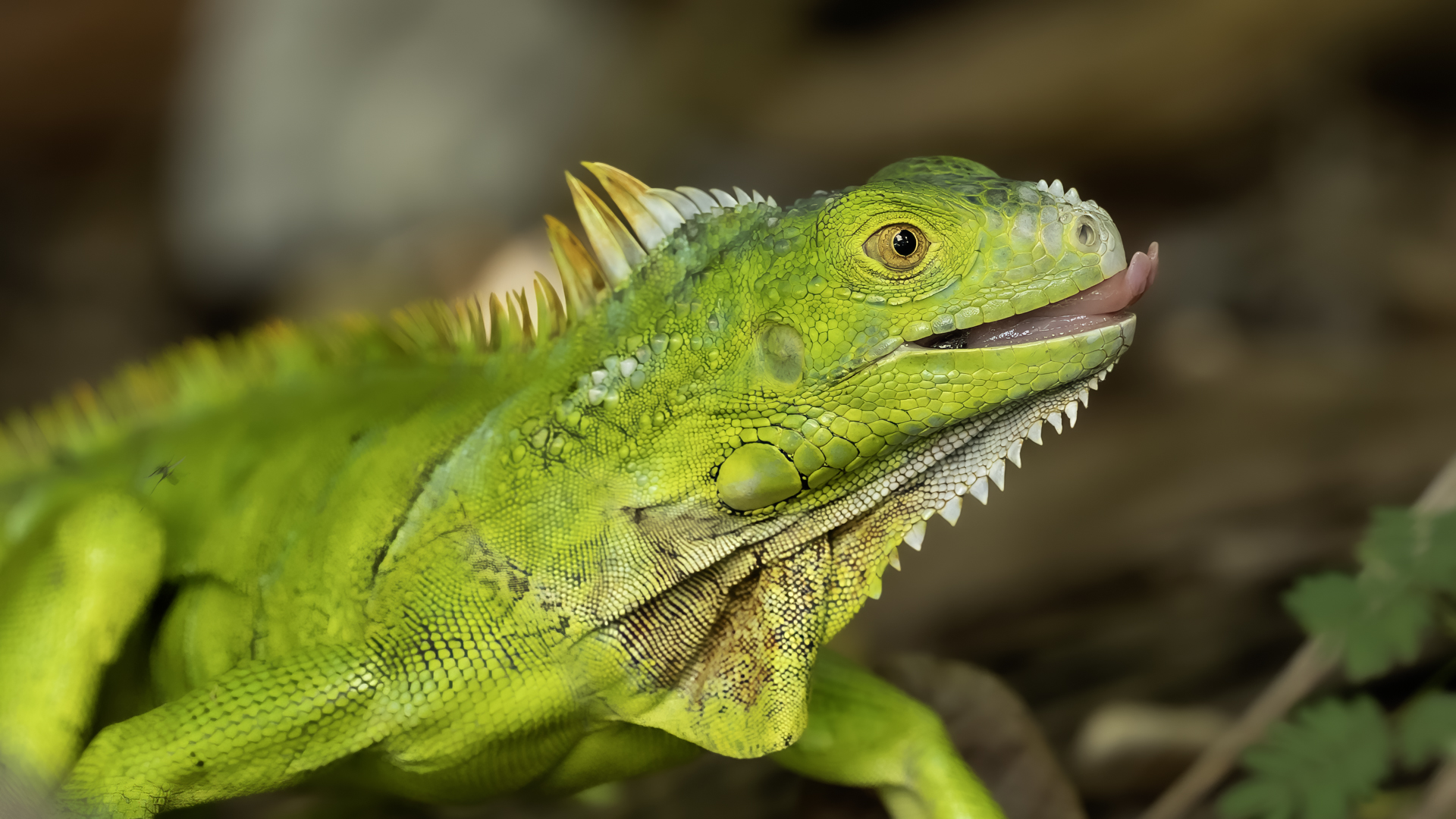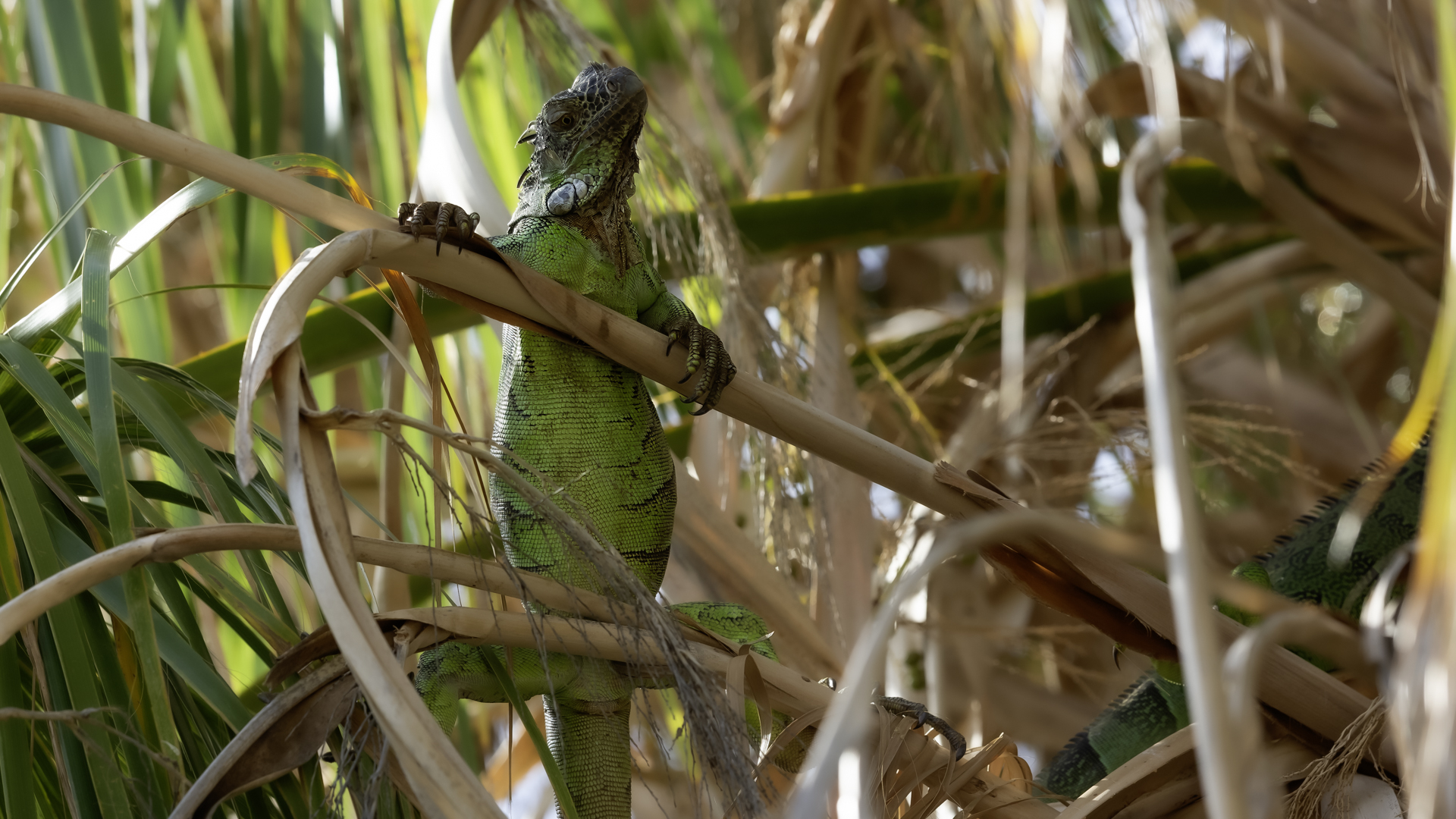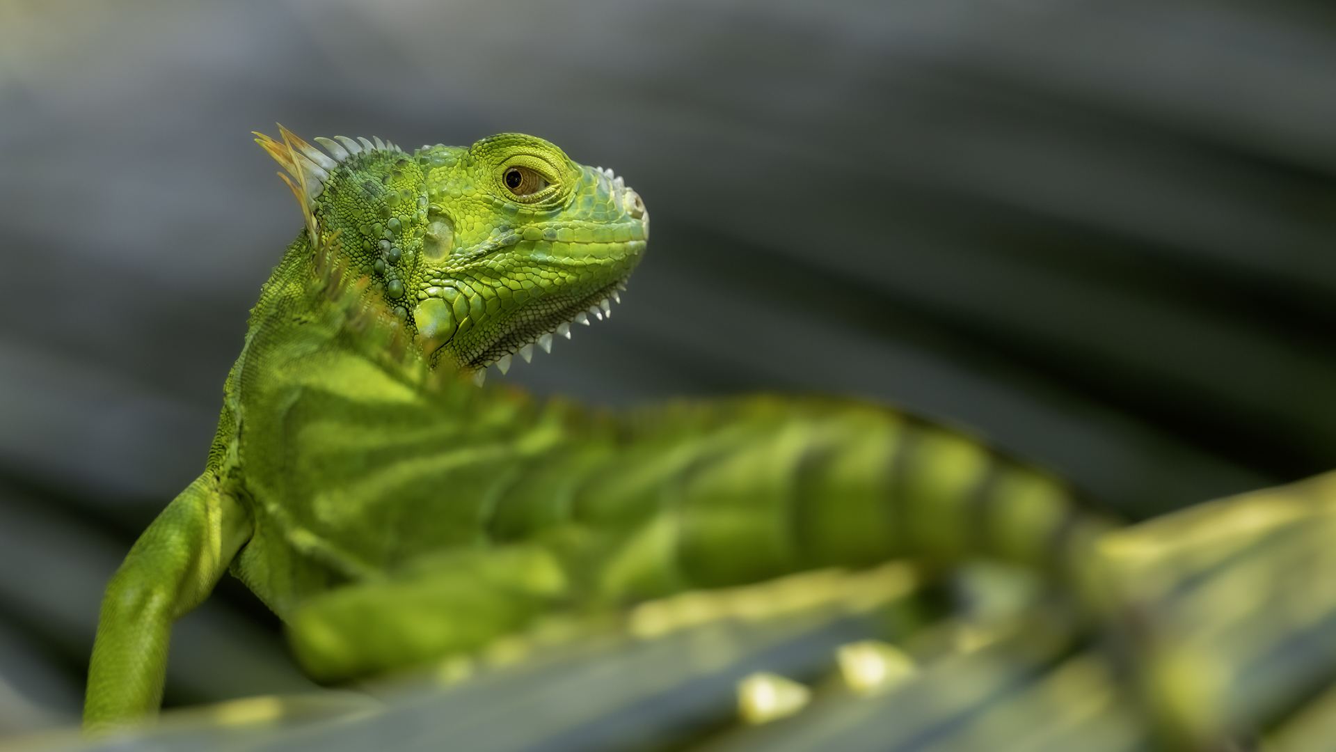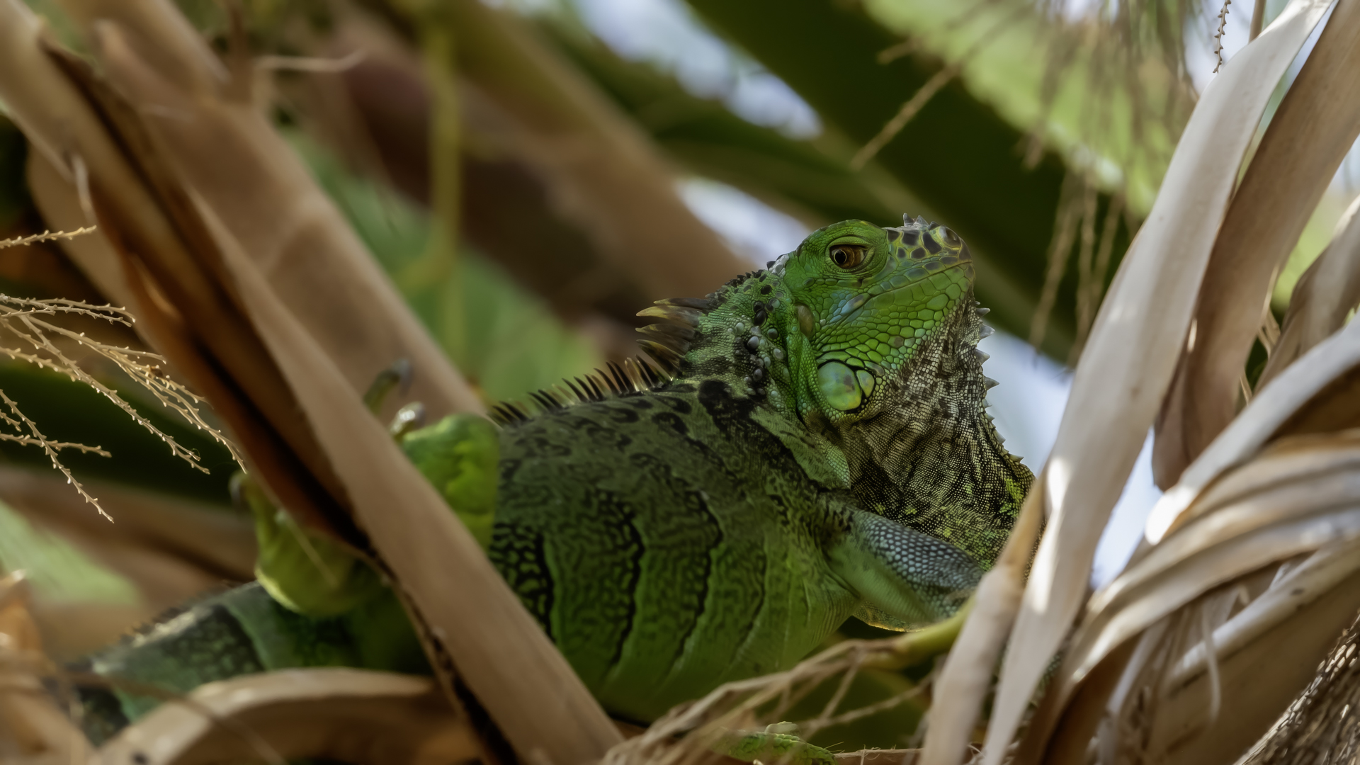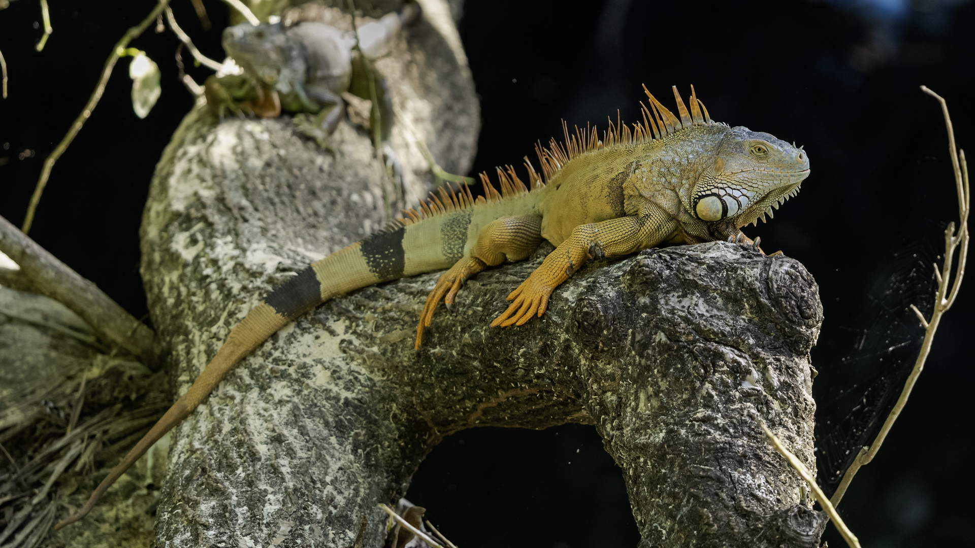 On Fuerteventura I photographed these iguanas in turns with weaver finches. They passed slowly and solemnly and there was no problem with taking pictures. Green iguanas like weavers are the species not naturally occurring on the island. There is a high probability that they escaped from farms or were released into the wild by breeder when slightly exceeded his expectations. Naturally they occur in South and Central America. Green iguanas grow up to 1.5 meters in length.