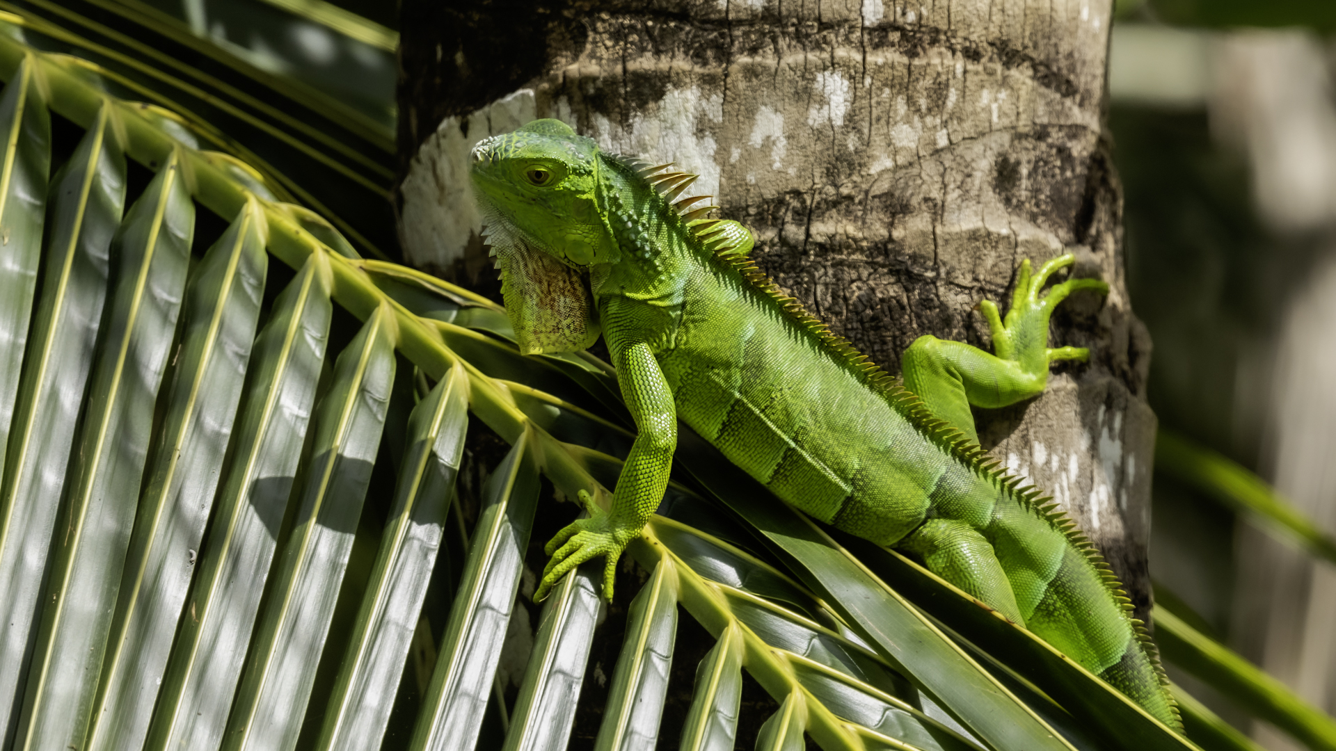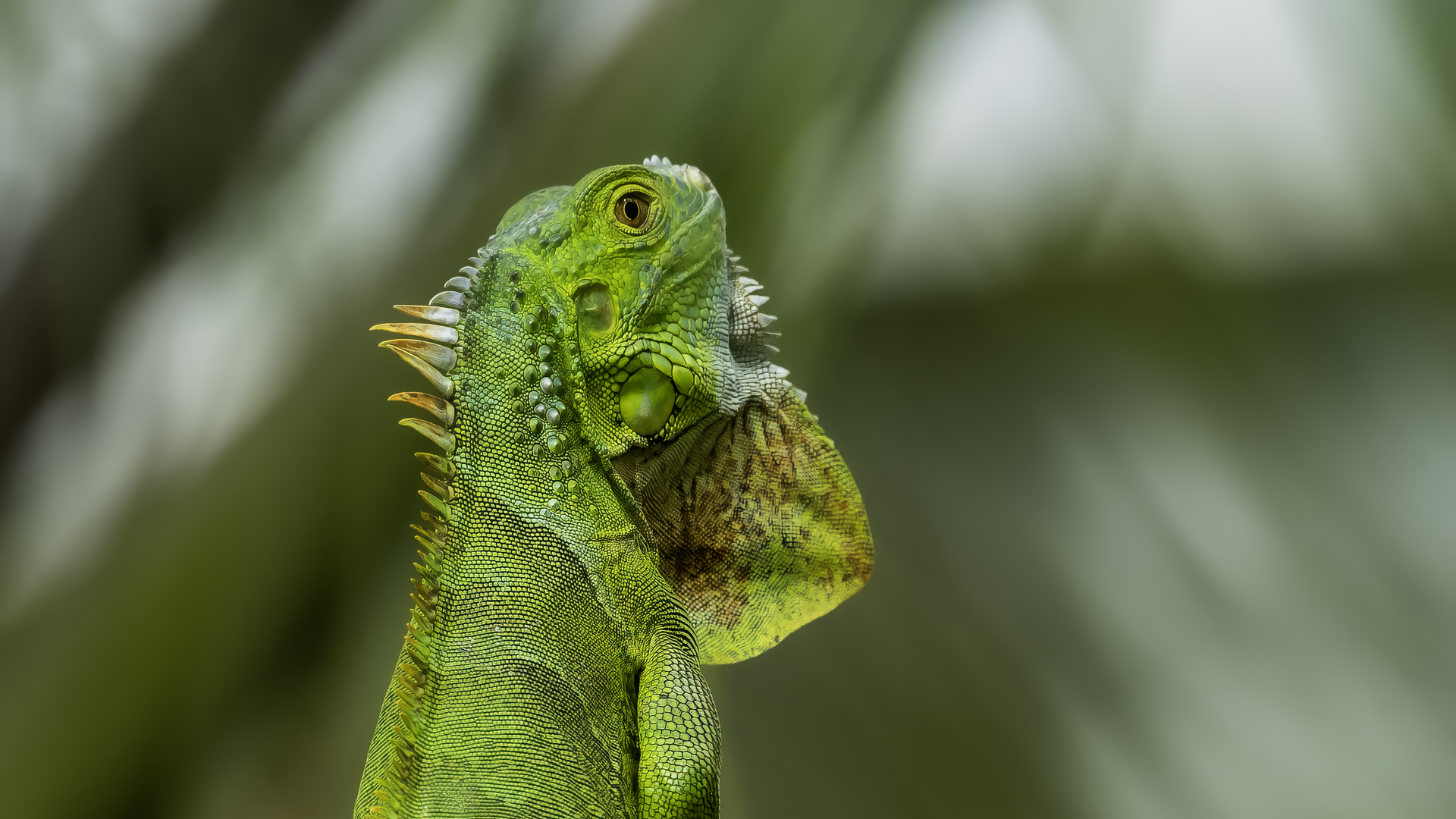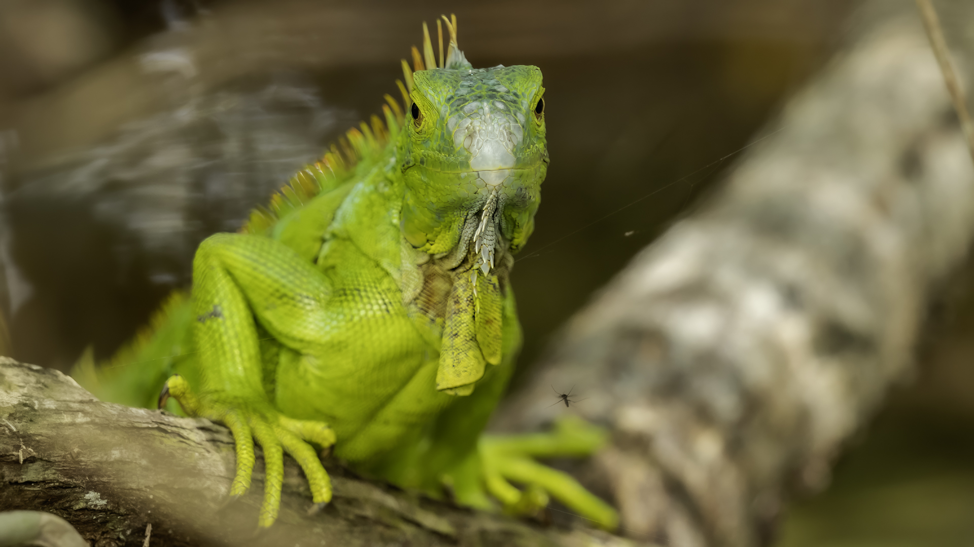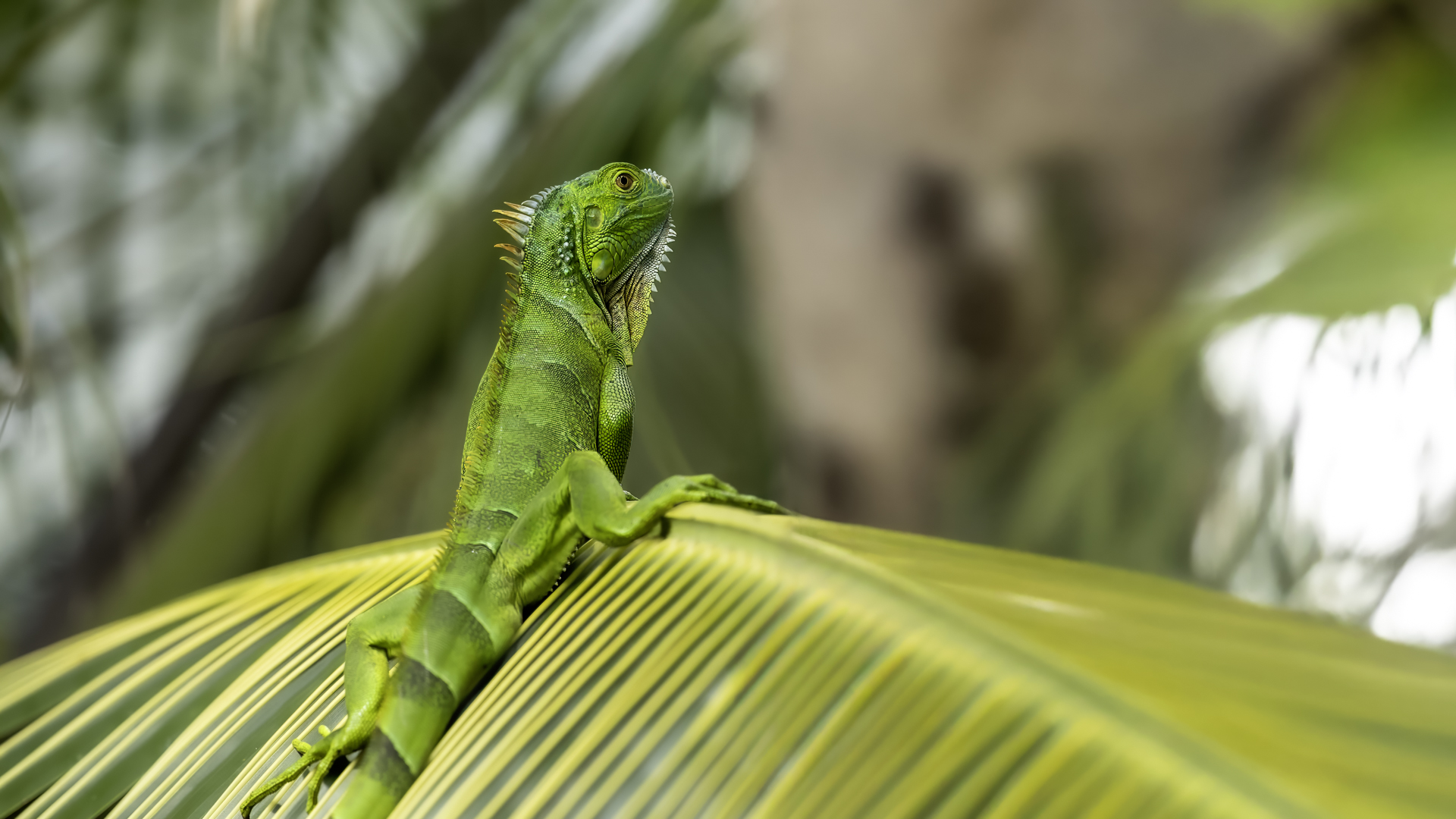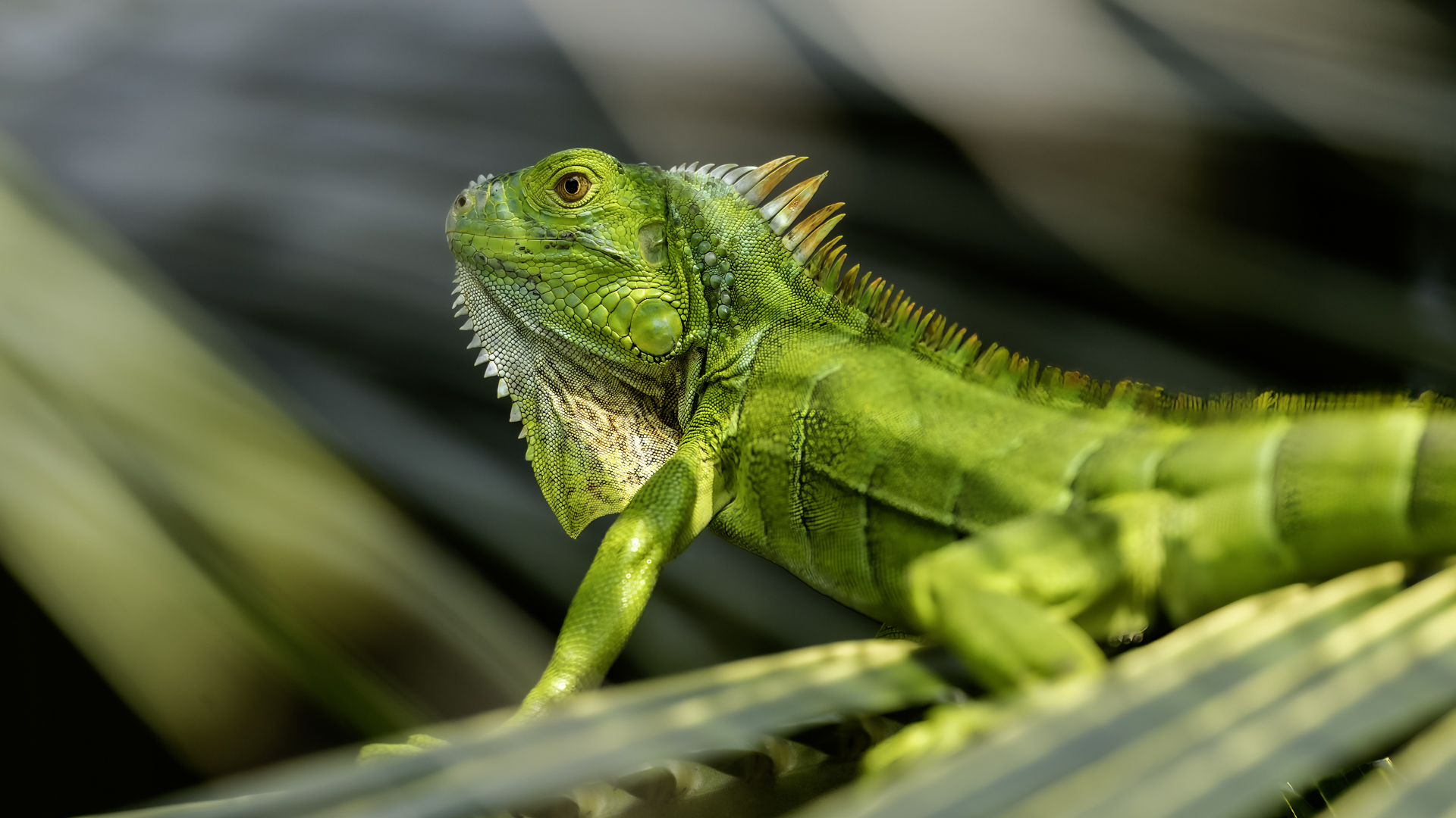 On Fuerteventura I photographed these iguanas in turns with weaver finches. They passed slowly and solemnly and there was no problem with taking pictures. Green iguanas like weavers are the species not naturally occurring on the island. There is a high probability that they escaped from farms or were released into the wild by breeder when slightly exceeded his expectations. Naturally they occur in South and Central America. Green iguanas grow up to 1.5 meters in length.
