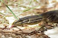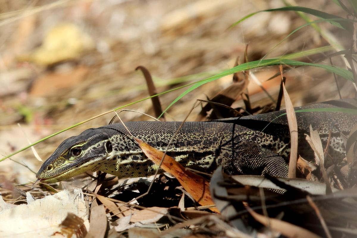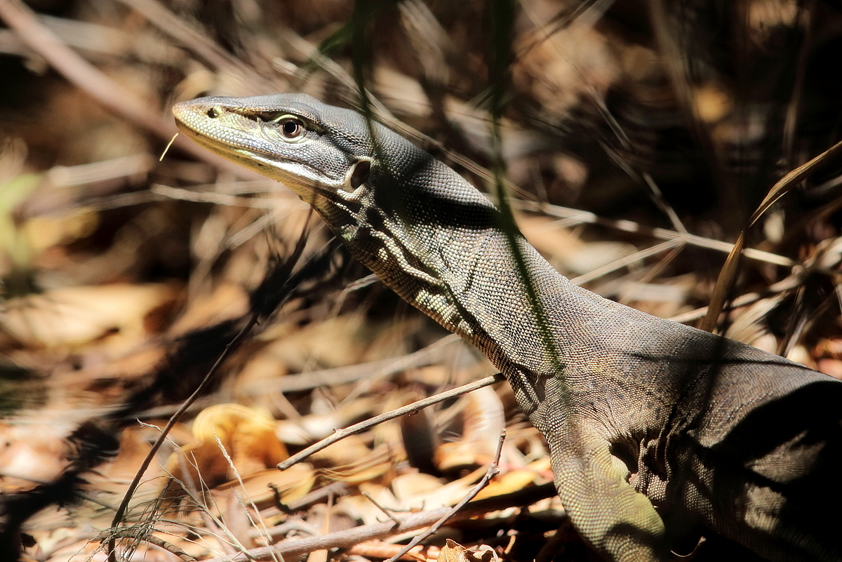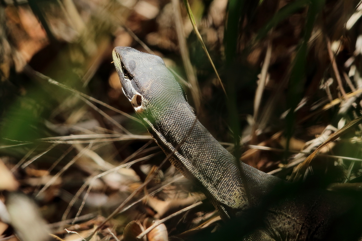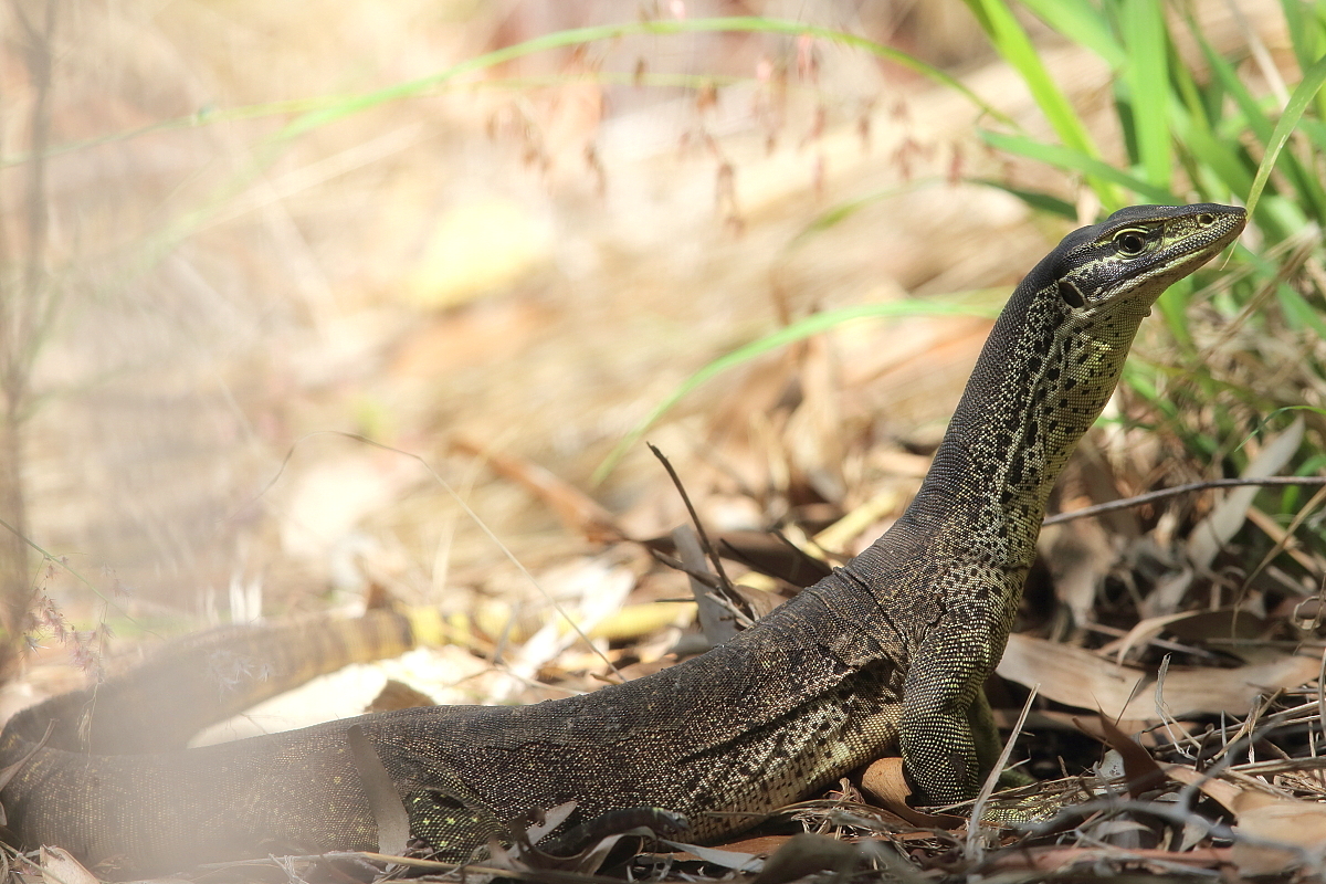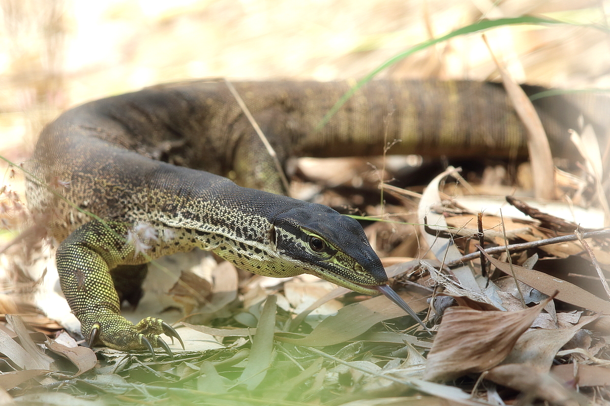 When I was photographing birds, I was taken aback by something moving in the grass. There was a sound, caused by the mysterious animal’s movement, that made me realise that something large was approaching. Ultimately, it turned out to be Varanus Gouldi. It does not bear any resemblance to any of the European lizards. It measures up to 1.5 metre and weighs up to 4 kilograms. It inhabits the whole Australia. It is a predator and is active during the daily hours. The species is characterised by an interesting reproduction cycle. Not unlike the cuckoo, it lays eggs in other animals’ dwellings. However, it does not leave the eggs in another reptile’s nest. Instead, the eggs are laid in the termitary. The insects are quick to make for the waran’s damage and rebuild the mound, closing the termitary and providing shelter for the legs. Termits are known to build in their mounds marvellous ventilation systems, which turns the termitary into a perfect incubator. Another interesting characteristic of the species is its forked tongue. It is extremely sensitive. If its left side can smell something just slightly more intensely than the right side, it is an indication for the animal that it should turn left. Walking slowly, it constantly corrects the way to the prey.