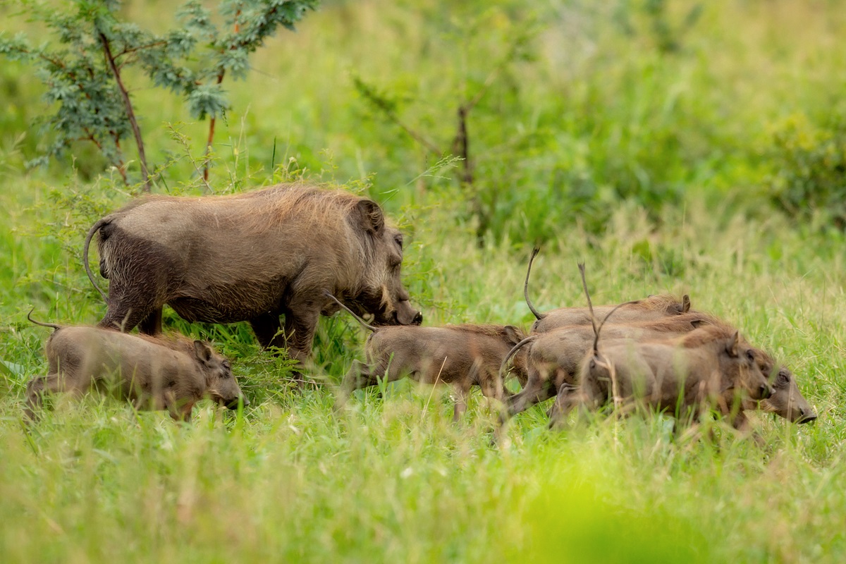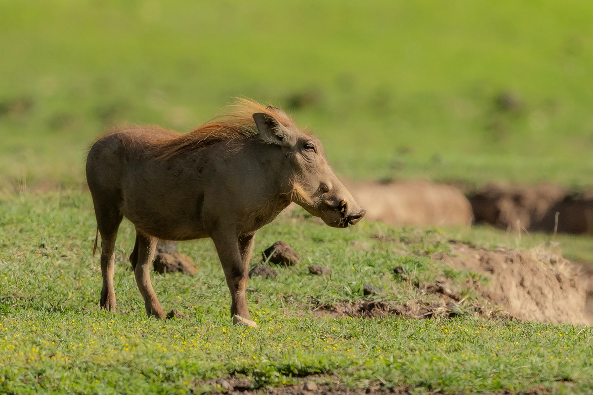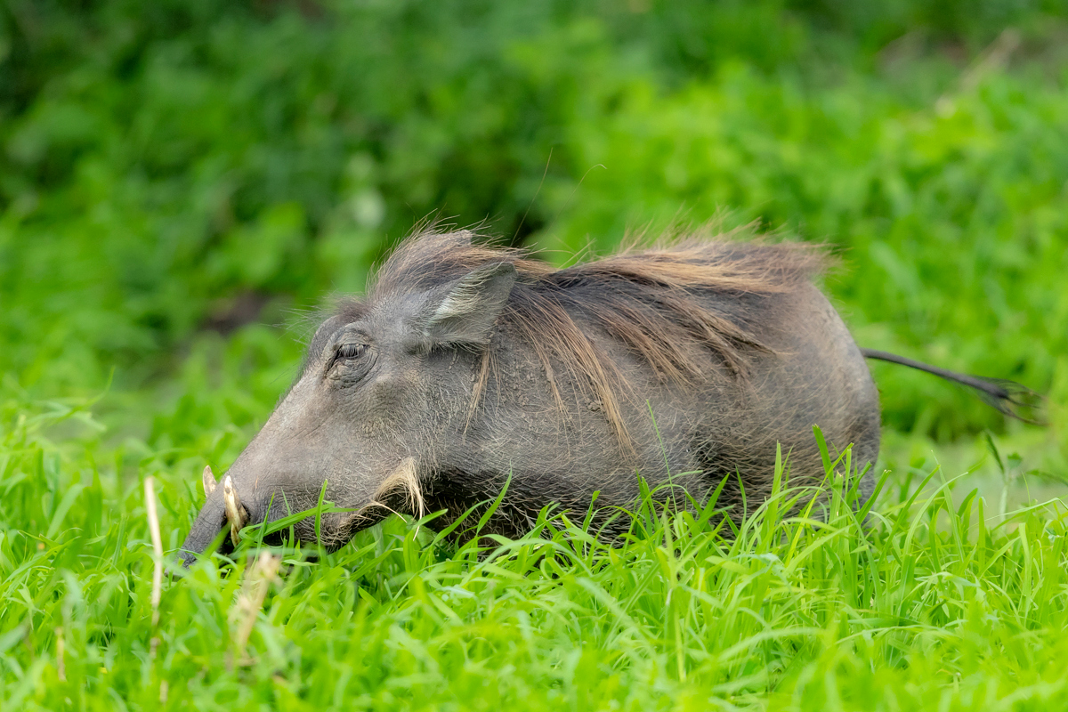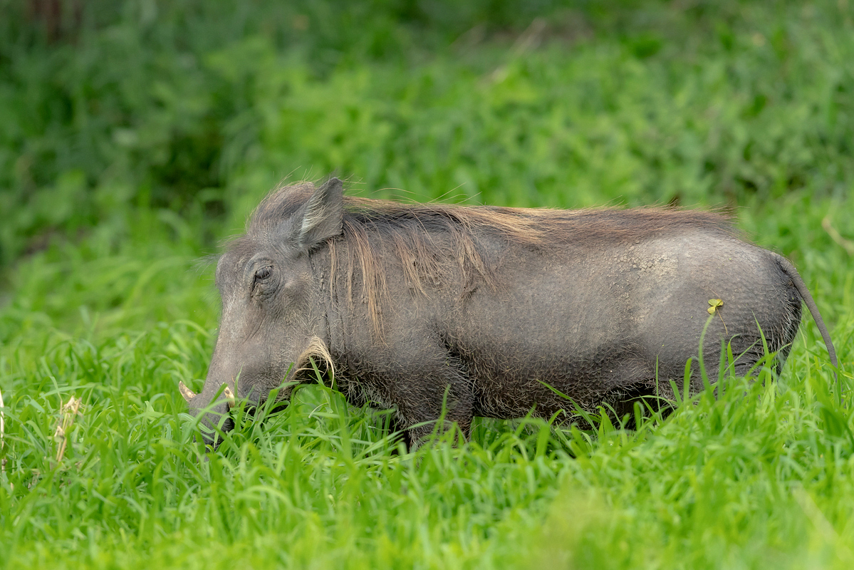 MAMMALS: 1. African buffalo. 2. Common warthog. 3.Impala. 4. Waterbuck.5.Banded mongoose.