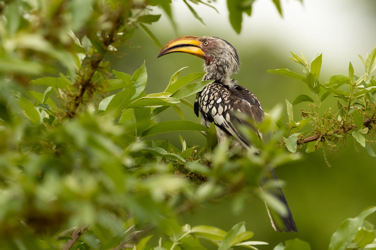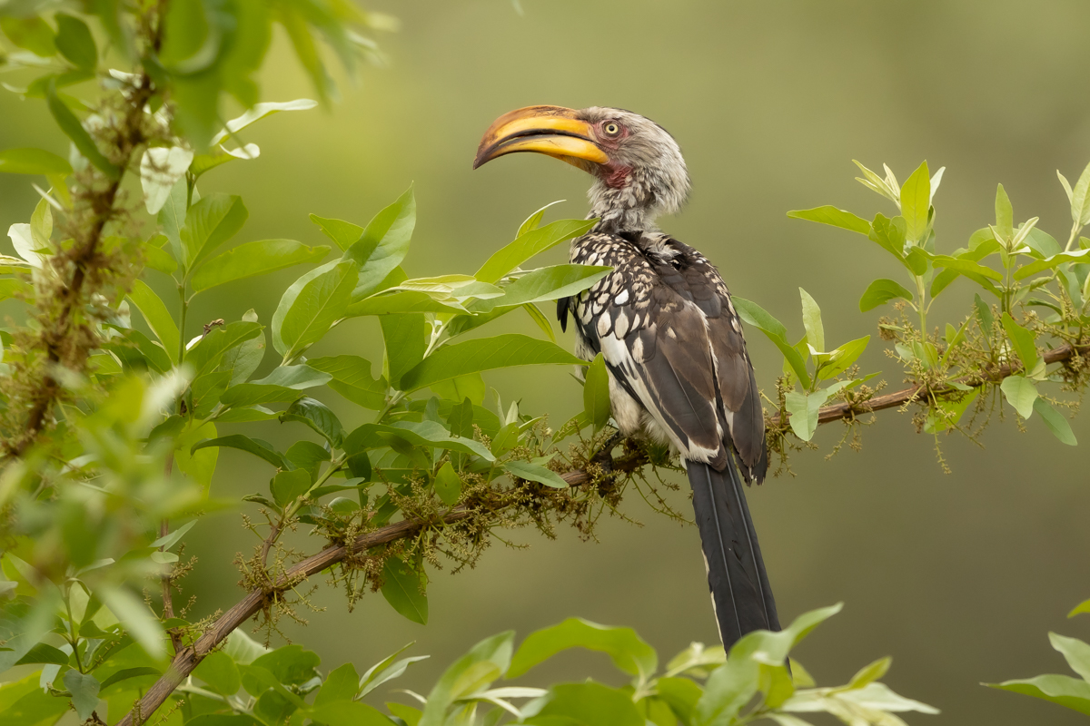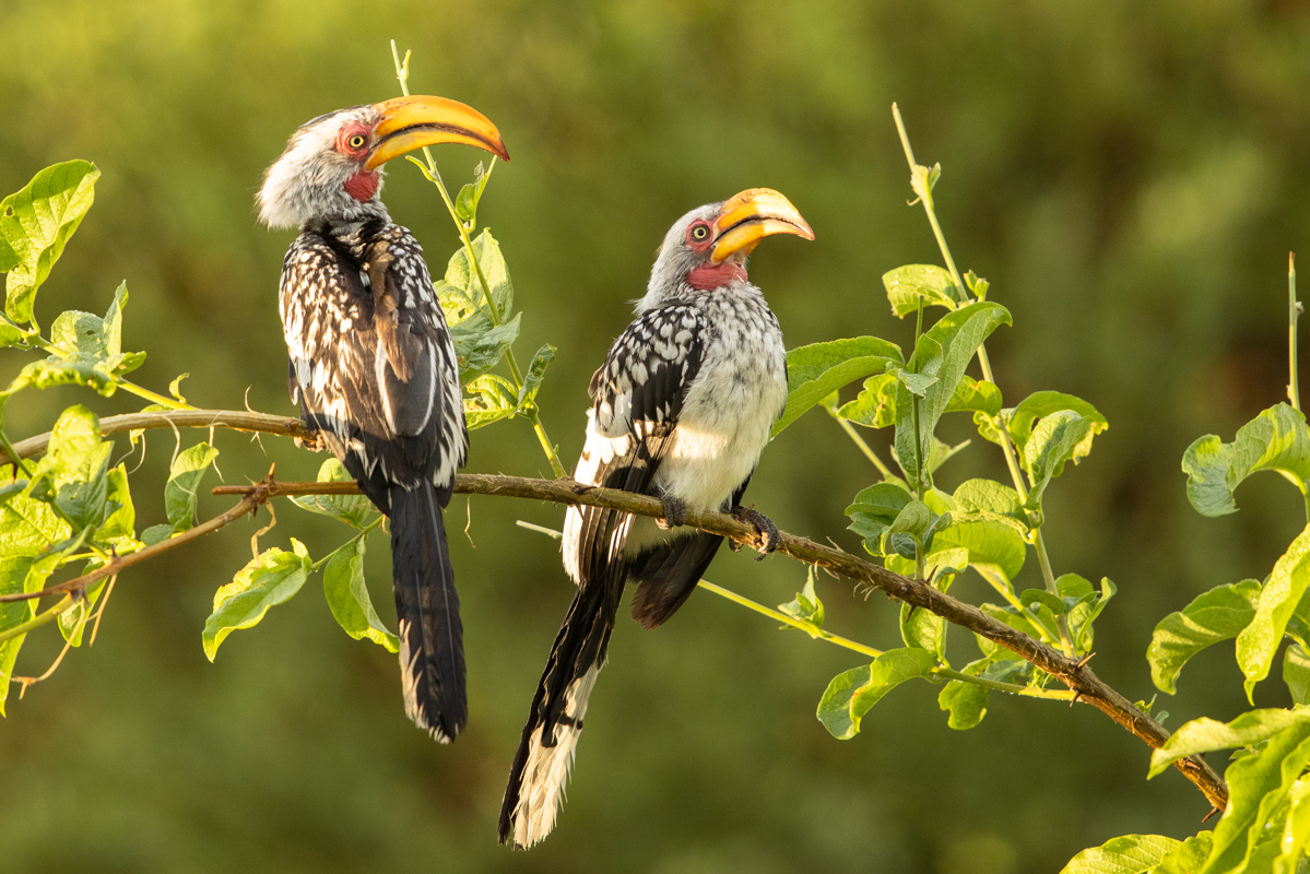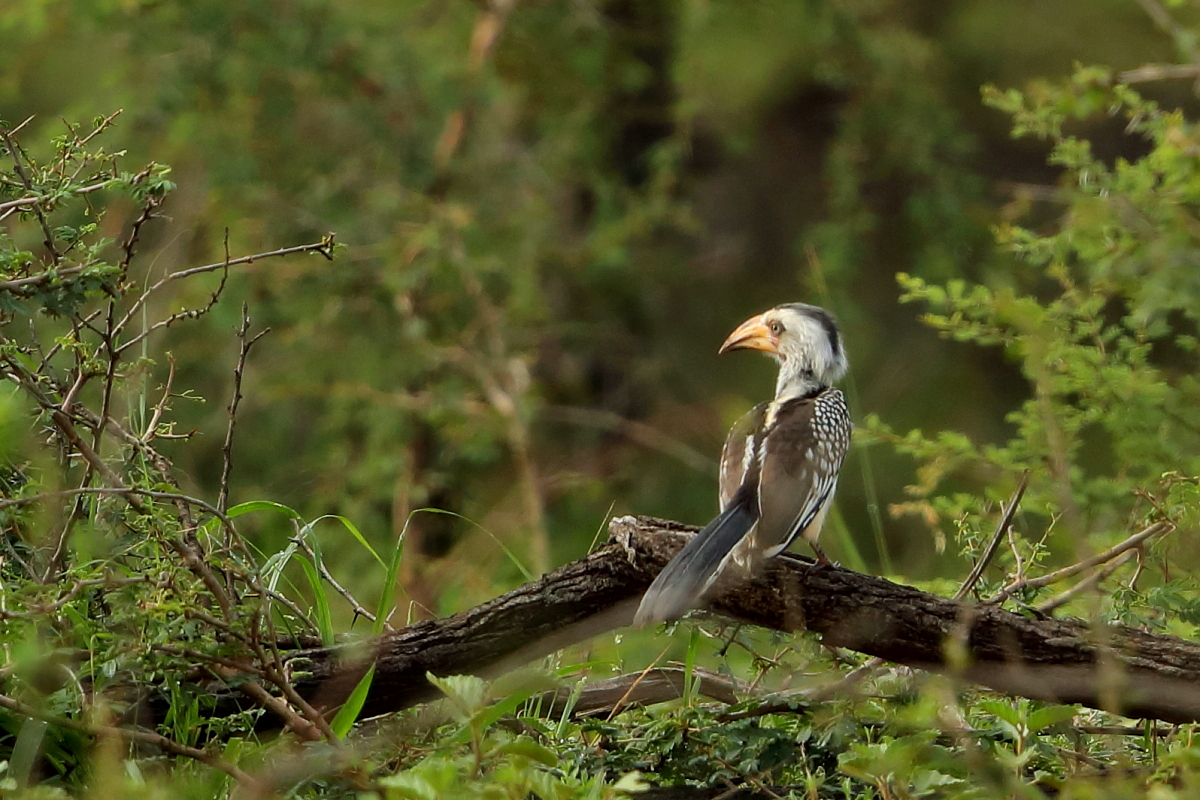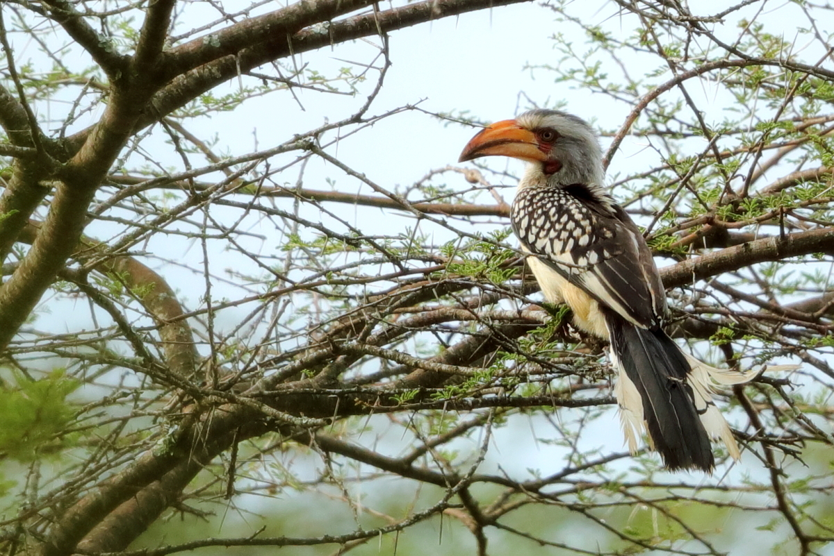 During our stay in South Africa three hornbills were photographed: the crowned hornbill, the southern yellow-billed hornbill and the trumpeter hornbill. This was my first contact with hornbills and I must admit quite successful. Although the birds were always a little too high and too far, but probably that is the case with hornbills which, in principle, prey in crowns of trees eating fruit. The hornbills were always a few and they behaved quite noisily, it lasted long enough and they were loud enough to record the voice of a southern yellow-billed hornbill and a trumpeter hornbill.
