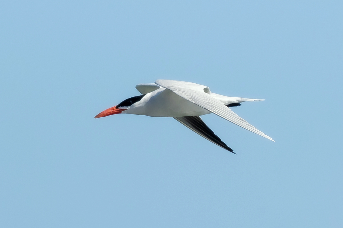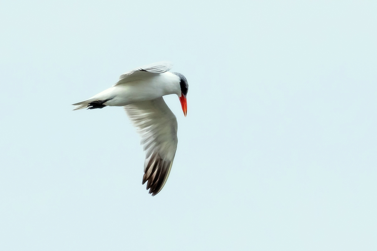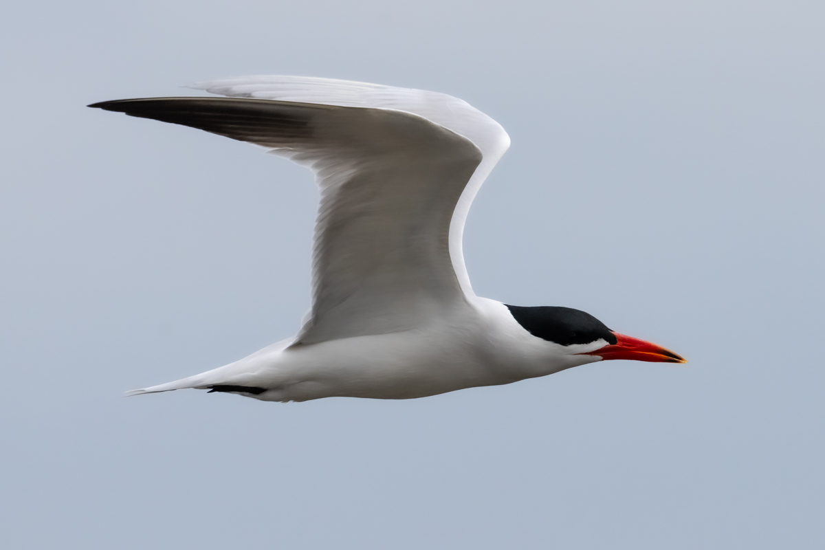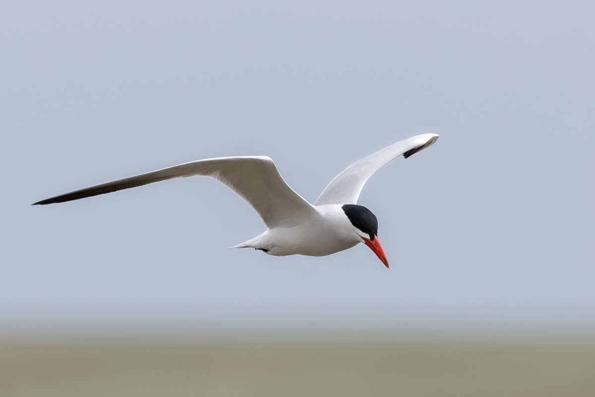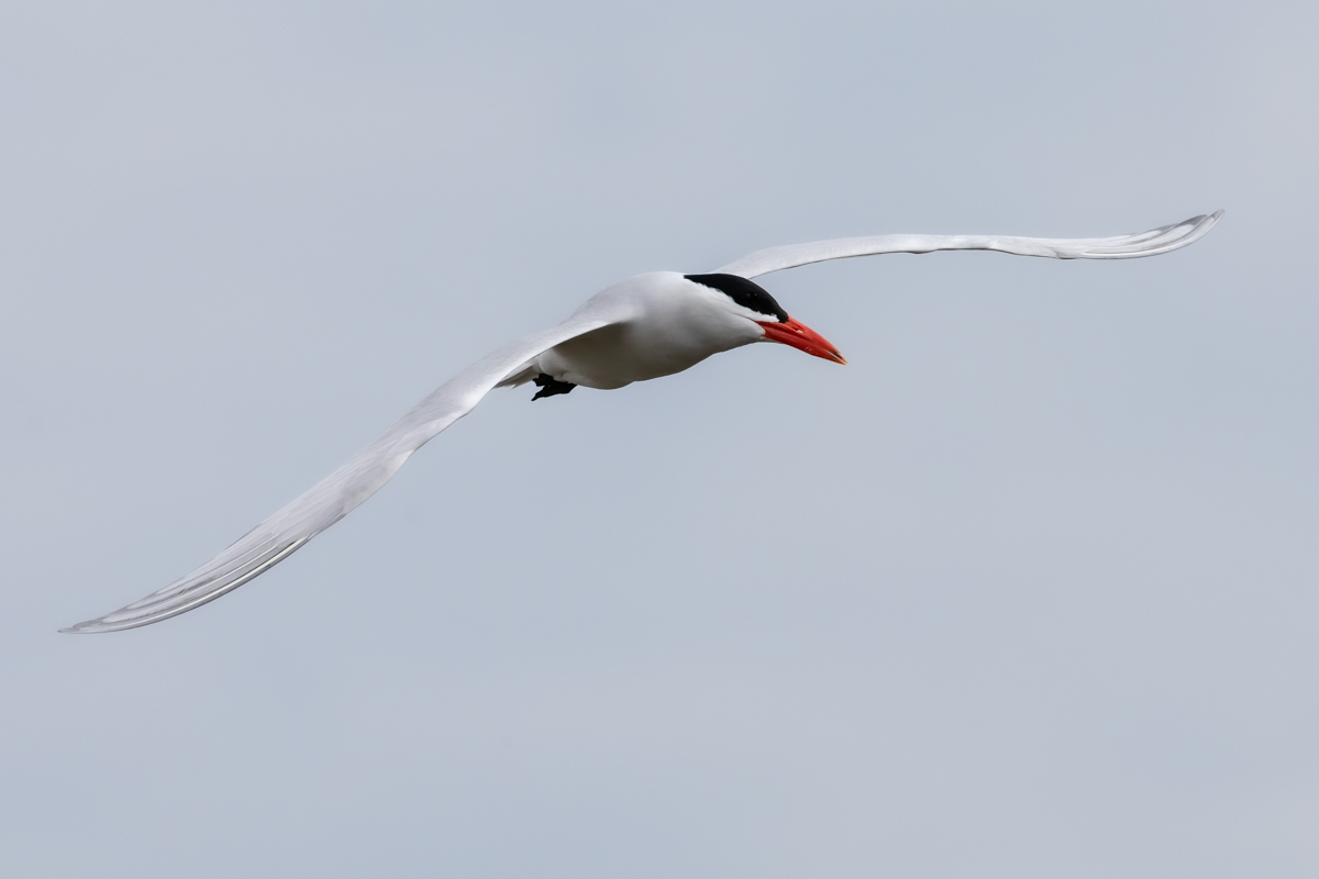 Pictures of the Caspian tern taken in South Africa may not be spectacular because the birds were always far from us and I could not do  without a 1.4 converter and framing, but it is yet another species from the list of Polish birds, so the gallery must start up. In our country it is not a frequent visitor and appears only during migration. The range of its occurrence is quite impressive, because apart from Antarctica and South America it can be seen on every continent.