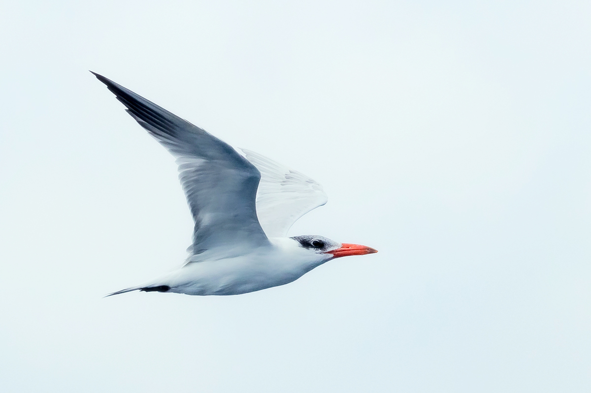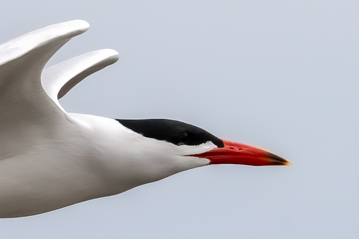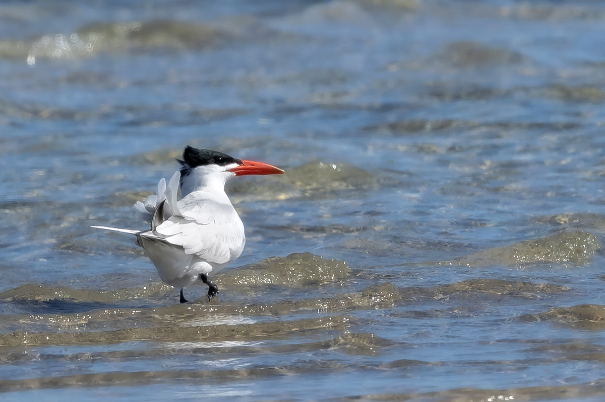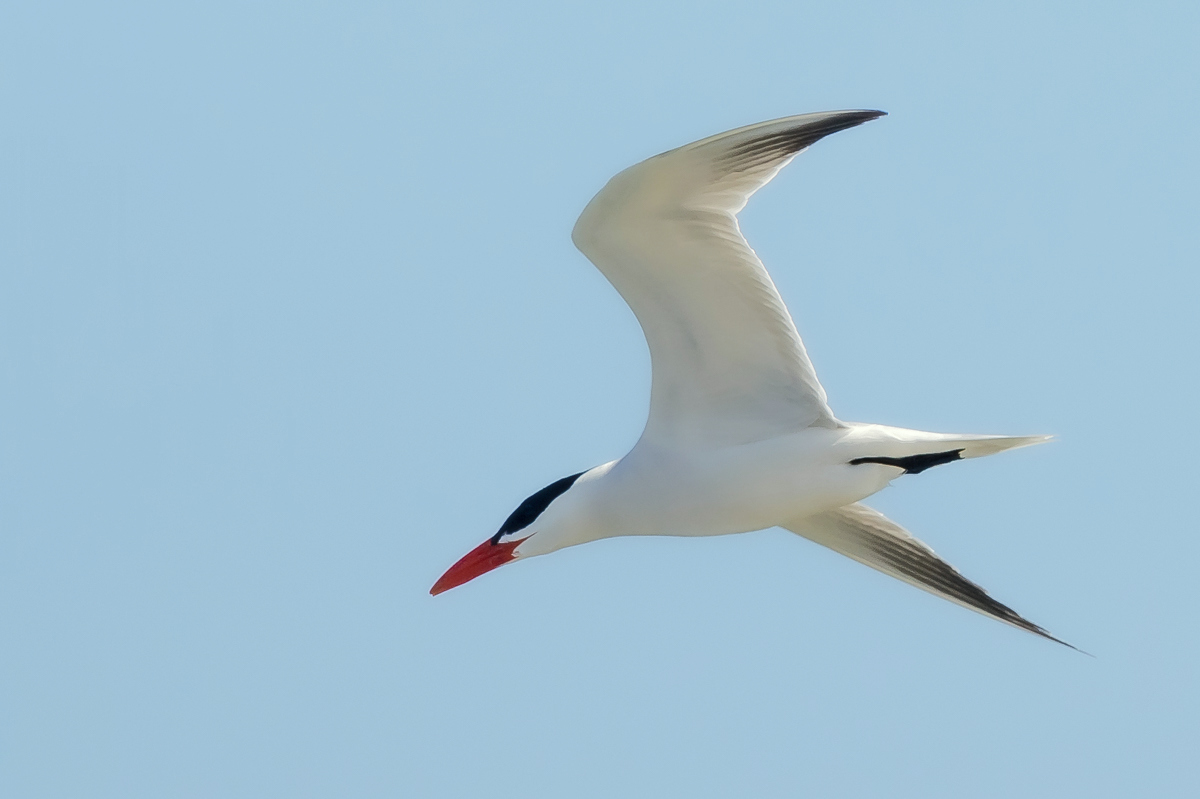 Pictures of the Caspian tern taken in South Africa may not be spectacular because the birds were always far from us and I could not do  without a 1.4 converter and framing, but it is yet another species from the list of Polish birds, so the gallery must start up. In our country it is not a frequent visitor and appears only during migration. The range of its occurrence is quite impressive, because apart from Antarctica and South America it can be seen on every continent.