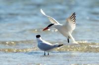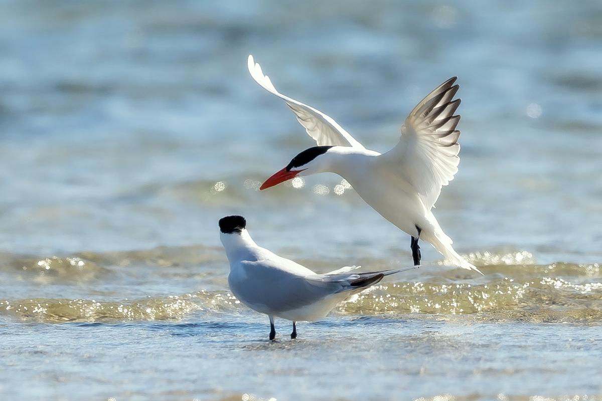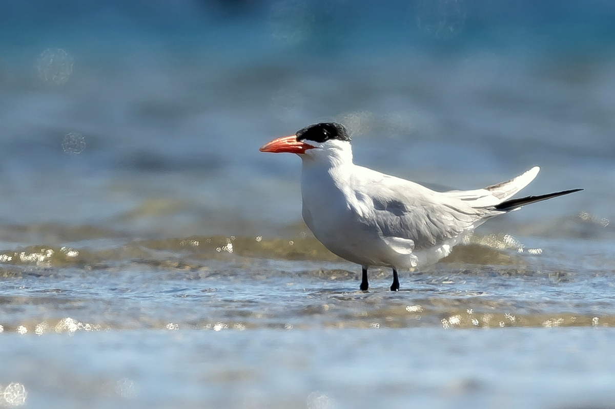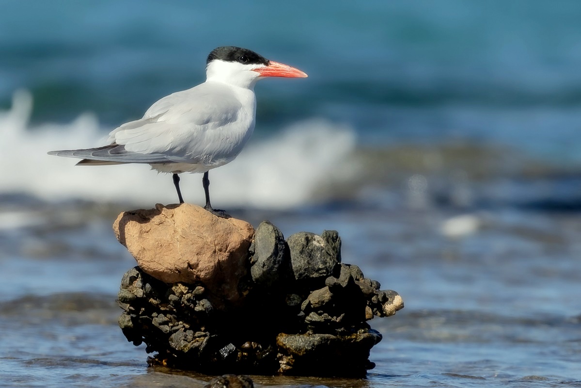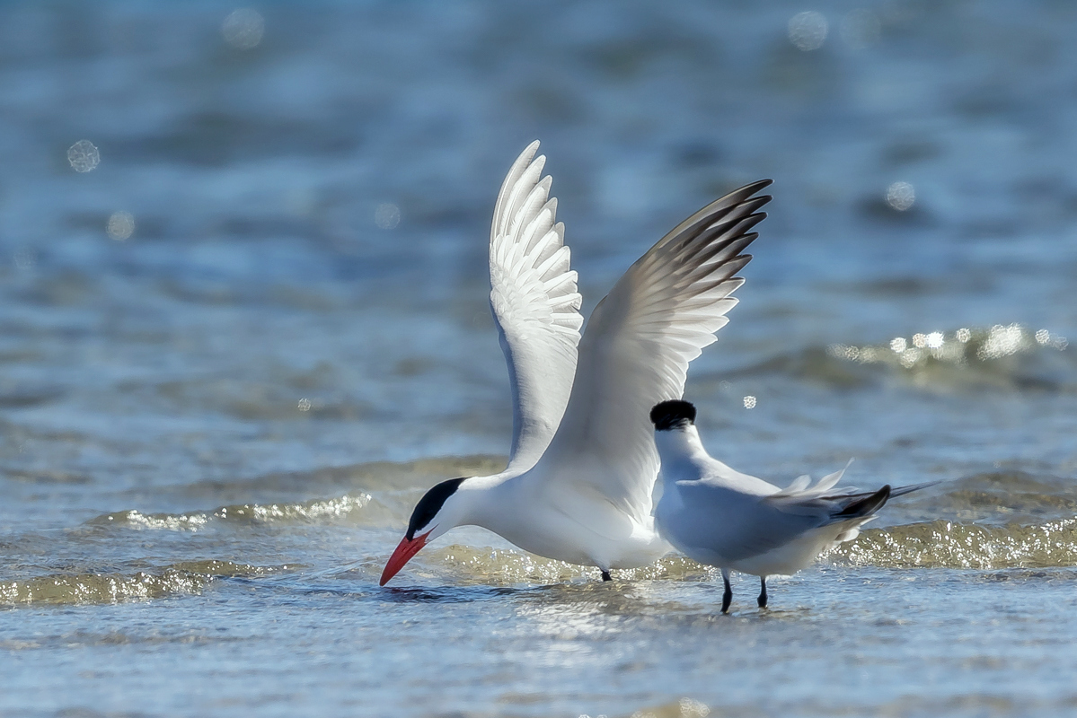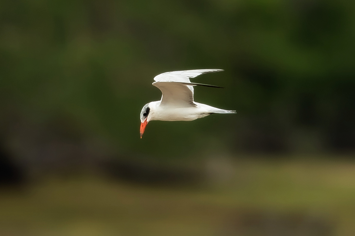 Pictures of the Caspian tern taken in South Africa may not be spectacular because the birds were always far from us and I could not do  without a 1.4 converter and framing, but it is yet another species from the list of Polish birds, so the gallery must start up. In our country it is not a frequent visitor and appears only during migration. The range of its occurrence is quite impressive, because apart from Antarctica and South America it can be seen on every continent.