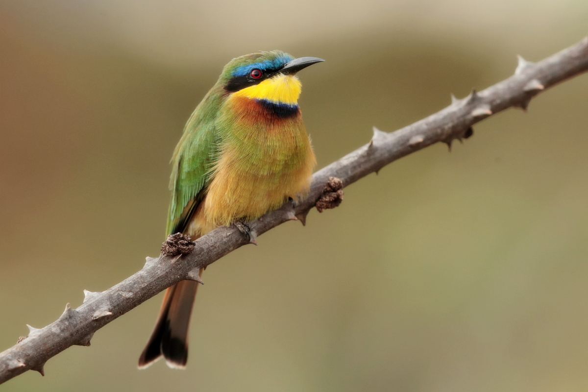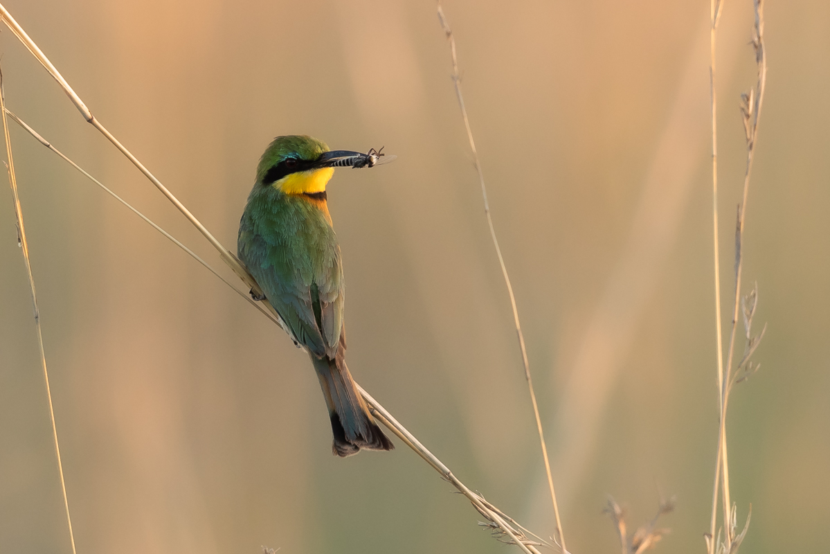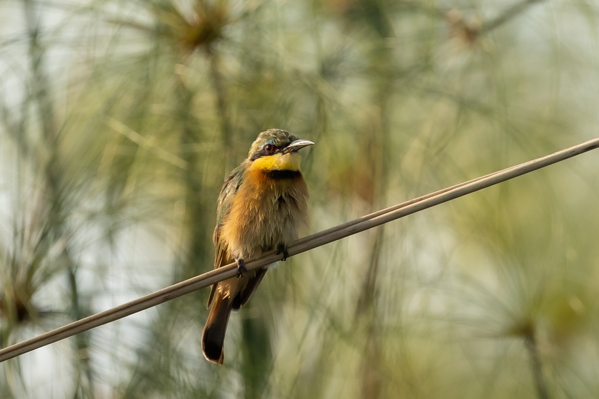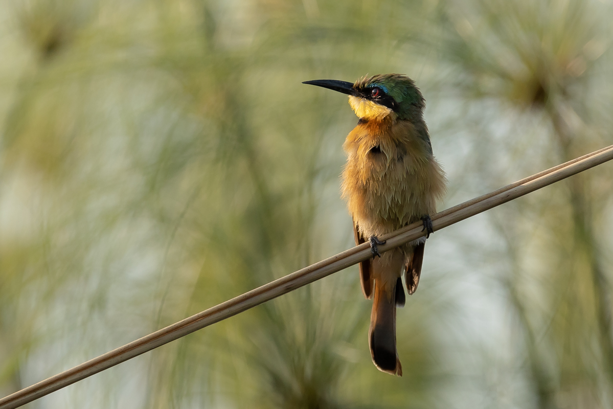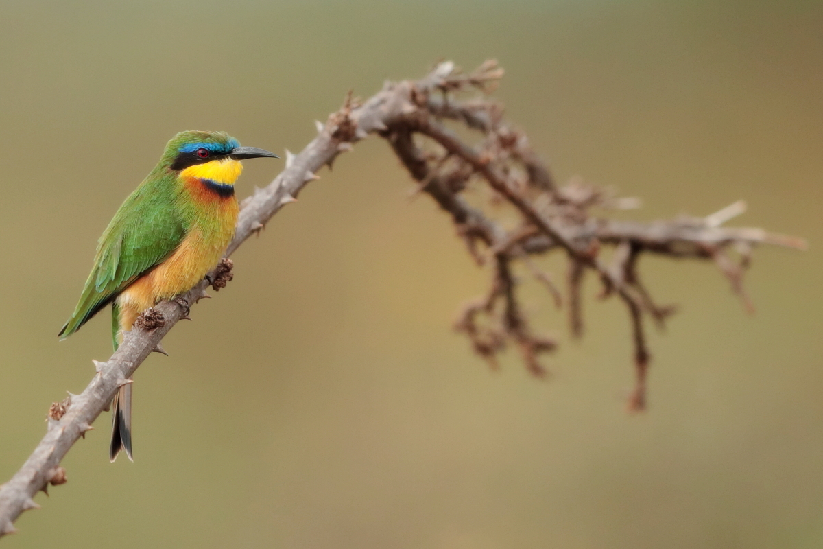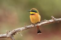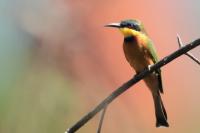 I must admit that I hoped to photograph more species of bee-eaters and with better pictures. For where, if not in Africa, so colorful varieties of bee-eaters would be photographed. But not in South Africa. I managed to take some pictures of two species of bee-eaters, from the distance that the rest of my colleagues made no attempt of shooting. They have been many times to Africa and they have beautiful portraits of these wonderful, colorful birds as a result of such encounters with bee-eaters. Well, it happens, I have created galleries of the little bee-eater and the blue-cheeked bee-eater with modest, for the time being, content. This text is common to both species.