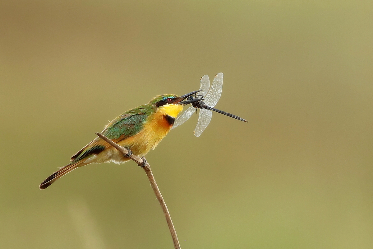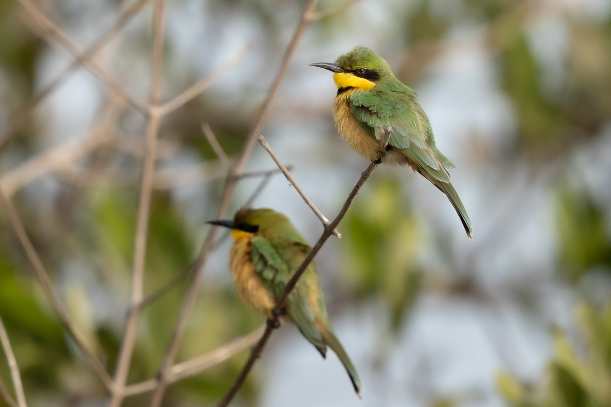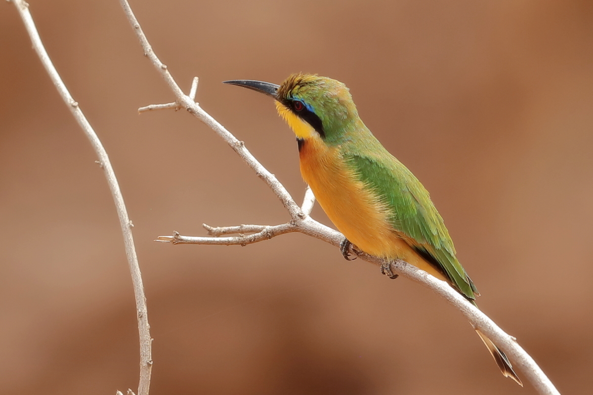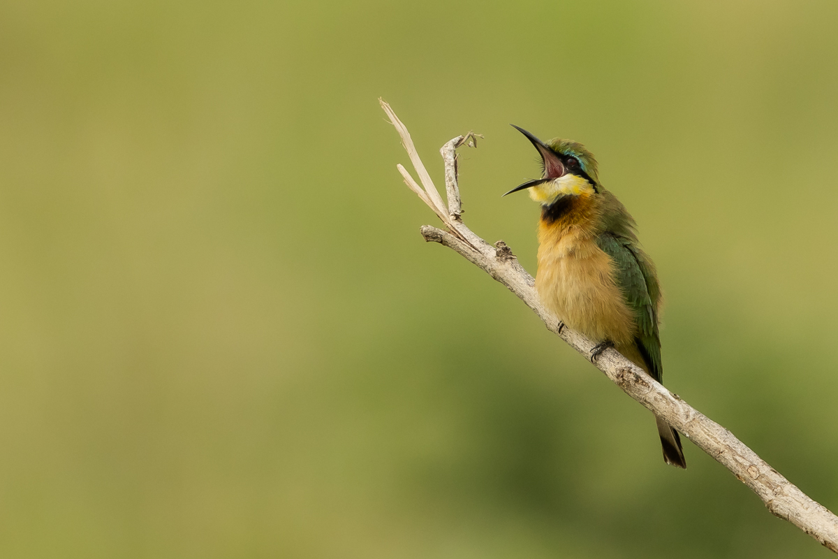 I must admit that I hoped to photograph more species of bee-eaters and with better pictures. For where, if not in Africa, so colorful varieties of bee-eaters would be photographed. But not in South Africa. I managed to take some pictures of two species of bee-eaters, from the distance that the rest of my colleagues made no attempt of shooting. They have been many times to Africa and they have beautiful portraits of these wonderful, colorful birds as a result of such encounters with bee-eaters. Well, it happens, I have created galleries of the little bee-eater and the blue-cheeked bee-eater with modest, for the time being, content. This text is common to both species.