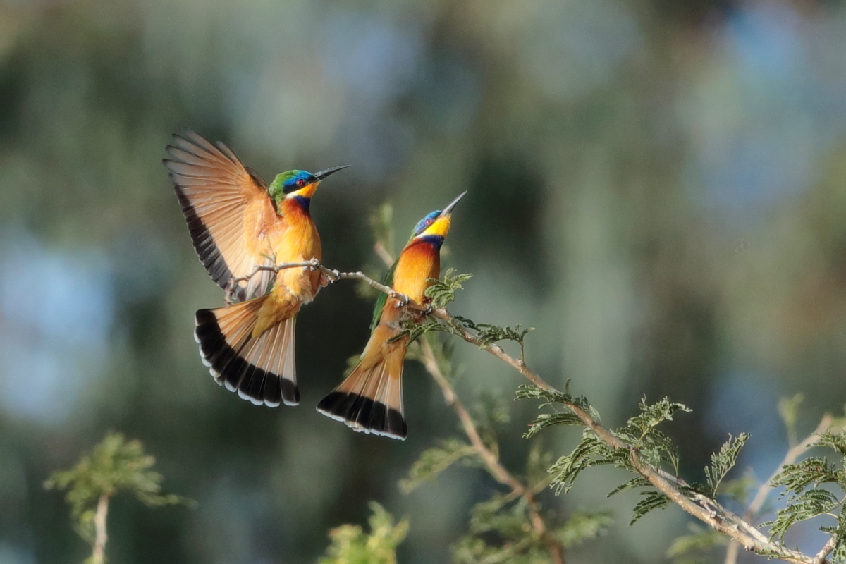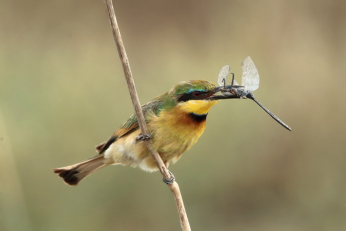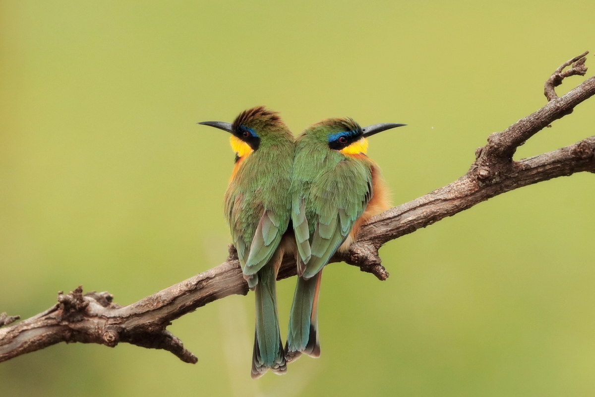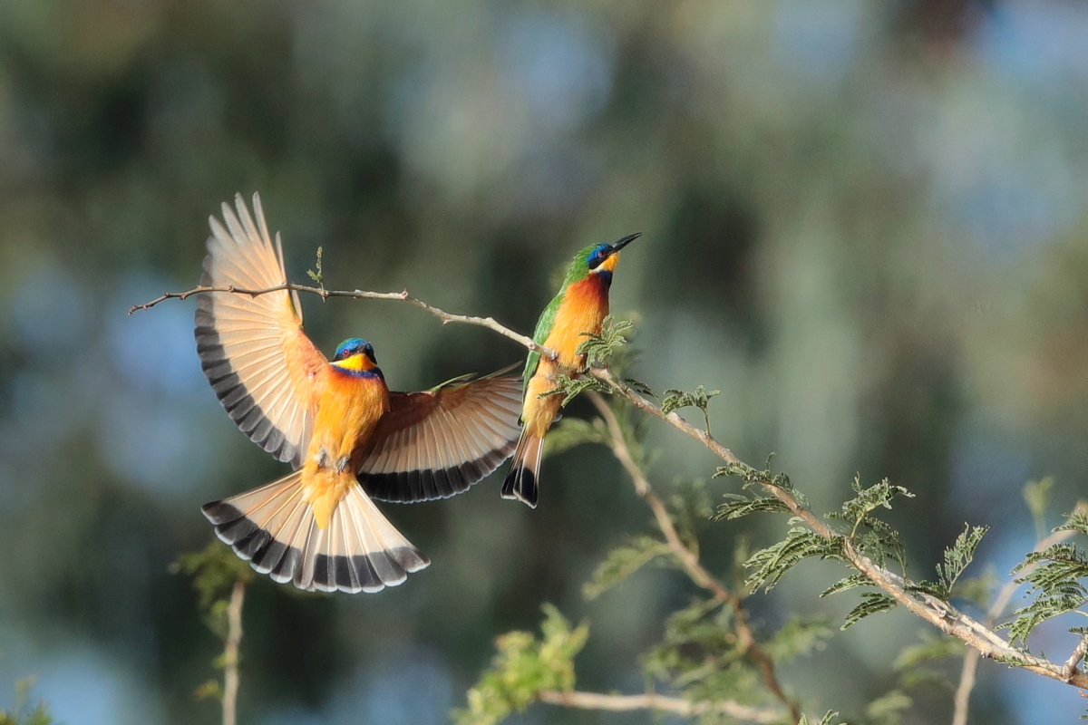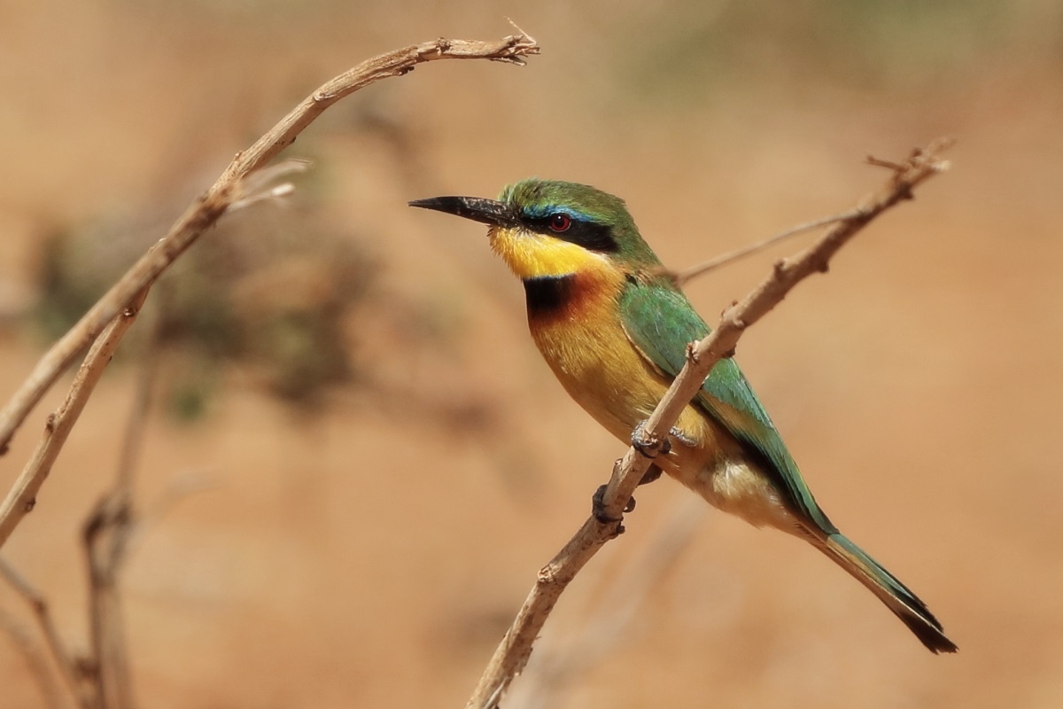 I must admit that I hoped to photograph more species of bee-eaters and with better pictures. For where, if not in Africa, so colorful varieties of bee-eaters would be photographed. But not in South Africa. I managed to take some pictures of two species of bee-eaters, from the distance that the rest of my colleagues made no attempt of shooting. They have been many times to Africa and they have beautiful portraits of these wonderful, colorful birds as a result of such encounters with bee-eaters. Well, it happens, I have created galleries of the little bee-eater and the blue-cheeked bee-eater with modest, for the time being, content. This text is common to both species.