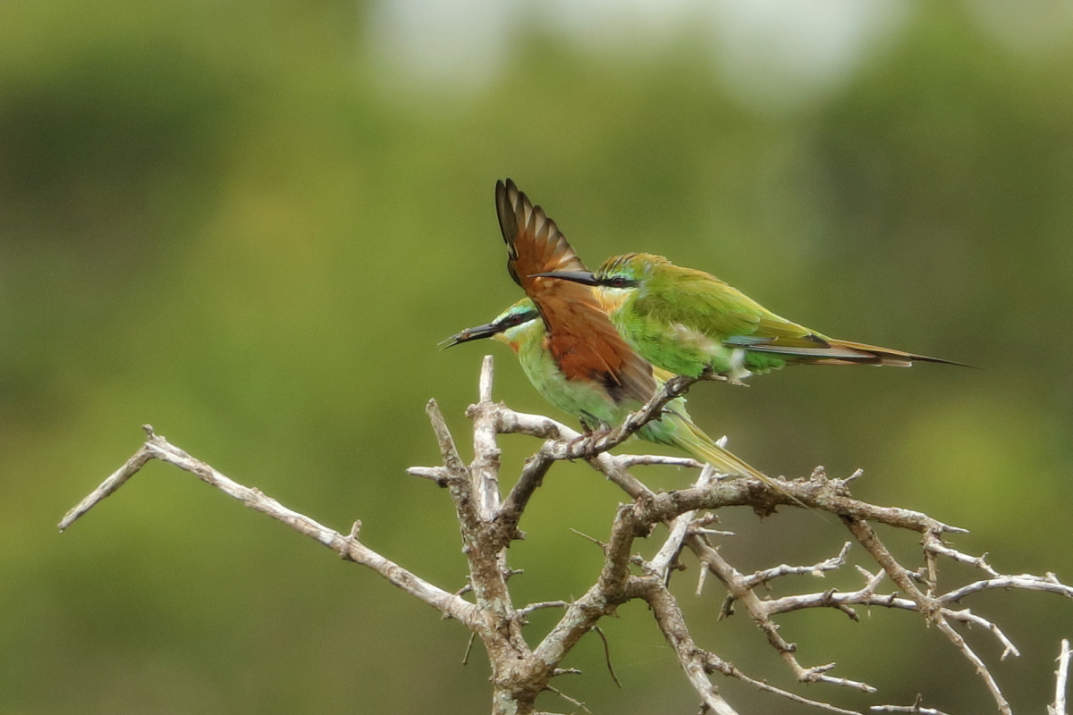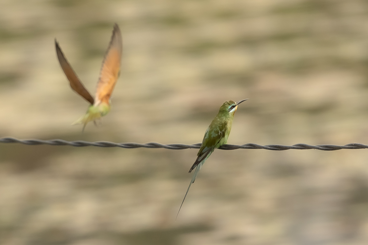 I must admit that I hoped to photograph more species of bee-eaters and with better pictures. For where, if not in Africa, so colorful varieties of bee-eaters would be photographed. But not in South Africa. I managed to take some pictures of two species of bee-eaters, from the distance that the rest of my colleagues made no attempt of shooting. They have been many times to Africa and they have beautiful portraits of these wonderful, colorful birds as a result of such encounters with bee-eaters. Well, it happens, I have created galleries of the little bee-eater and the blue-cheeked bee-eater with modest, for the time being, content. This text is common to both species.