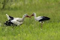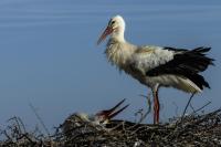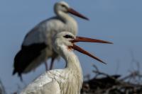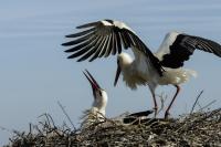 Despite that Storks in Poland are aplenty taking pictures of this bird flying in to its nest, and not from the ground requires some effort, permission from the building's owner and a comfortable spot to photograph to be exact. But I made it, this time while photographing the Common Kestrel. Storks do not fear people, they did not show any fear from dozen or so meters, and the pictures are attached. Kestrels sitting nearby needed any reason to fly away. There were as much as four nests on the roof on which I was photographing the storks. More so, it was a middle of April and you could already see the young. Storks also accepted other pair of storks which accomodated nearby, but you could see that there were borders, which crossed ended with one stork scarring away the other bird which got too close. I guess it was a result of caring for the youngling, because I have already heard a lot about stork's gluttony. They eat everything that stands in their way. So he would not scorn the young. I think I took couple of interesting shots which I added to the gallery.