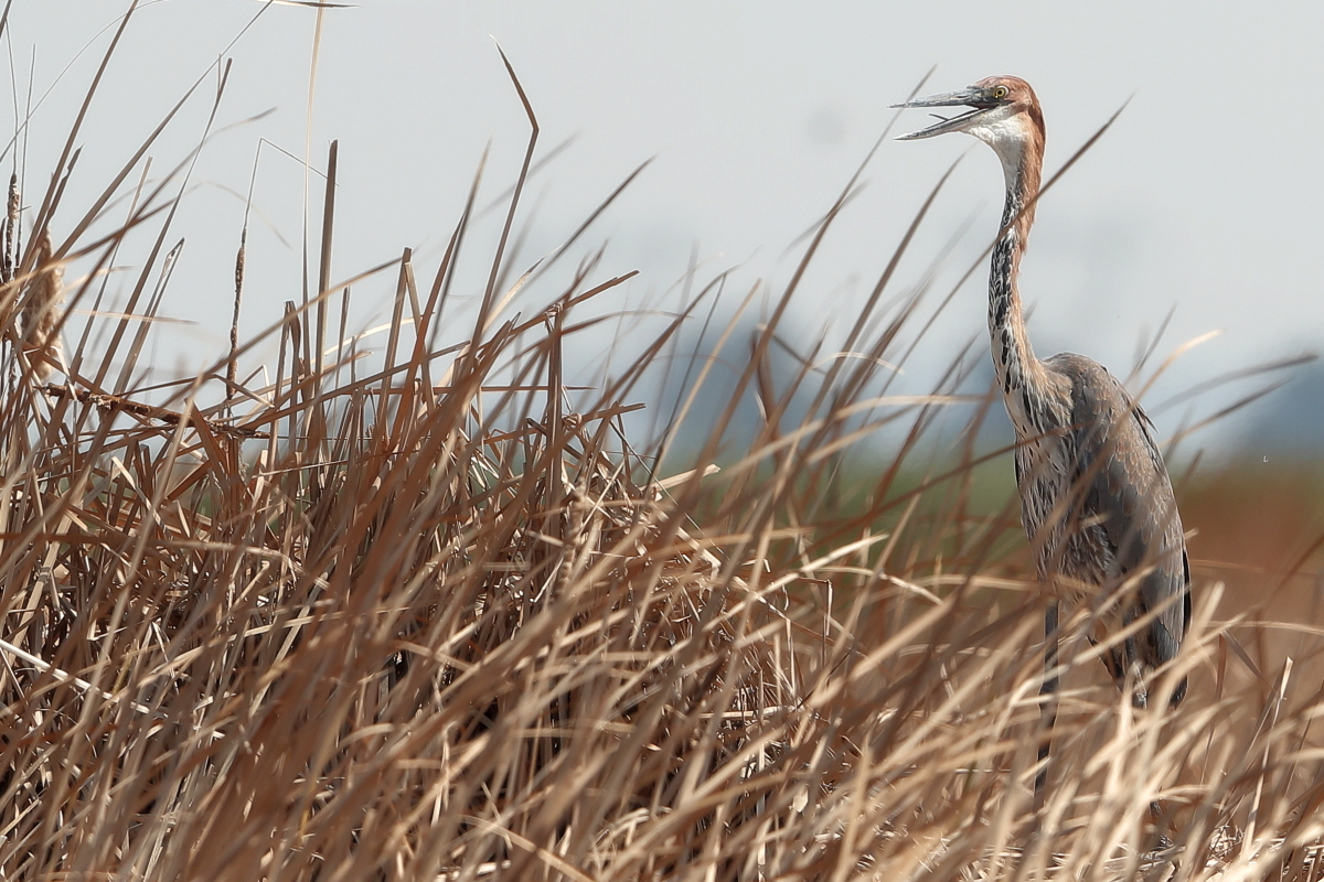 To more than a dozen species of herons on my website the largest of herons – the goliath heron is added. Although this may sound rather bombastically because its size can be seen only in direct confrontation with other herons. The weight of the goliath heron reaches 5 kilograms and the wingspan is up to 2.3 meters. She was very cautious and always, as far as my expectations, too far away.