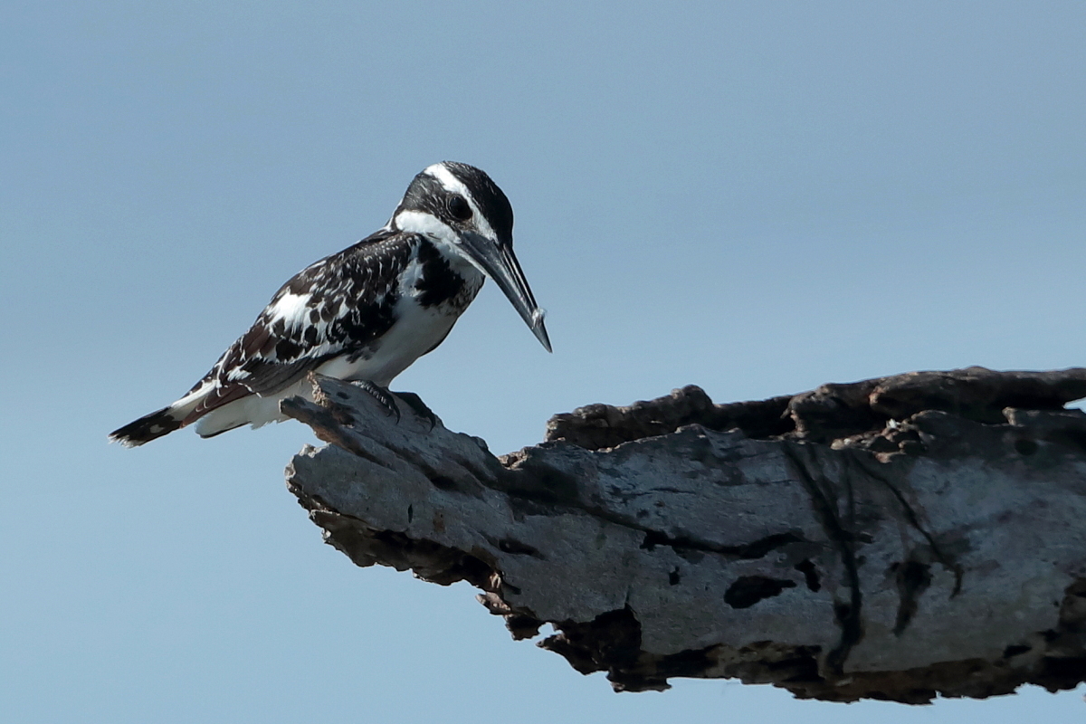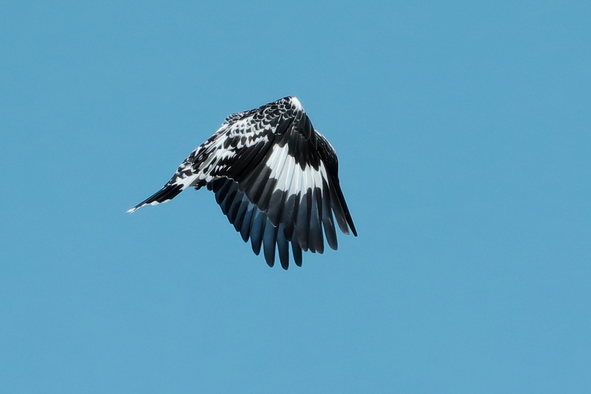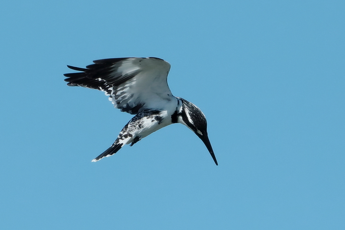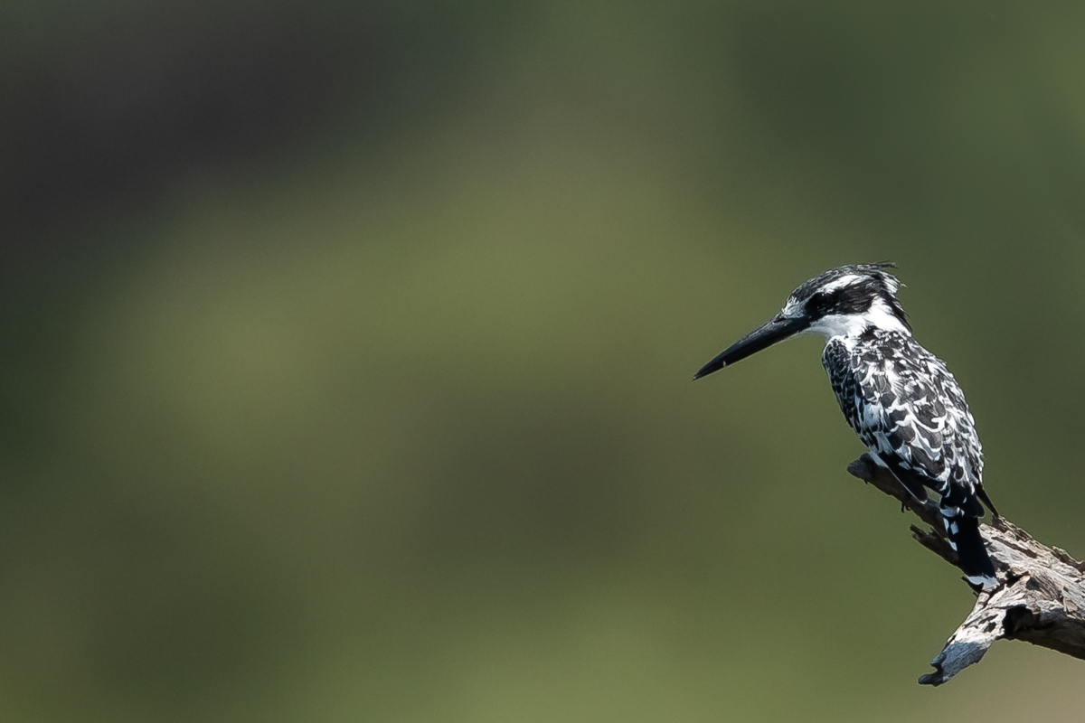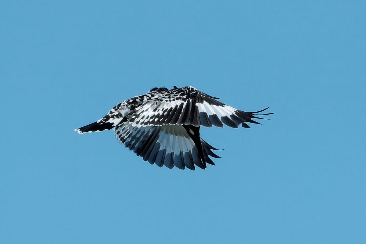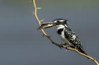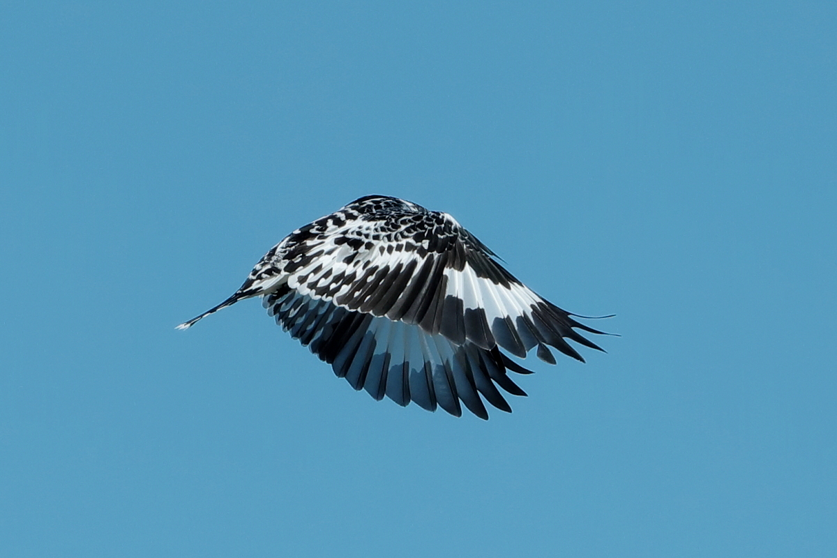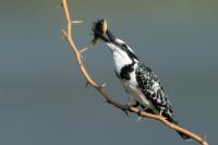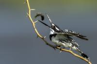 Another species of bird belonging to Polish fauna, and "gained" during my stay in South Africa. The first encounter with a pied kingfisher was while at sunrise we were waiting for turacos. Two pairs of pied kingfishers in the morning preyed very efficiently. Unfortunately there was a wide space between us and even the 2X converter could not do. But the first documentary photographs were taken and to my list of birds belonging to fauna of Poland another species was added. On the last day of our stay in South Africa we were lucky to take some pictures from a much shorter distance. A pair of pied kingfishers preyed in vast floodplain areas. A concrete isthmus was their favorite place and the best shots were taken there.