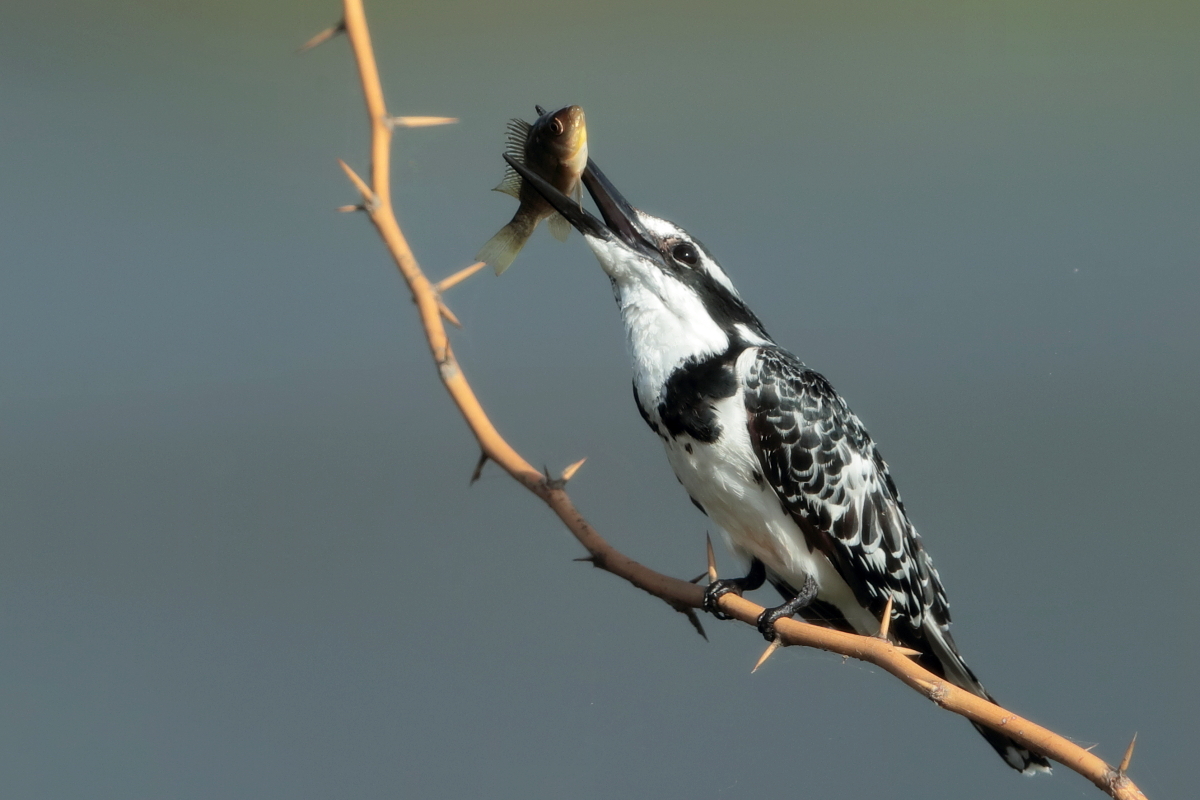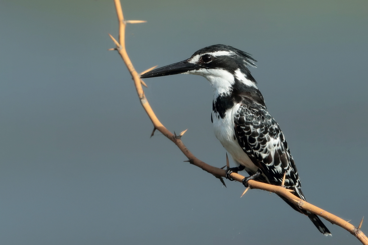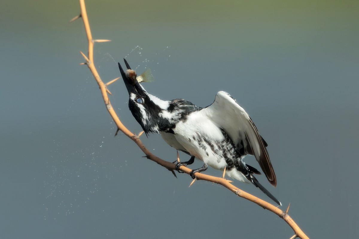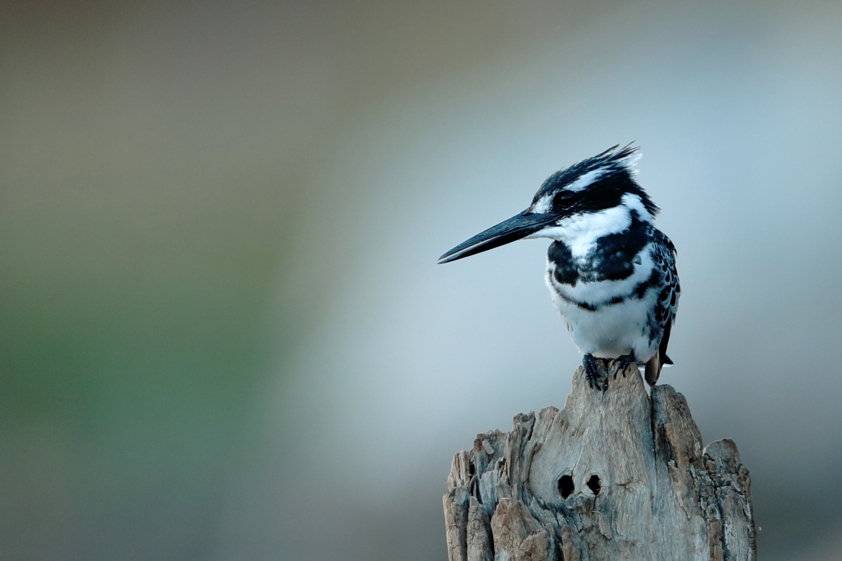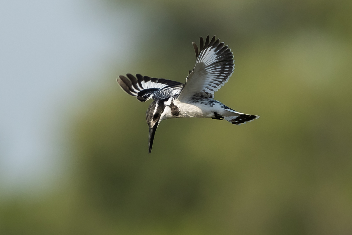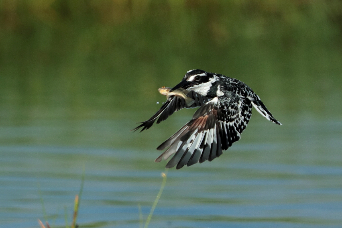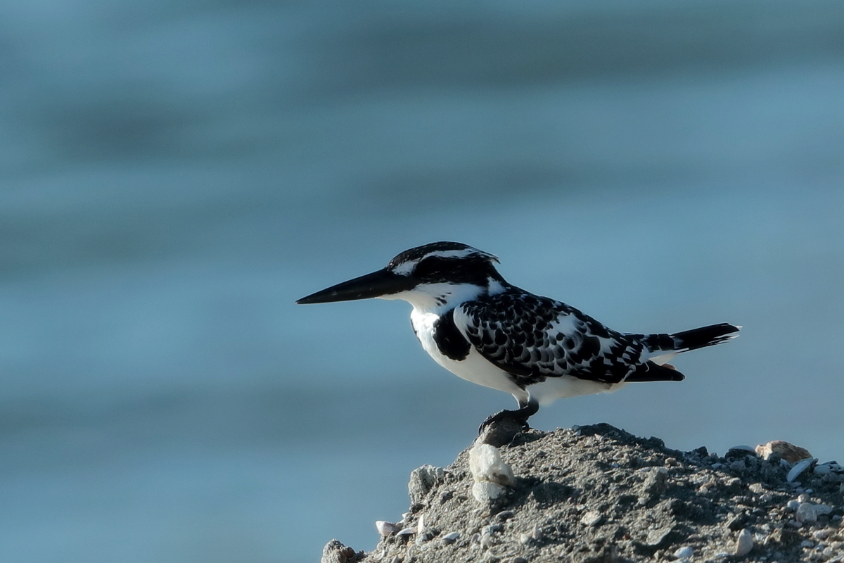Another species of bird belonging to Polish fauna, and "gained" during my stay in South Africa. The first encounter with a pied kingfisher was while at sunrise we were waiting for turacos. Two pairs of pied kingfishers in the morning preyed very efficiently. Unfortunately there was a wide space between us and even the 2X converter could not do. But the first documentary photographs were taken and to my list of birds belonging to fauna of Poland another species was added. On the last day of our stay in South Africa we were lucky to take some pictures from a much shorter distance. A pair of pied kingfishers preyed in vast floodplain areas. A concrete isthmus was their favorite place and the best shots were taken there.