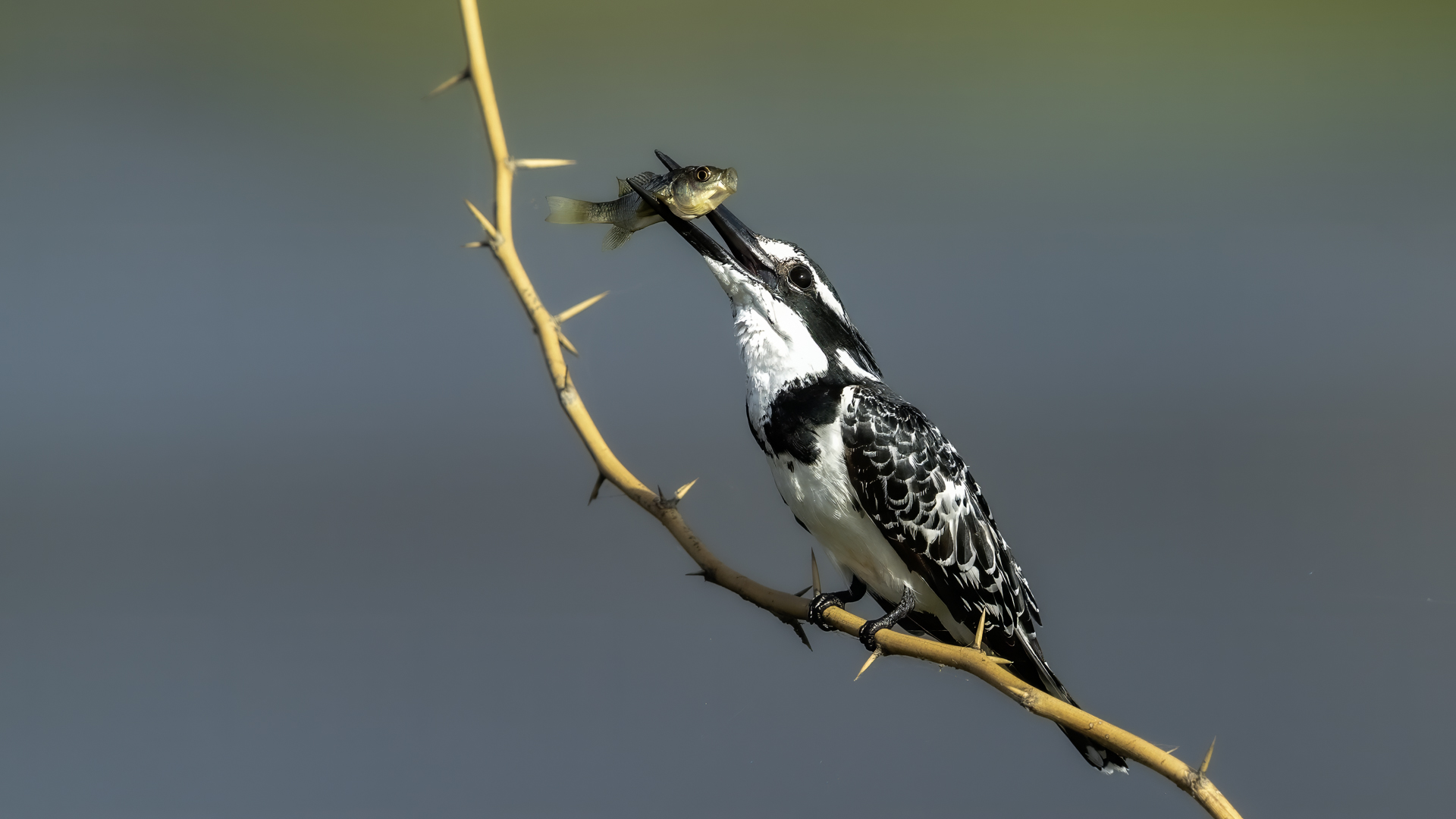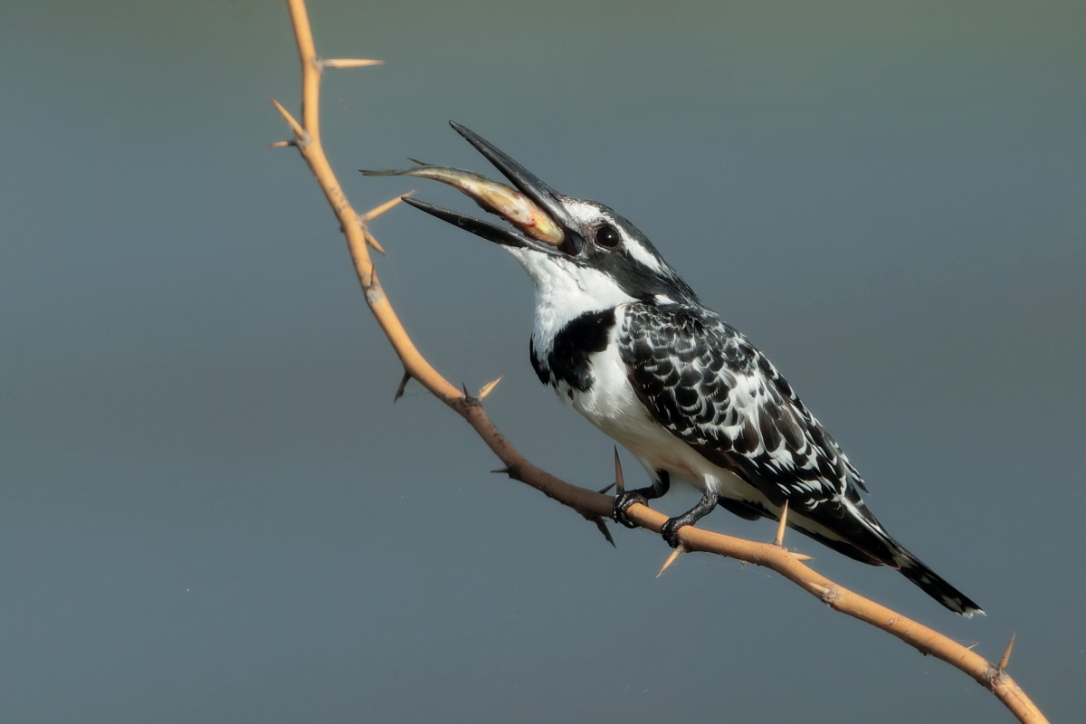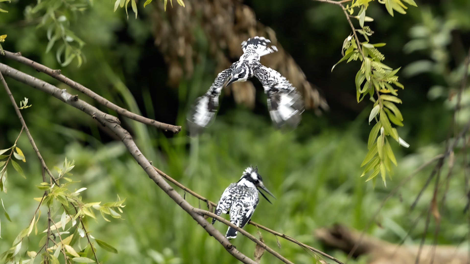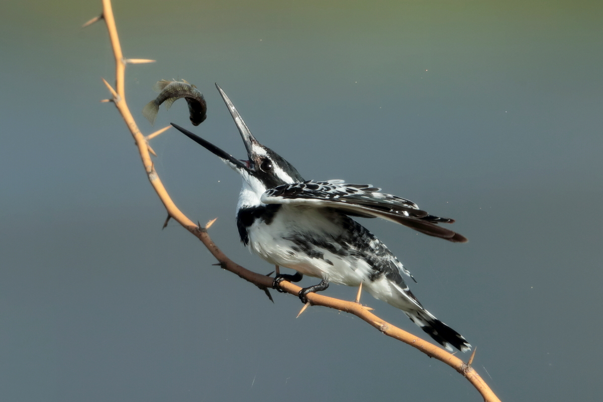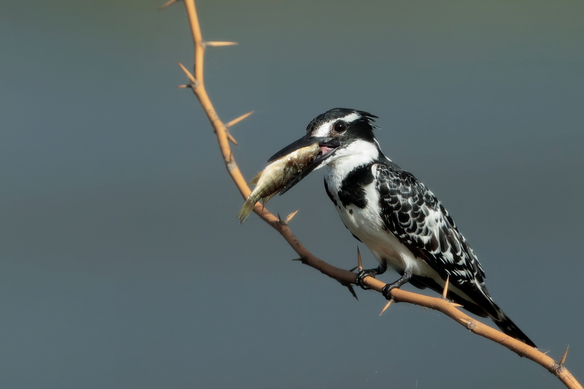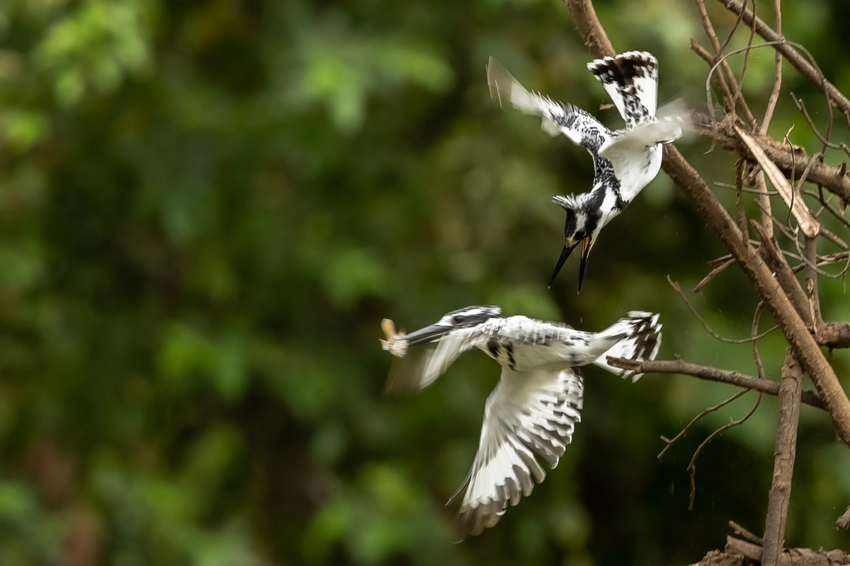 Another species of bird belonging to Polish fauna, and "gained" during my stay in South Africa. The first encounter with a pied kingfisher was while at sunrise we were waiting for turacos. Two pairs of pied kingfishers in the morning preyed very efficiently. Unfortunately there was a wide space between us and even the 2X converter could not do. But the first documentary photographs were taken and to my list of birds belonging to fauna of Poland another species was added. On the last day of our stay in South Africa we were lucky to take some pictures from a much shorter distance. A pair of pied kingfishers preyed in vast floodplain areas. A concrete isthmus was their favorite place and the best shots were taken there.