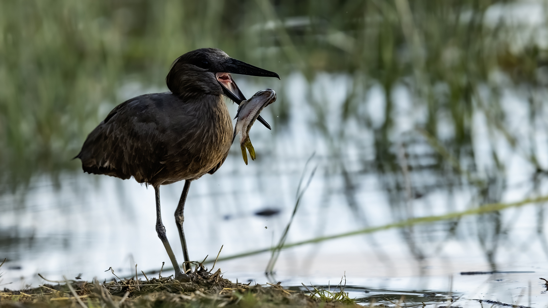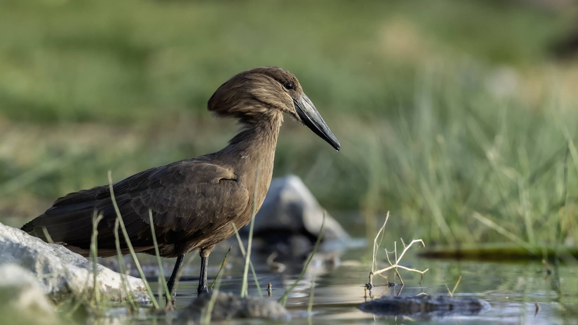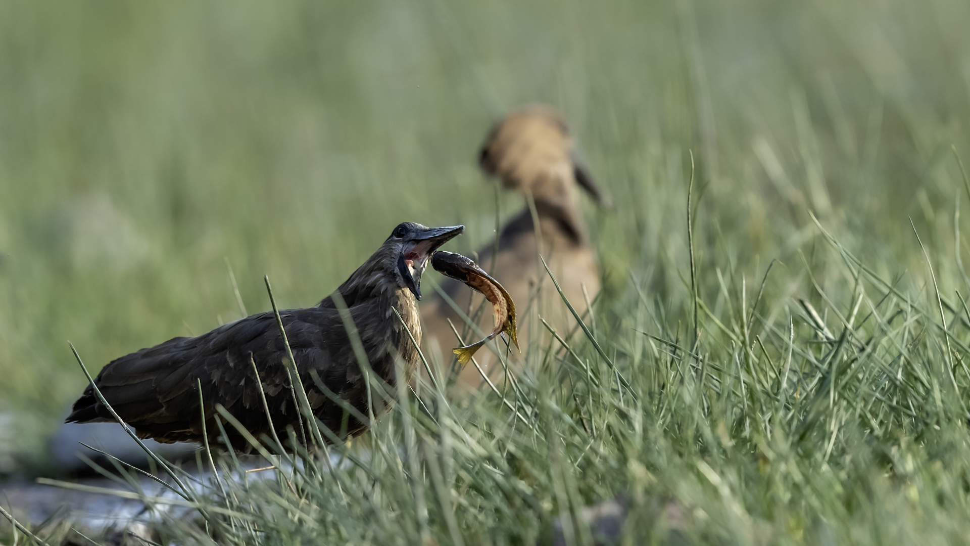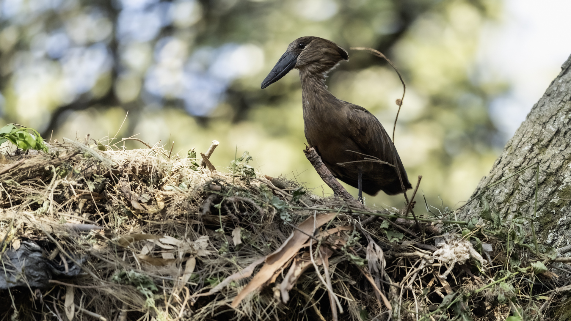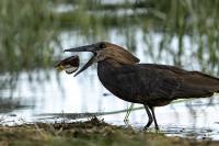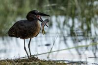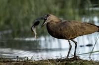 I met Hamerkop twice, once in RPA and once in Tanzania. Galleries of this bird were only symbolic. In Ethiopia they appeared quite numerous. They accepted a human and kept a distance of few meters only. Marabou and Hamerkop could be seen from a close distance in the places where fishermen were. When there are birds we need only a good light and a little bit of patience to take a good picture of this incredible bird. Maybe Hamerkop doesn’t stand out through its colours, but it’s nest does. Despite of being a tiny bird (the weight is less than half kg), it builds a huge nest, which diameter can be more than 2 meters. But that’s not the only thing that is impressing. Hamerkop doesn’t lay eggs in the top part of the nest like other birds. The nest contains a side entrance. It looks like a small tunnel to the inside. Male and female hamerkop build a nest together. Their diligence is incredible. They come every minute with a new twig with mule. They can build this incredible construction in a few weeks. Close to their nest there was a nest of Marabou. They’re bigger than Hamerkop, but they’re nest is minimalistic. It seems like a blow of wind could destroy it. Marabou which lays eggs covers the whole nest with its body. That’s the 2 different ways of building nests. This time i met Hamerkop a few times. The light was good enough to take interesting photos. Hamerkop went to new and one of my favourite galleries.