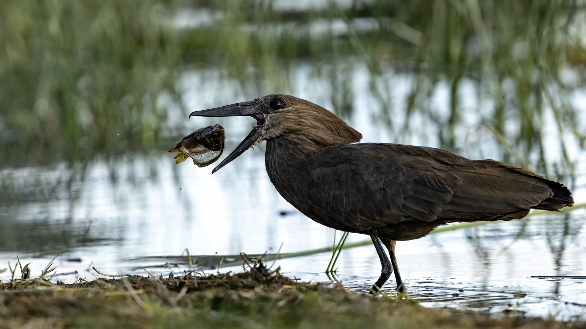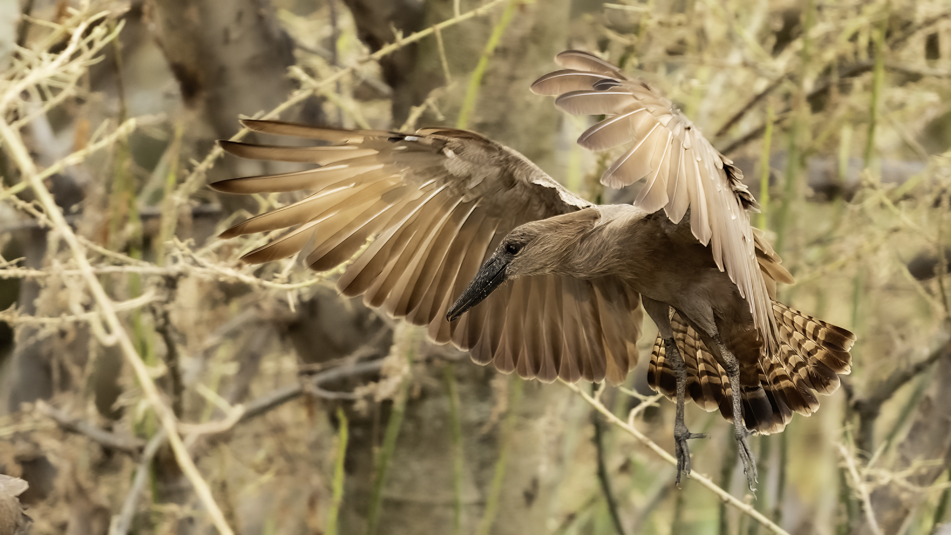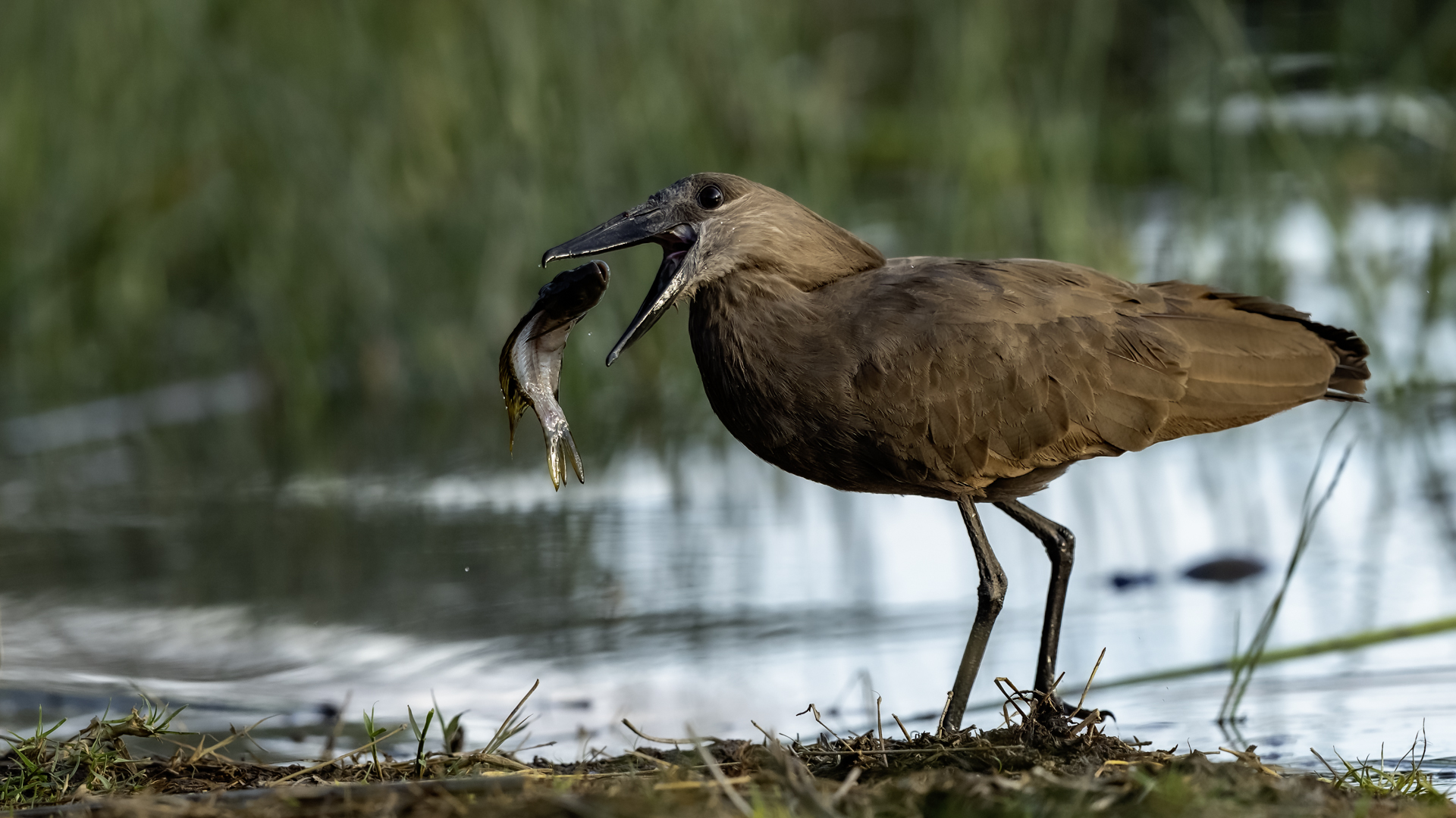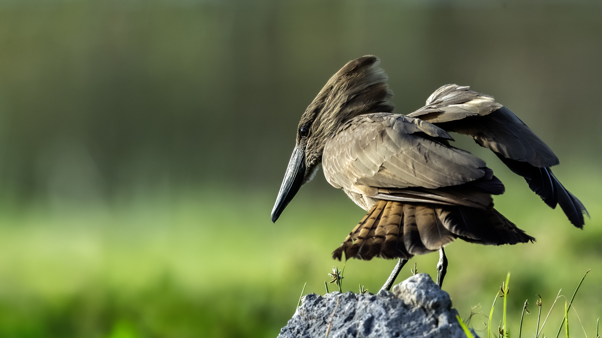 I met Hamerkop twice, once in RPA and once in Tanzania. Galleries of this bird were only symbolic. In Ethiopia they appeared quite numerous. They accepted a human and kept a distance of few meters only. Marabou and Hamerkop could be seen from a close distance in the places where fishermen were. When there are birds we need only a good light and a little bit of patience to take a good picture of this incredible bird. Maybe Hamerkop doesn’t stand out through its colours, but it’s nest does. Despite of being a tiny bird (the weight is less than half kg), it builds a huge nest, which diameter can be more than 2 meters. But that’s not the only thing that is impressing. Hamerkop doesn’t lay eggs in the top part of the nest like other birds. The nest contains a side entrance. It looks like a small tunnel to the inside. Male and female hamerkop build a nest together. Their diligence is incredible. They come every minute with a new twig with mule. They can build this incredible construction in a few weeks. Close to their nest there was a nest of Marabou. They’re bigger than Hamerkop, but they’re nest is minimalistic. It seems like a blow of wind could destroy it. Marabou which lays eggs covers the whole nest with its body. That’s the 2 different ways of building nests. This time i met Hamerkop a few times. The light was good enough to take interesting photos. Hamerkop went to new and one of my favourite galleries.
